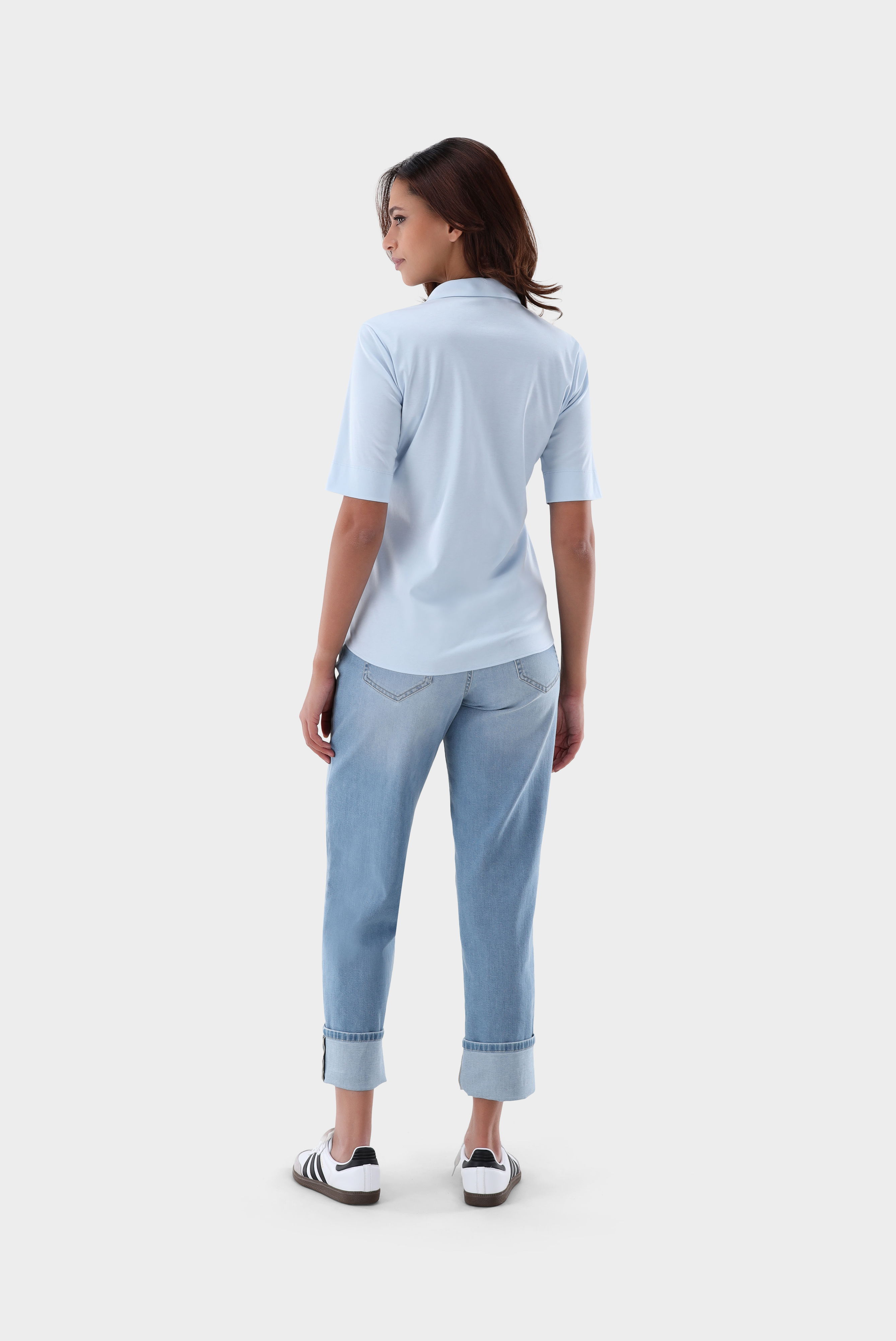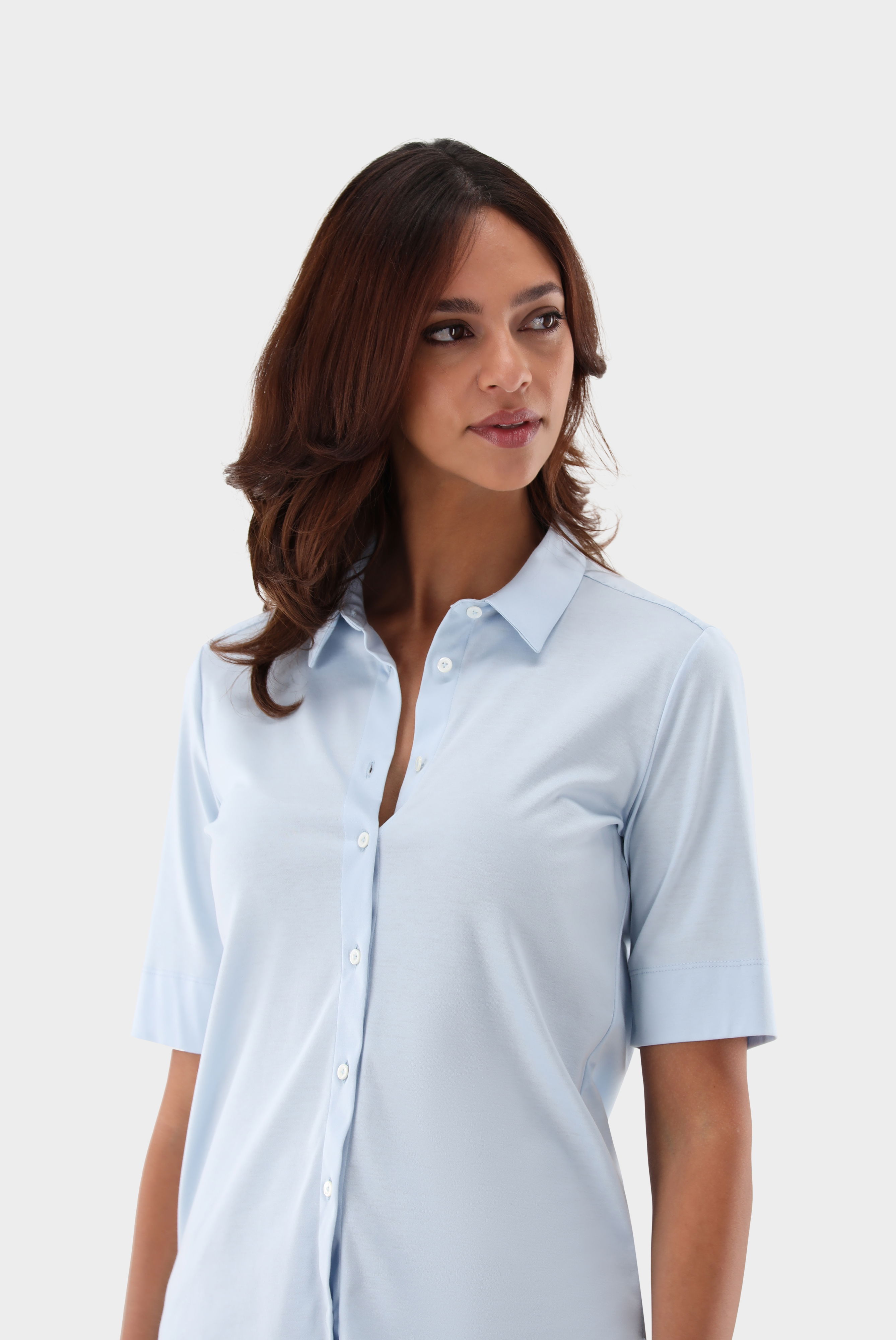Look aus Hemdbluse aus Schweizer Baumwollejersey mit Kurzarm
