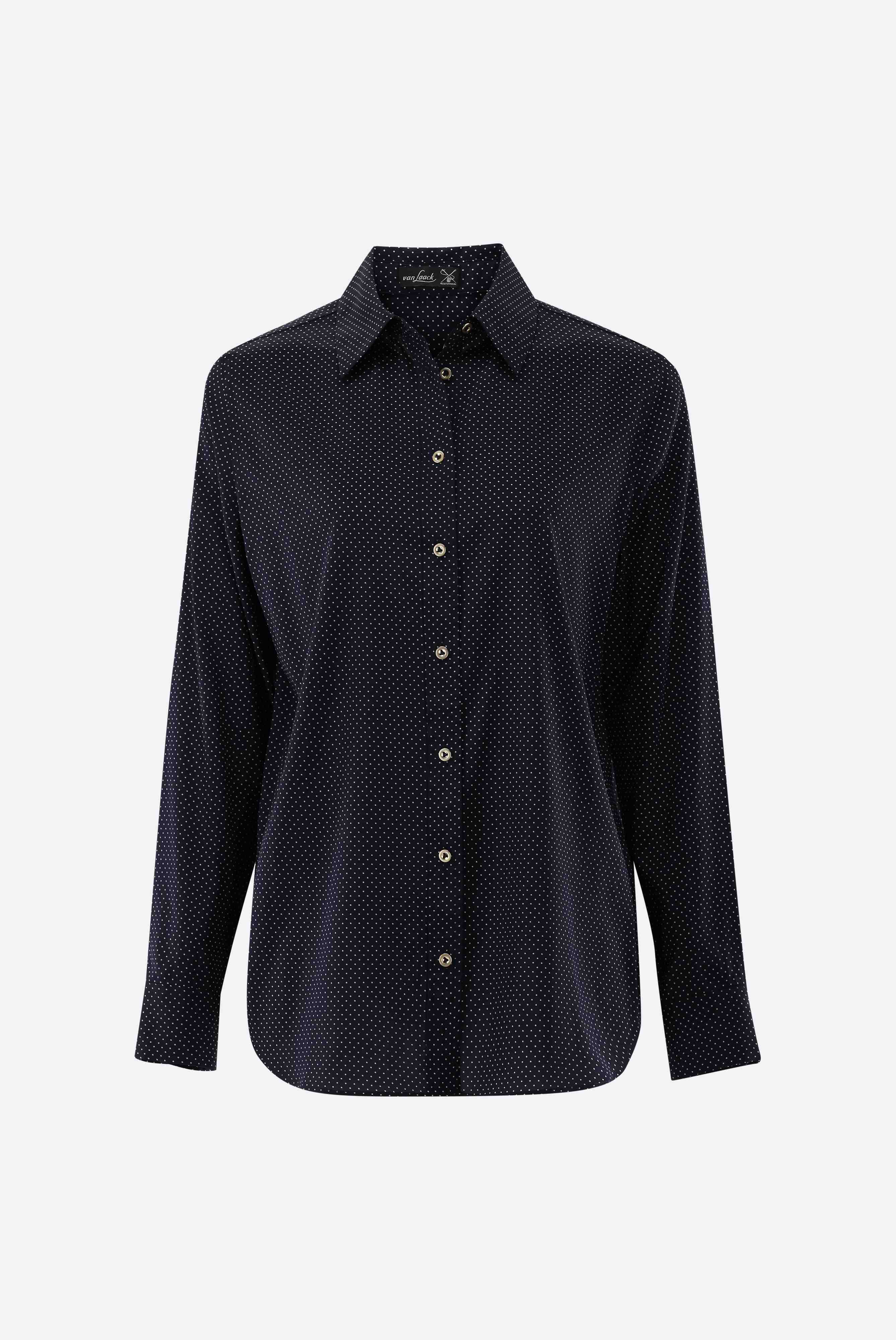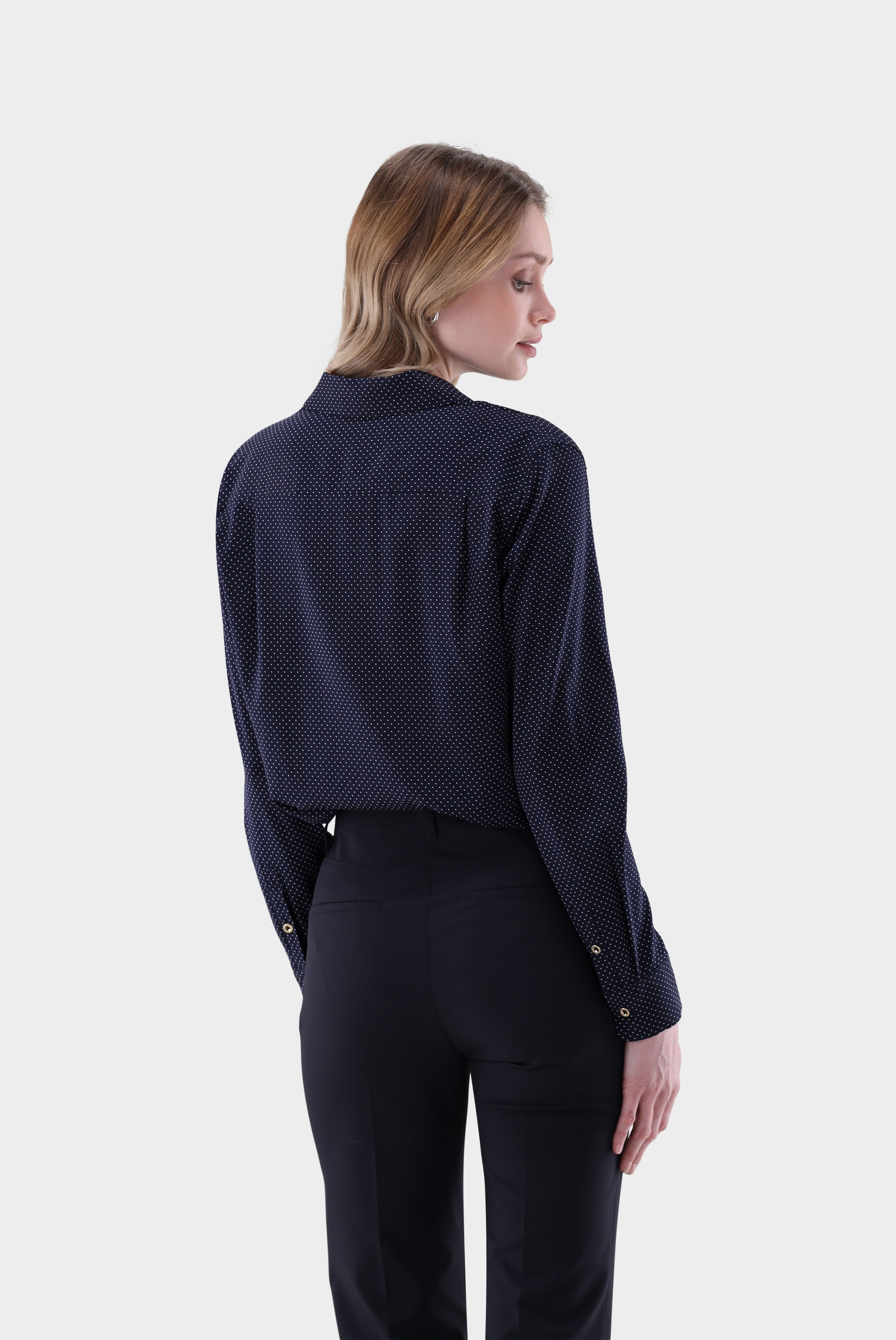 Diese stilvolle Bluse mit lockerer Passform und elegantem Schluppenkragen überzeugt durch ihre edle Materialkombination aus Seidensatin und Seidenorganza. Der Hauptteil sowie Kragen und Bündchen bestehen aus glänzendem Seidensatin, der der Bluse eine luxuriöse Ausstrahlung verleiht. Die langen, voluminösen Ärmel sind aus elastischem Seidenorganza gefertigt. Die feinen Raffungen an Ausschnitt und Bündchen sorgen für eine luftige, feminine Silhouette. Der raffinierte Materialkontrast macht dieses Modell zu einem echten Hingucker für besondere Anlässe oder stilvolle Business-Outfits. Eine hochwertige Seidenbluse für anspruchsvolle Looks mit modischem Anspruch.