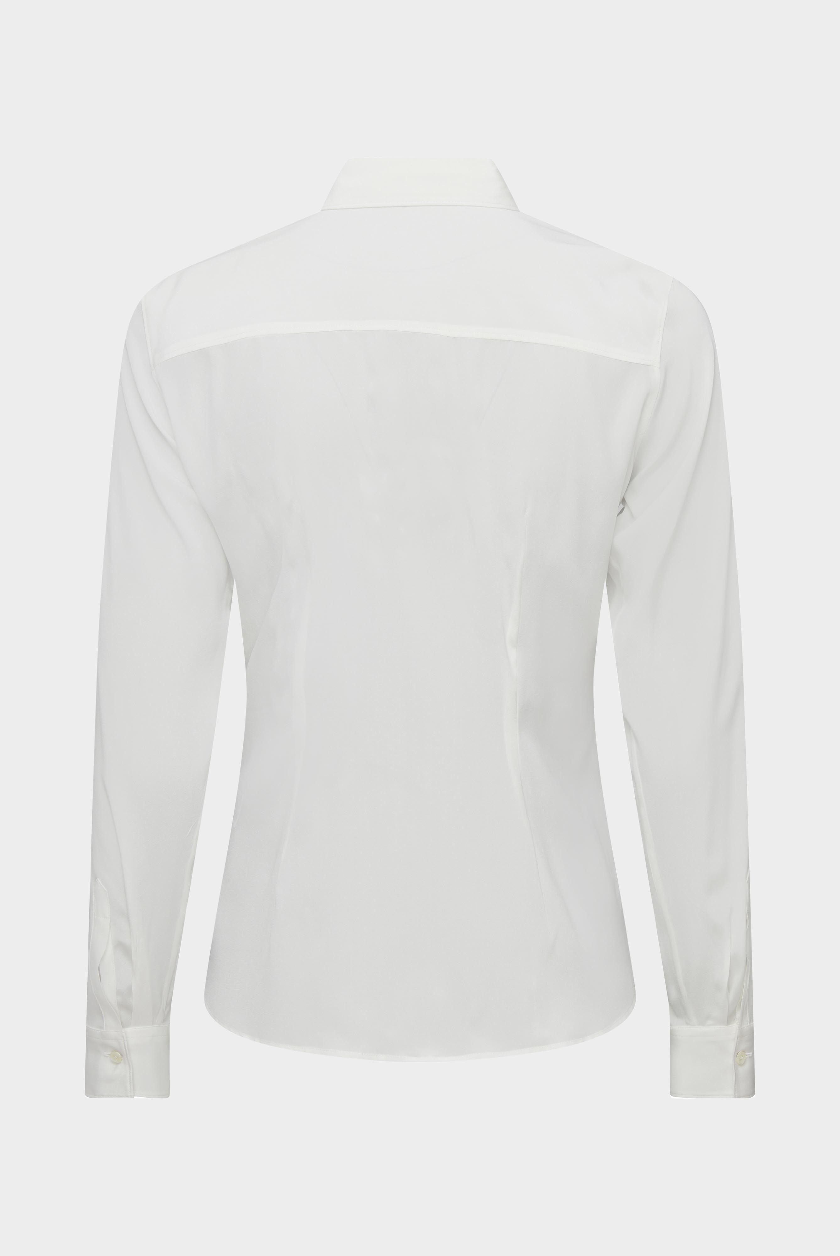 Luxuriöse Hemdbluse aus feiner Seide mit einem Hauch von Elastan für eine perfekte Kombination aus Eleganz und Komfort.