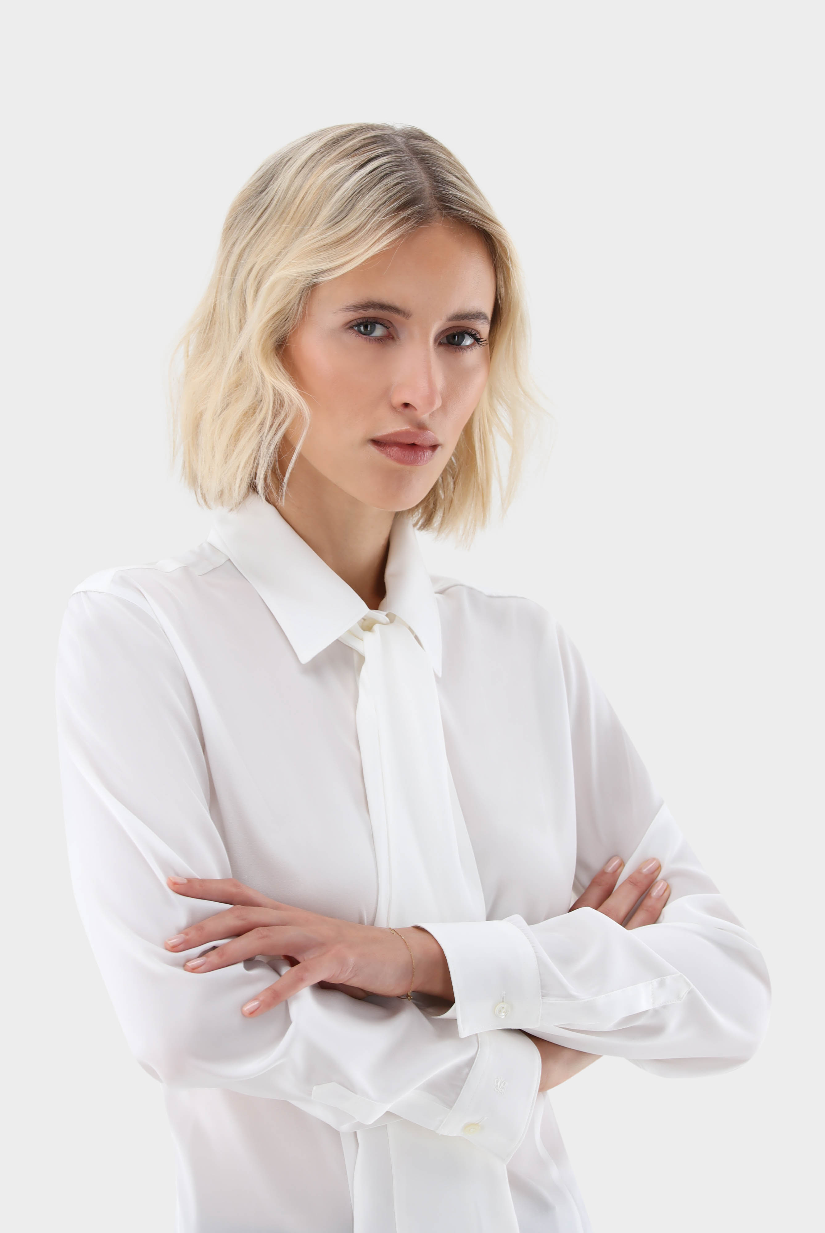 Look aus Hemdbluse aus Seide mit Stretch