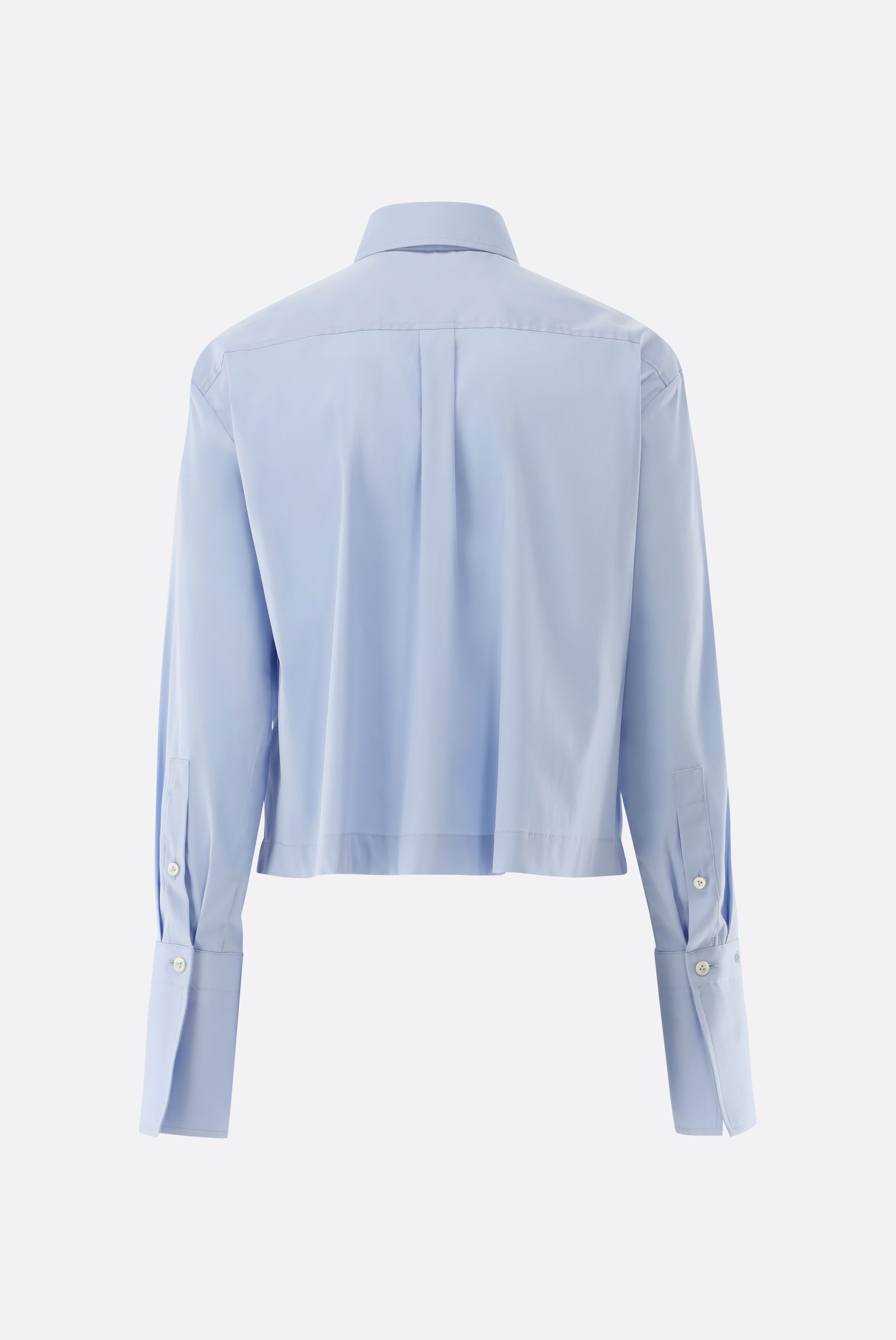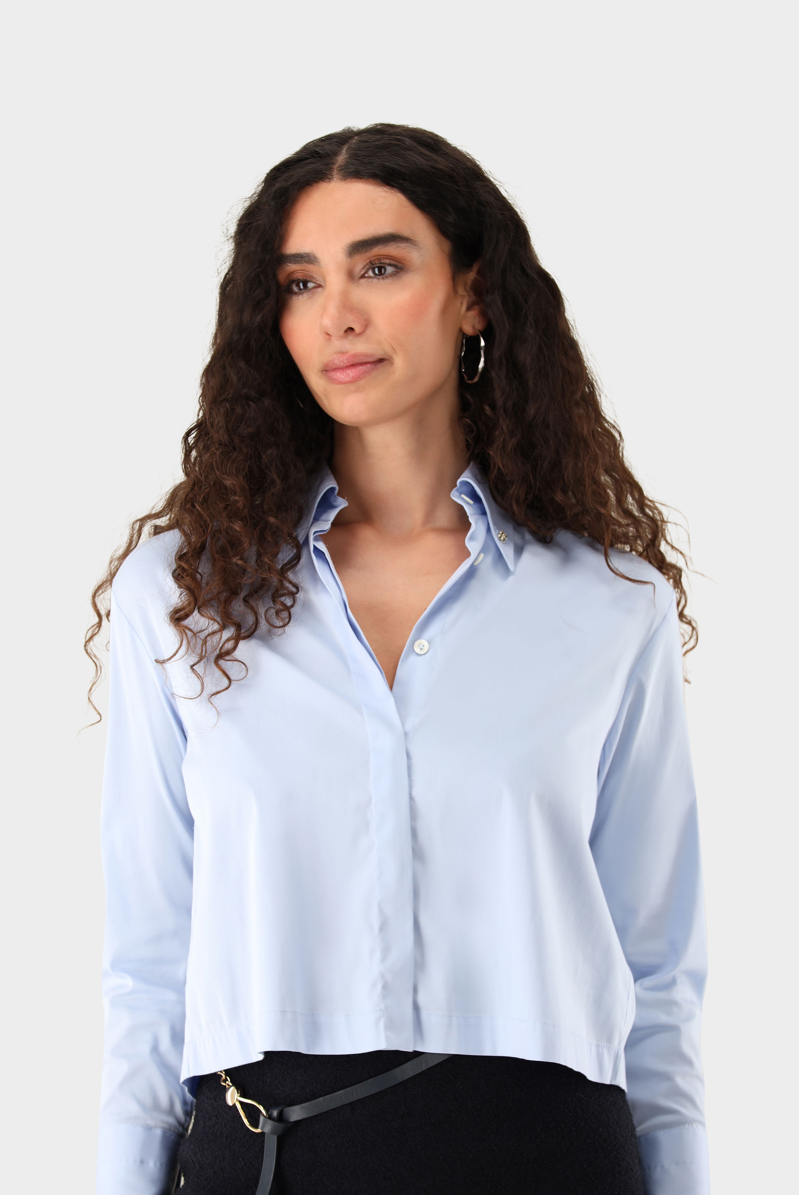 Diese kurz geschnittene Hemdbluse überzeugt durch modernes Design und hochwertige Details. Lange Ärmel mit Ziernähten an den Manschetten unterstreichen die sorgfältige Verarbeitung. Der Button-Down-Kragen mit dekorativen Strassknöpfen setzt einen eleganten Akzent, während die verdeckte Knopfleiste für eine klare Optik sorgt. Eine Rückenpasse mit Kellerfalte bietet zusätzlichen Komfort. Gefertigt aus einem Baumwoll-Stretch-Mix vereint die Bluse angenehme Bewegungsfreiheit mit stilvoller Ausstrahlung.