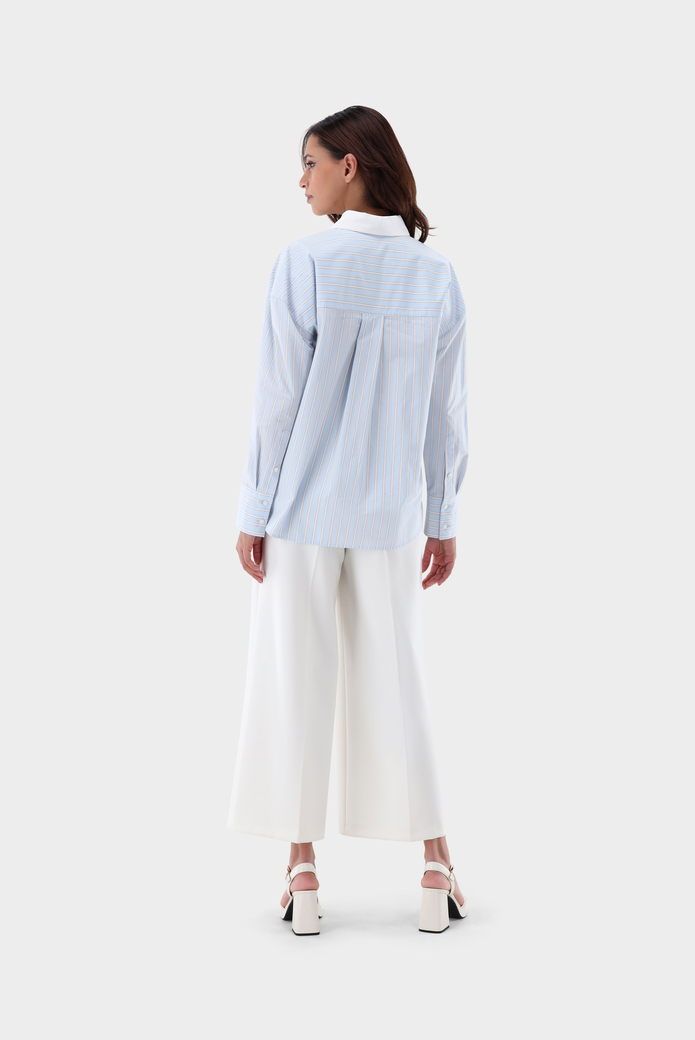 Look aus Hemdbluse gestreift mit Kontrastkragen