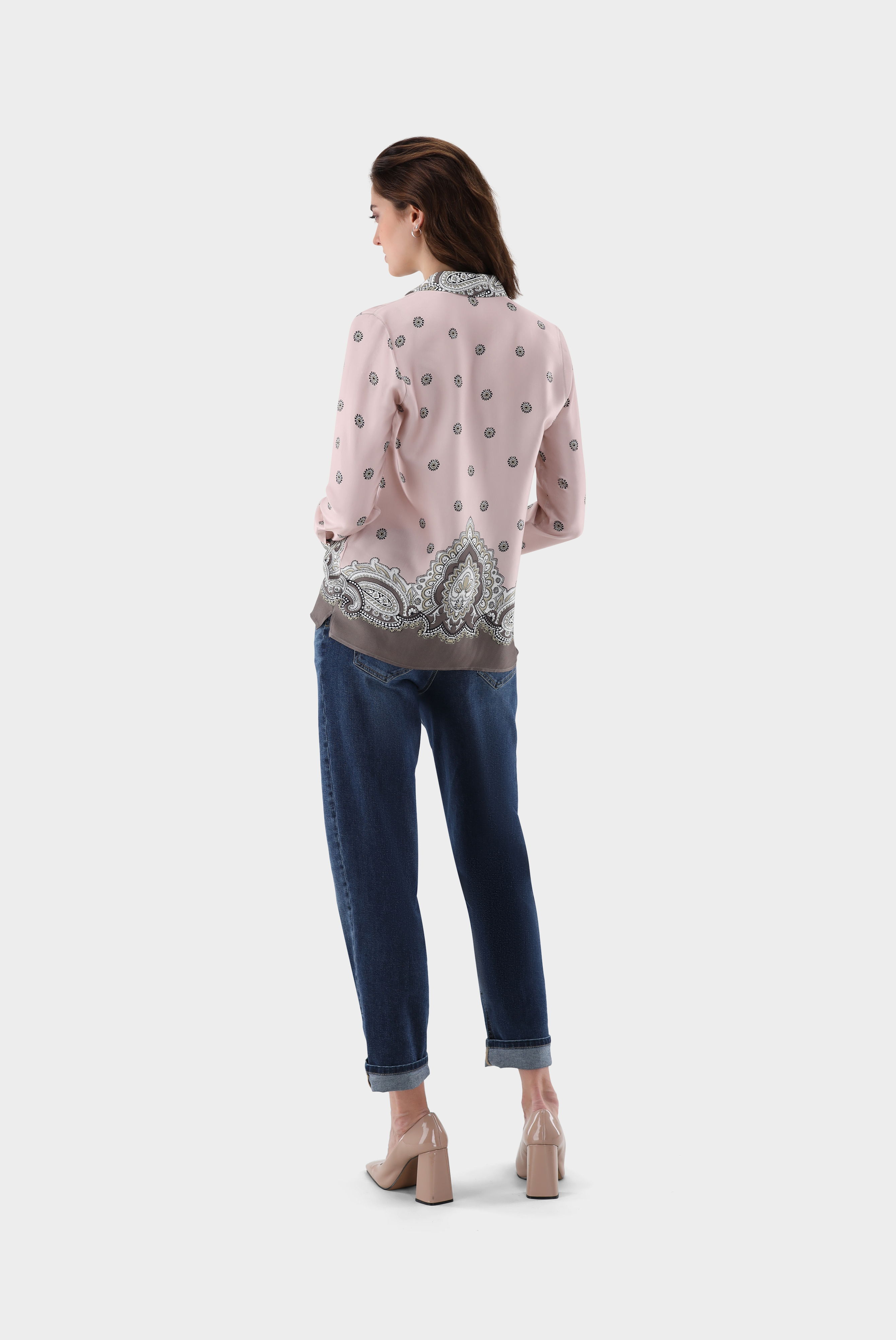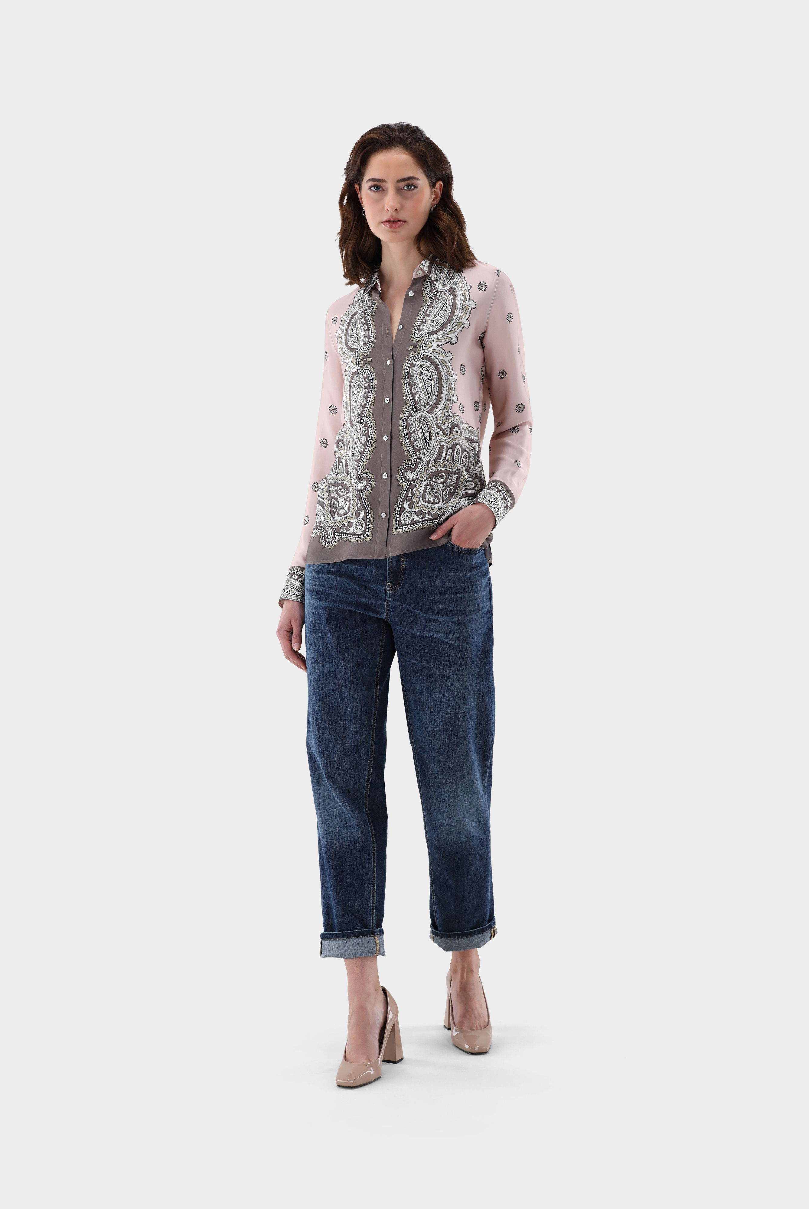 Look aus Hemdbluse locker geschnitten mit Druckmuster