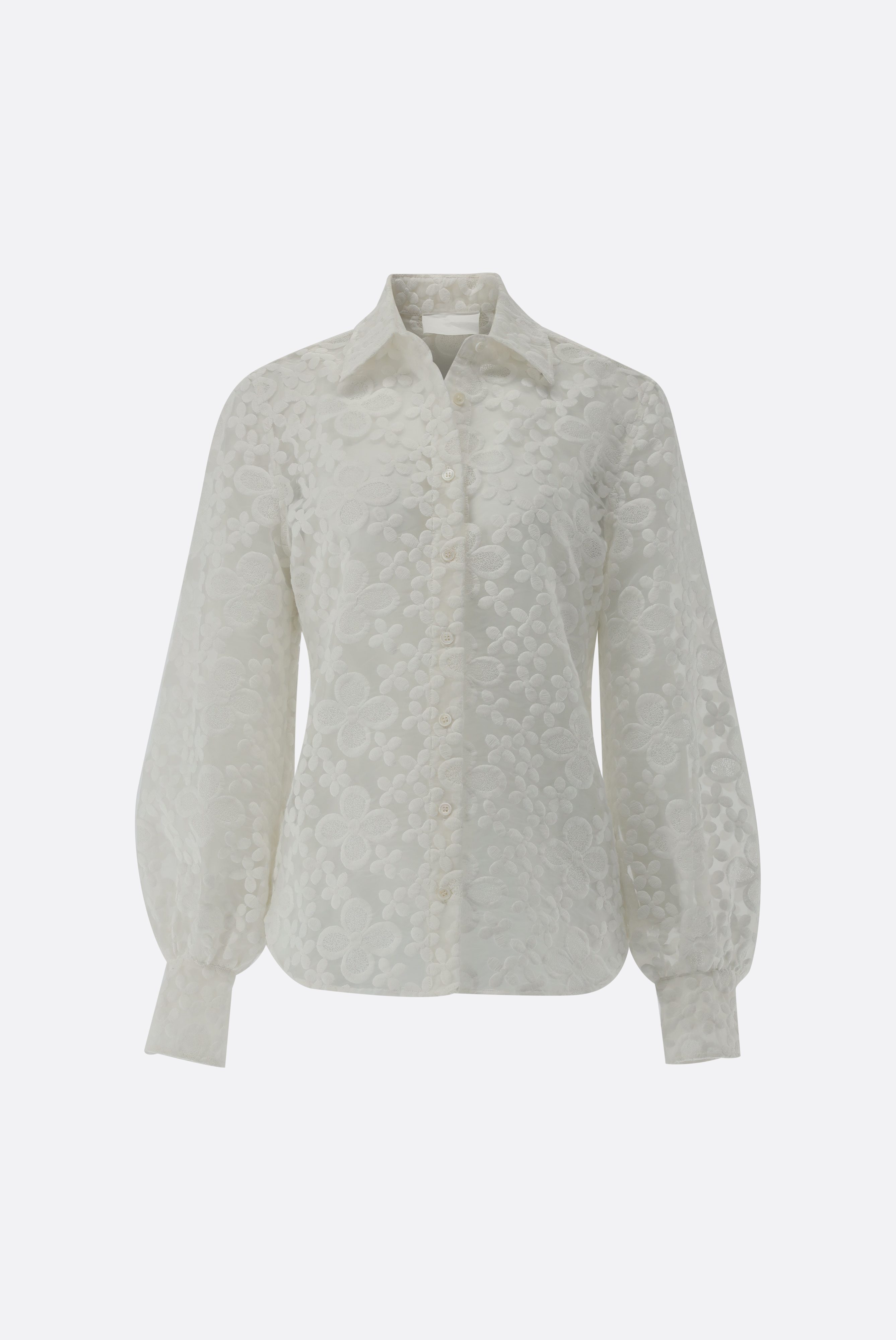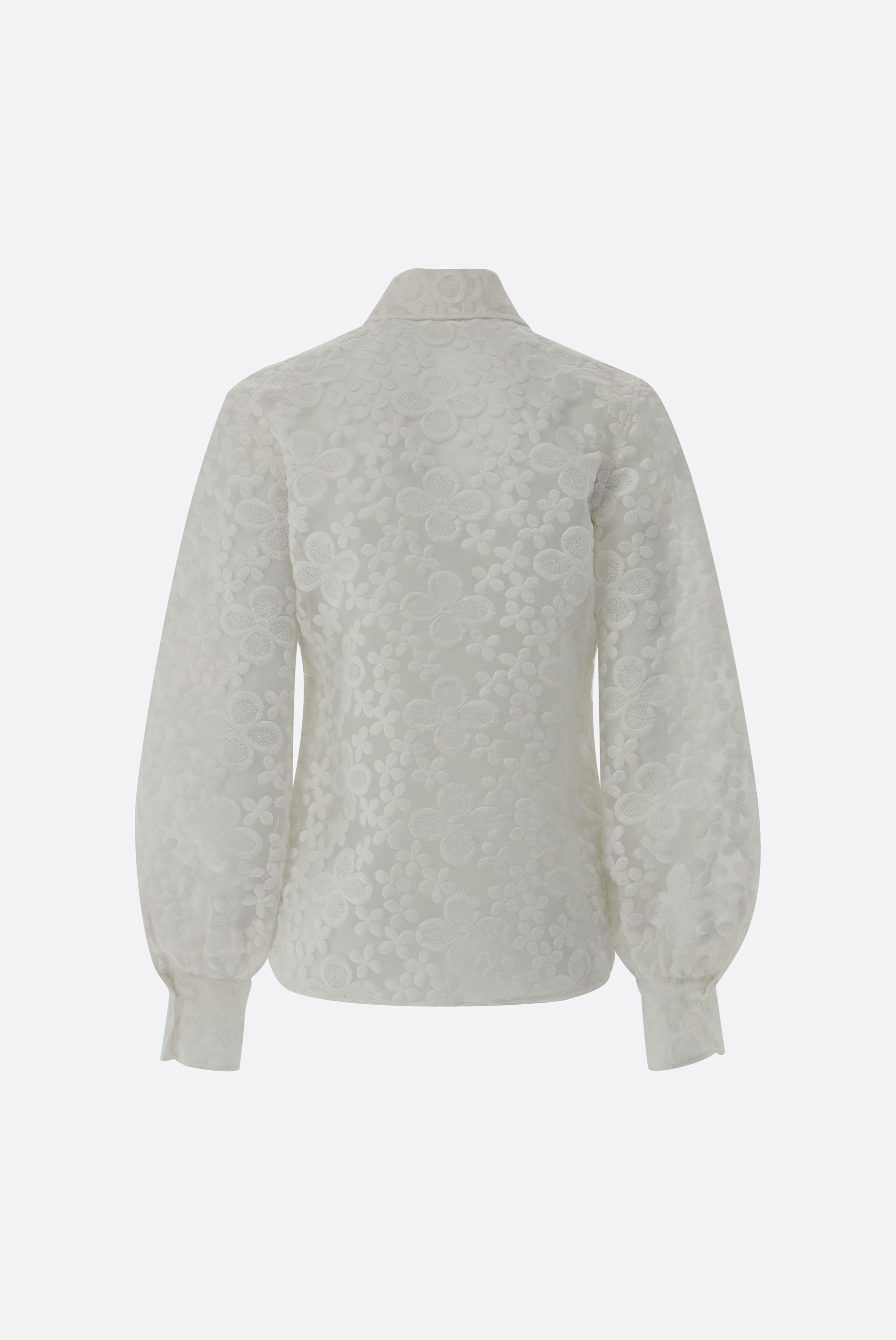 Diese elegante Hemdbluse im taillierten Schnitt aus hochwertigem Baumwoll-Polyester-Mix besticht durch ihre langen Blousonärmel und die feine Blumenstickerei auf transparentem Organza. Der glänzende Stoff verleiht der Bluse eine festliche Ausstrahlung, während die Perlmuttknöpfe und das farblich passende Unterziehtop (Modell Meni - separat erhältlich) für einen stilvollen Look sorgen. Die Bluse eignet sich perfekt für festliche Anlässe oder elegante Business-Looks.
