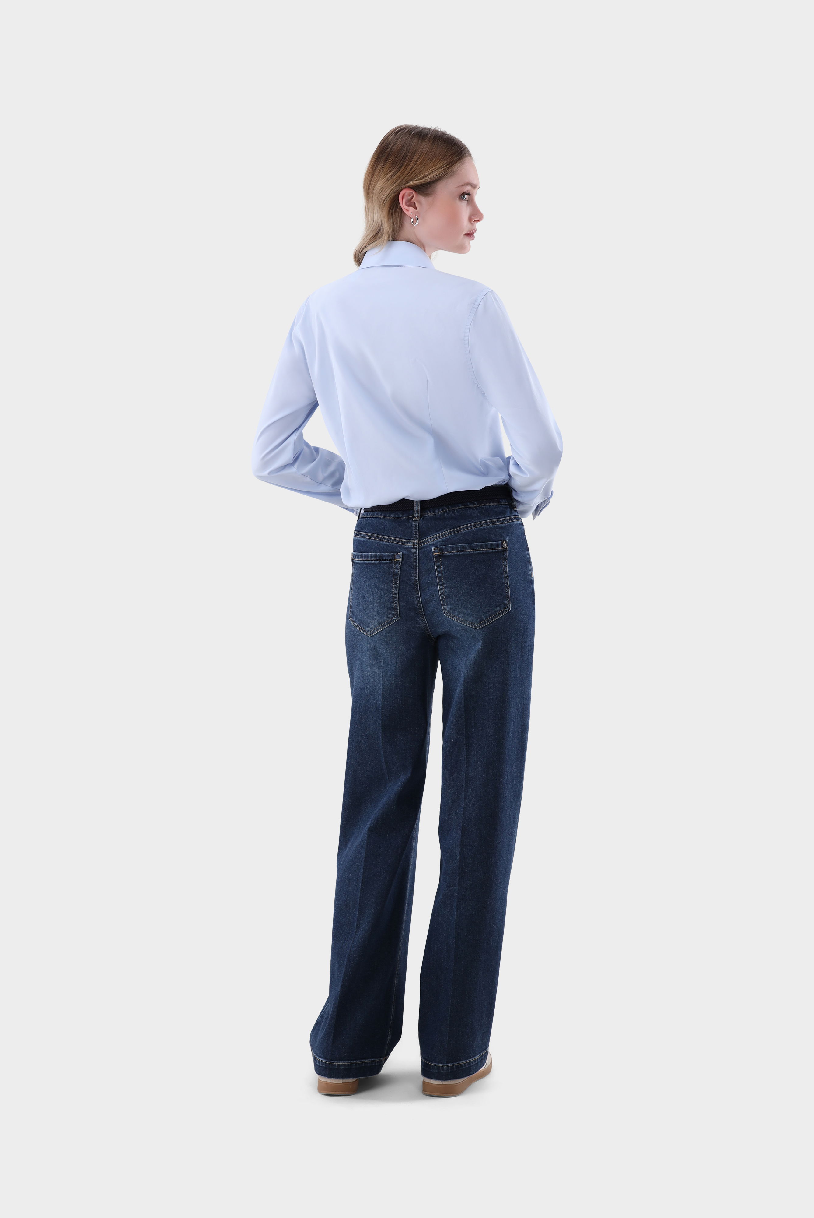 Look aus Hemdbluse mit Doppelmanschette und Kontrasten