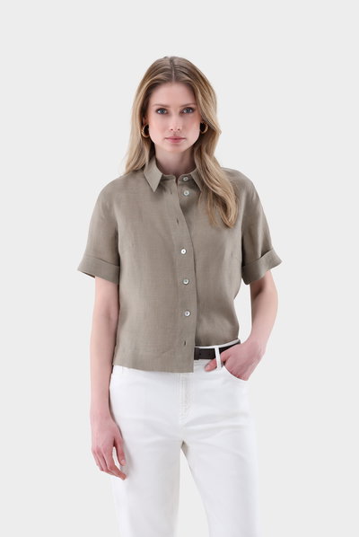 Look aus Hemdbluse mit Kurzarm aus Leinen Boxy Fit