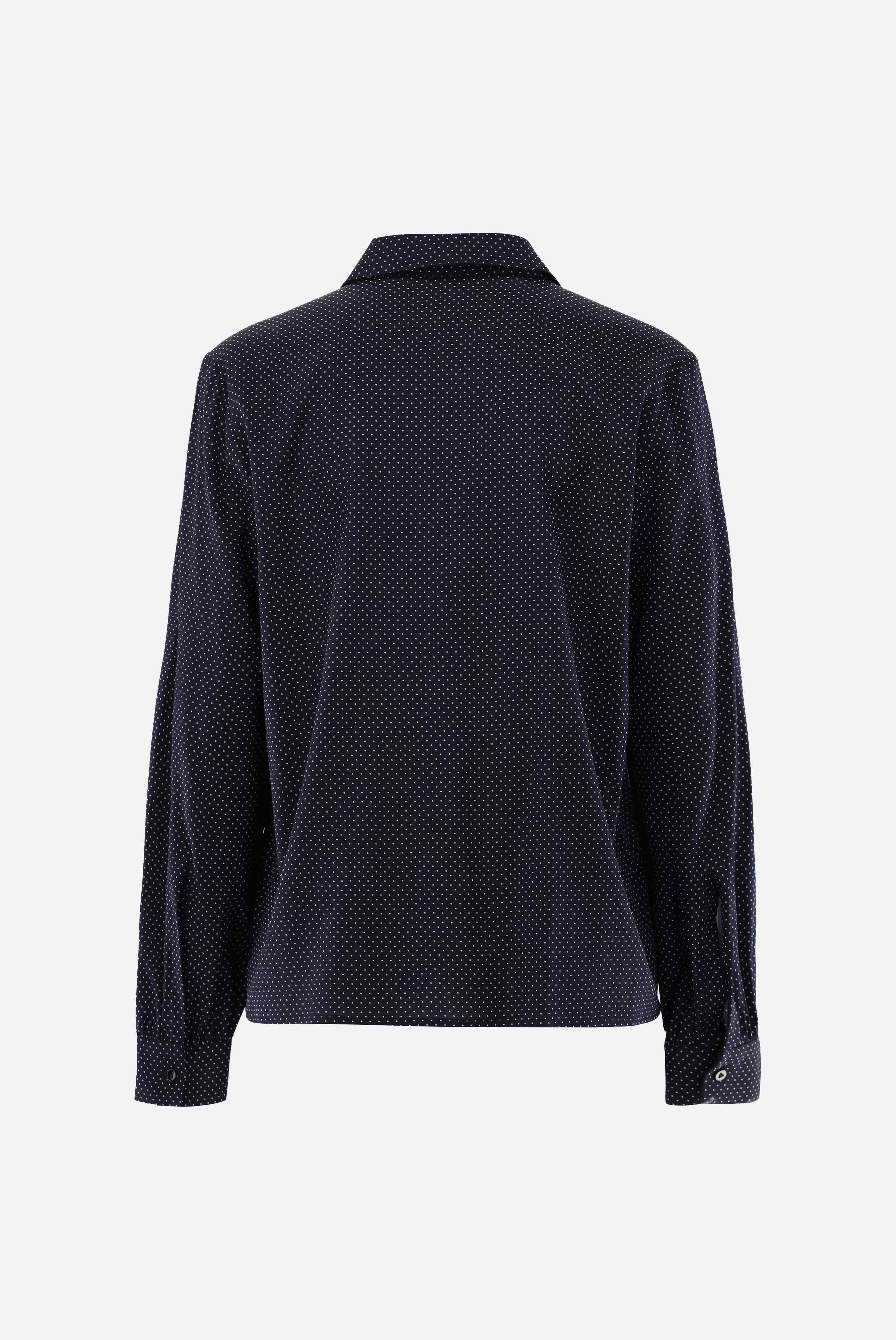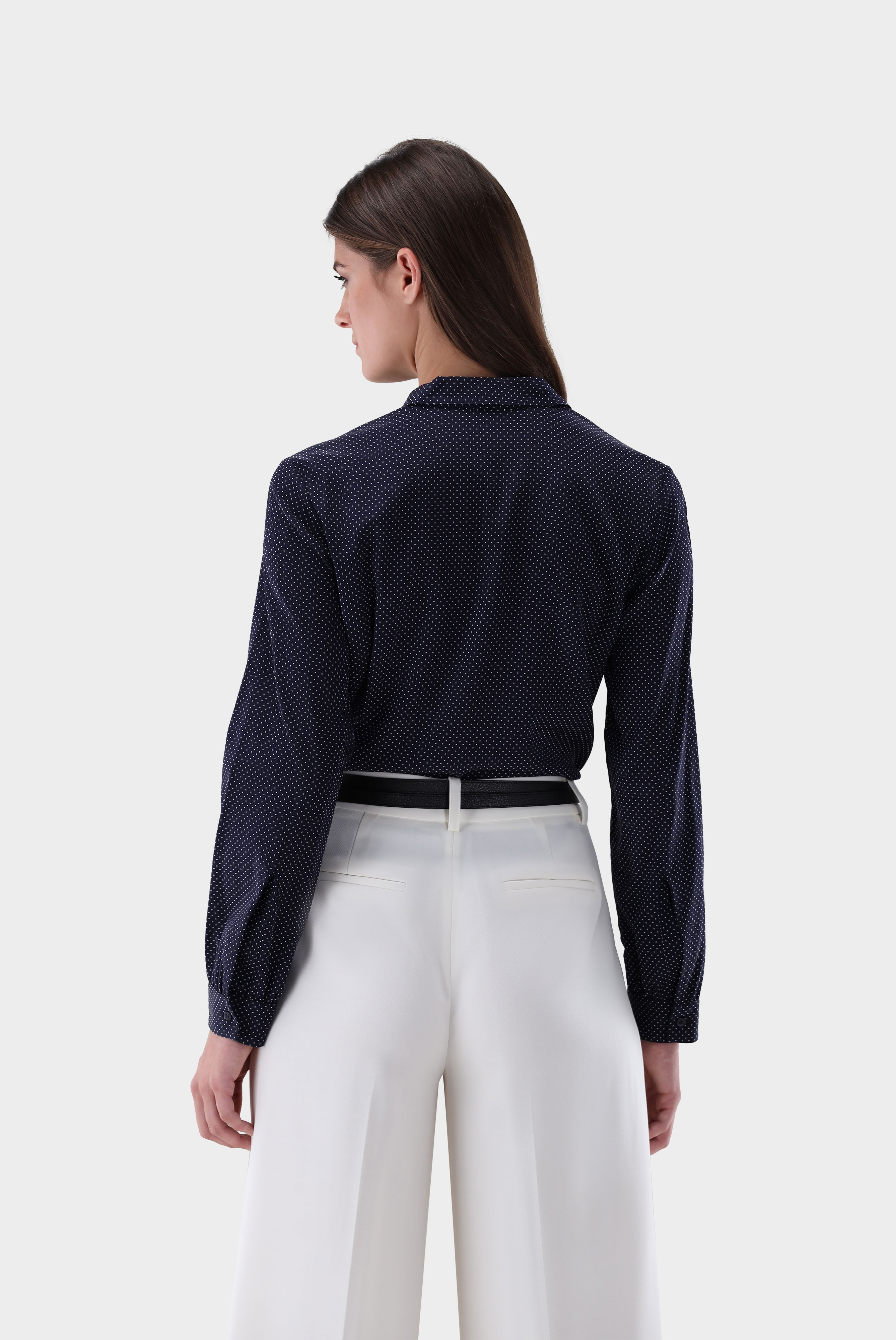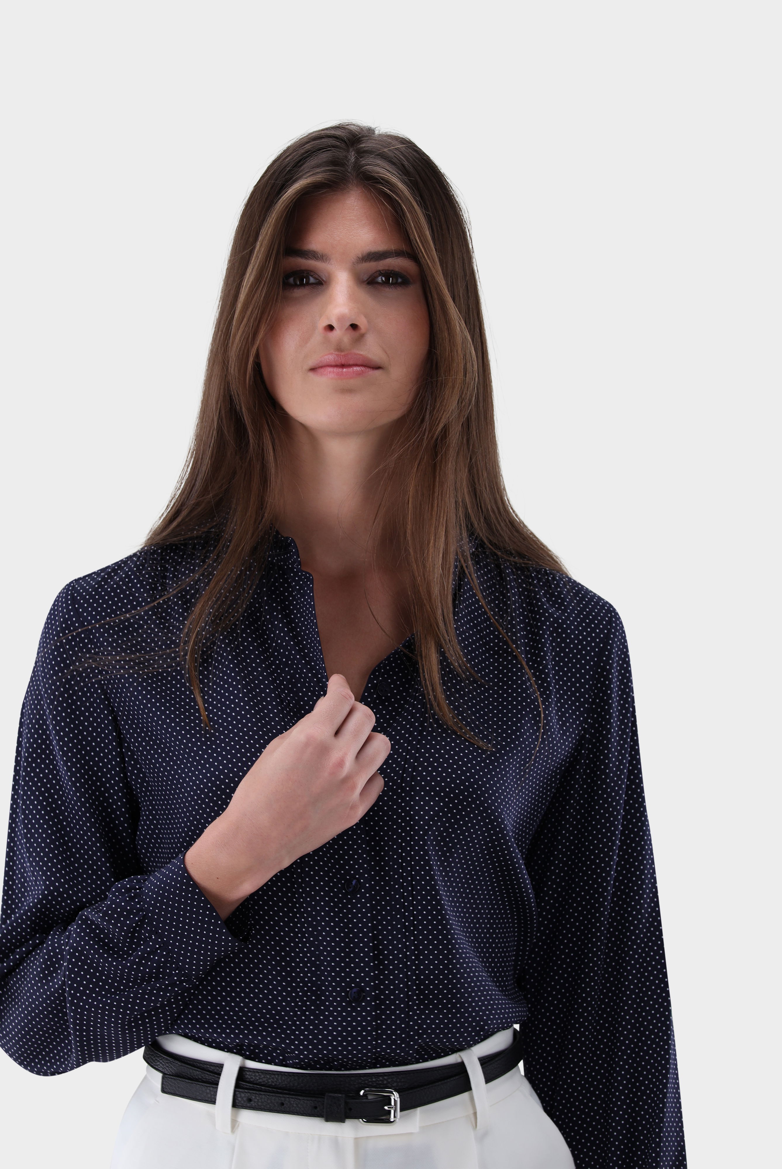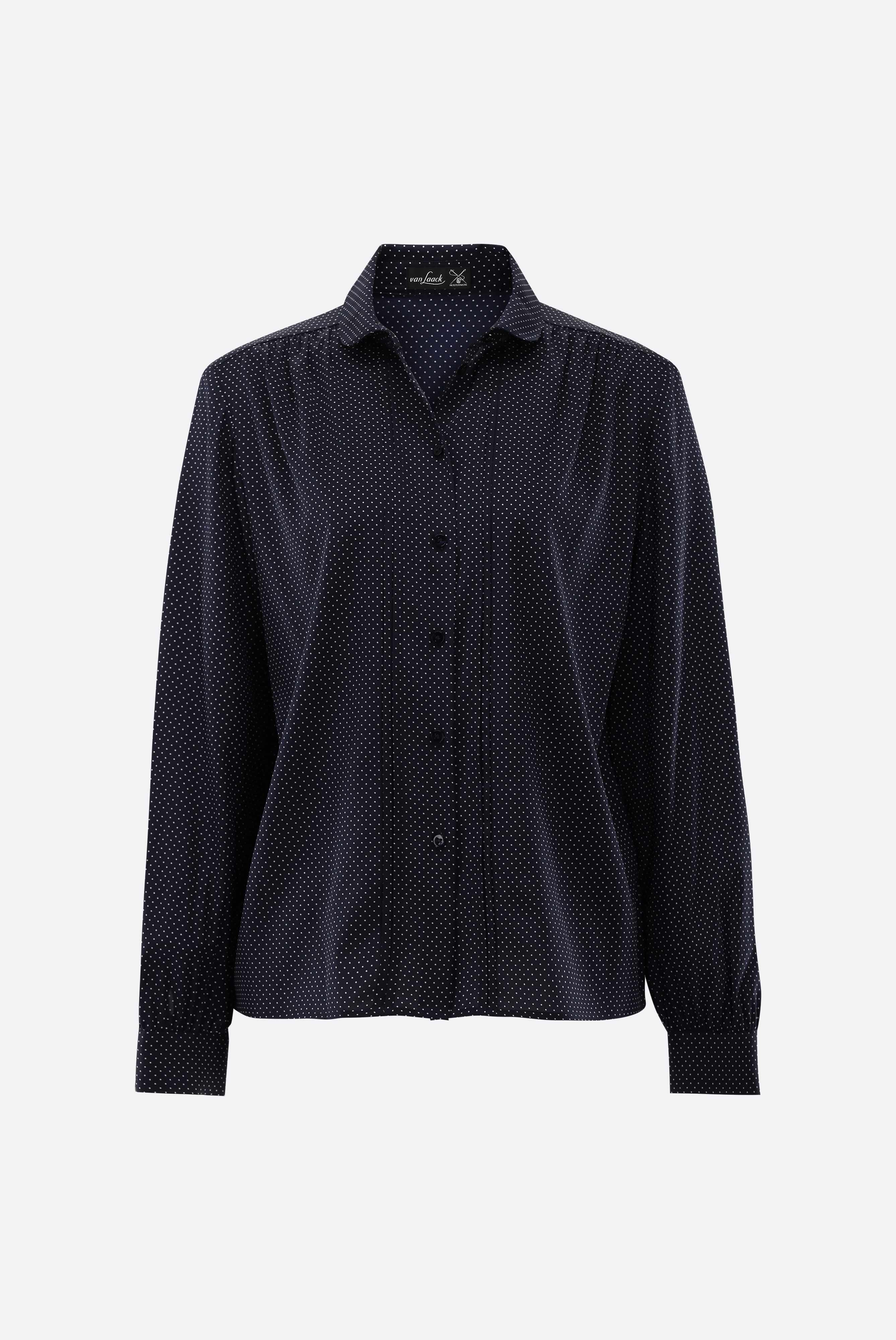 Die locker sitzende Bluse aus luxuriösem Seidencrêpe de Chine mit Stretch bietet eleganten Tragekomfort und eine edle Optik. Lange Ärmel mit Raffungen an Manschetten und Vorderpasse sowie feine, gesteppte Falten verleihen dem Design eine feminine Note. Der charmante Peter-Pan-Kragen rundet den Look ab. Mit ihrem dezenten Punkte-Druck ist die Bluse vielseitig kombinierbar und ideal für stilvolle Business- oder Freizeitoutfits.