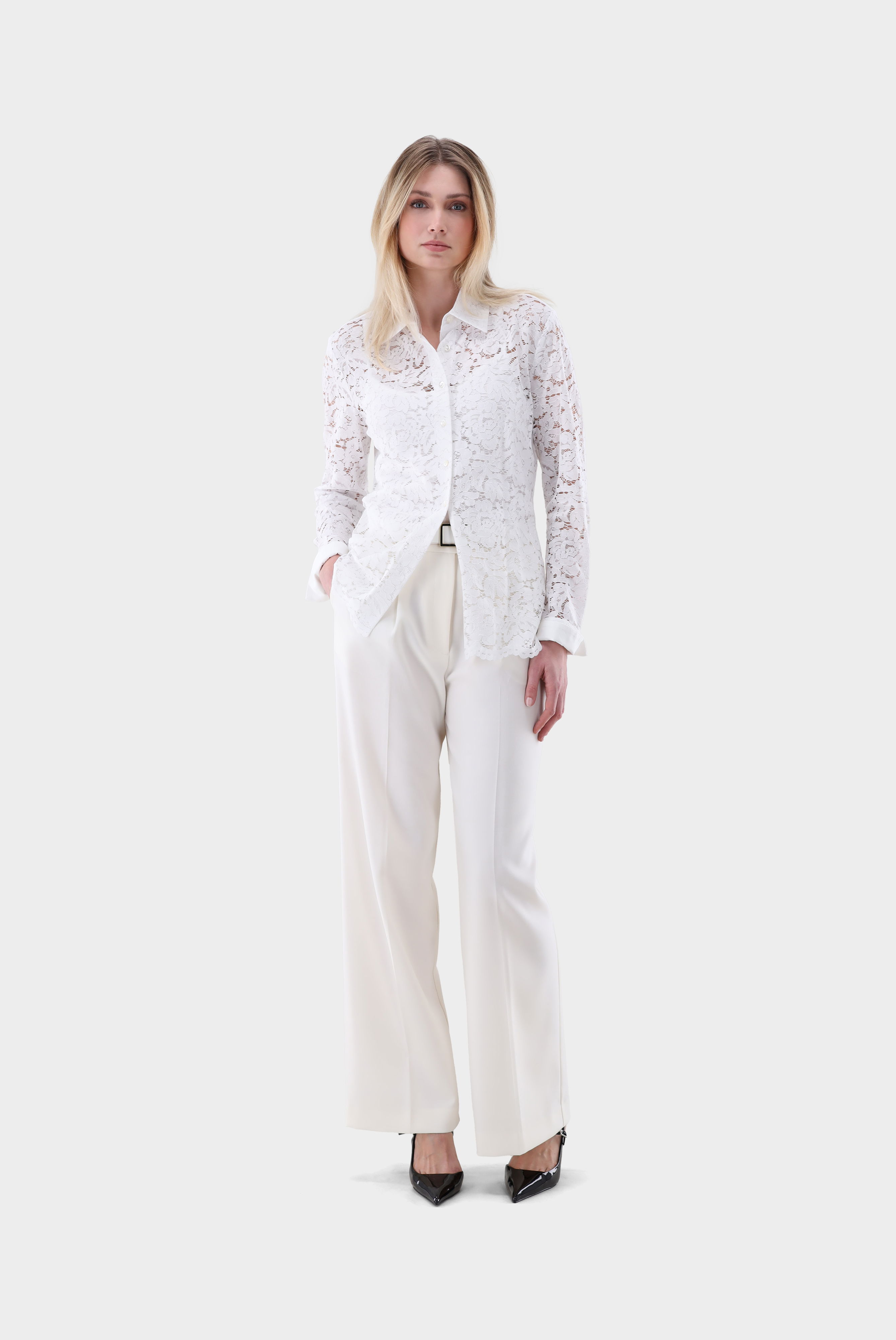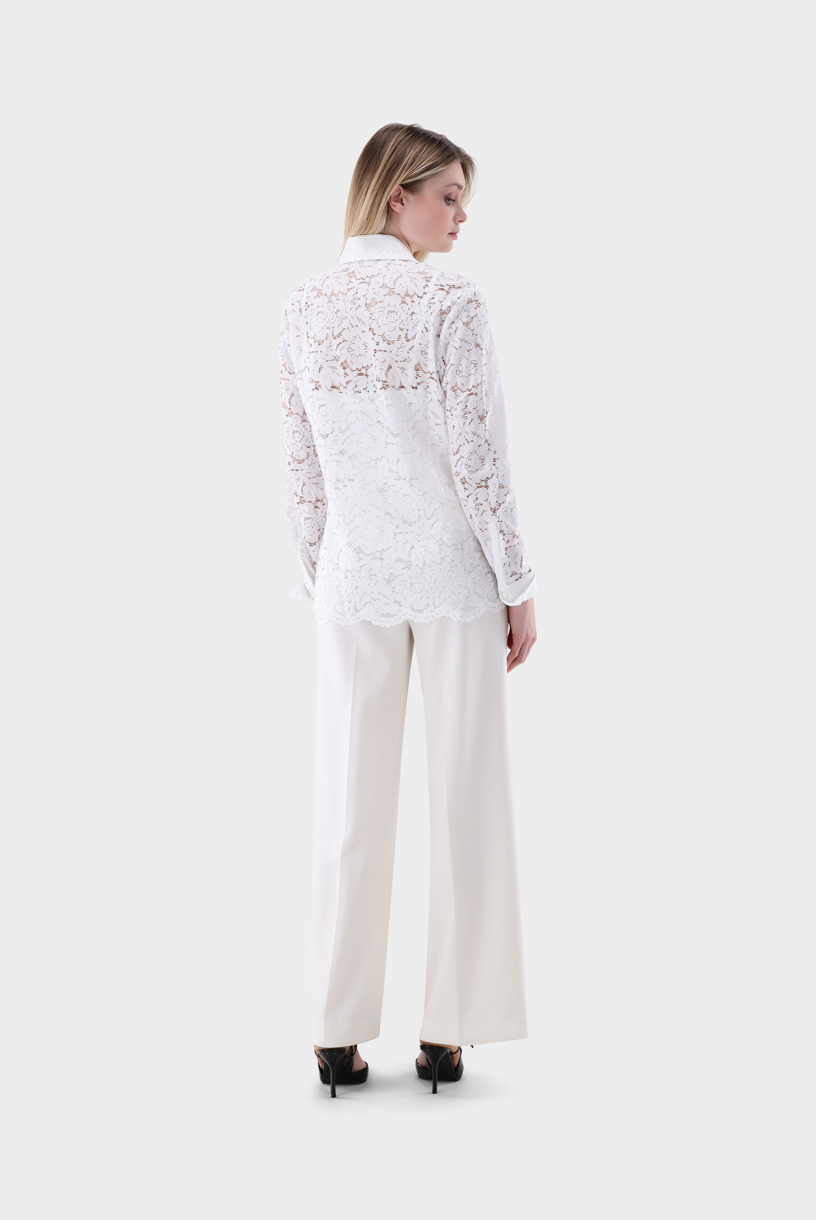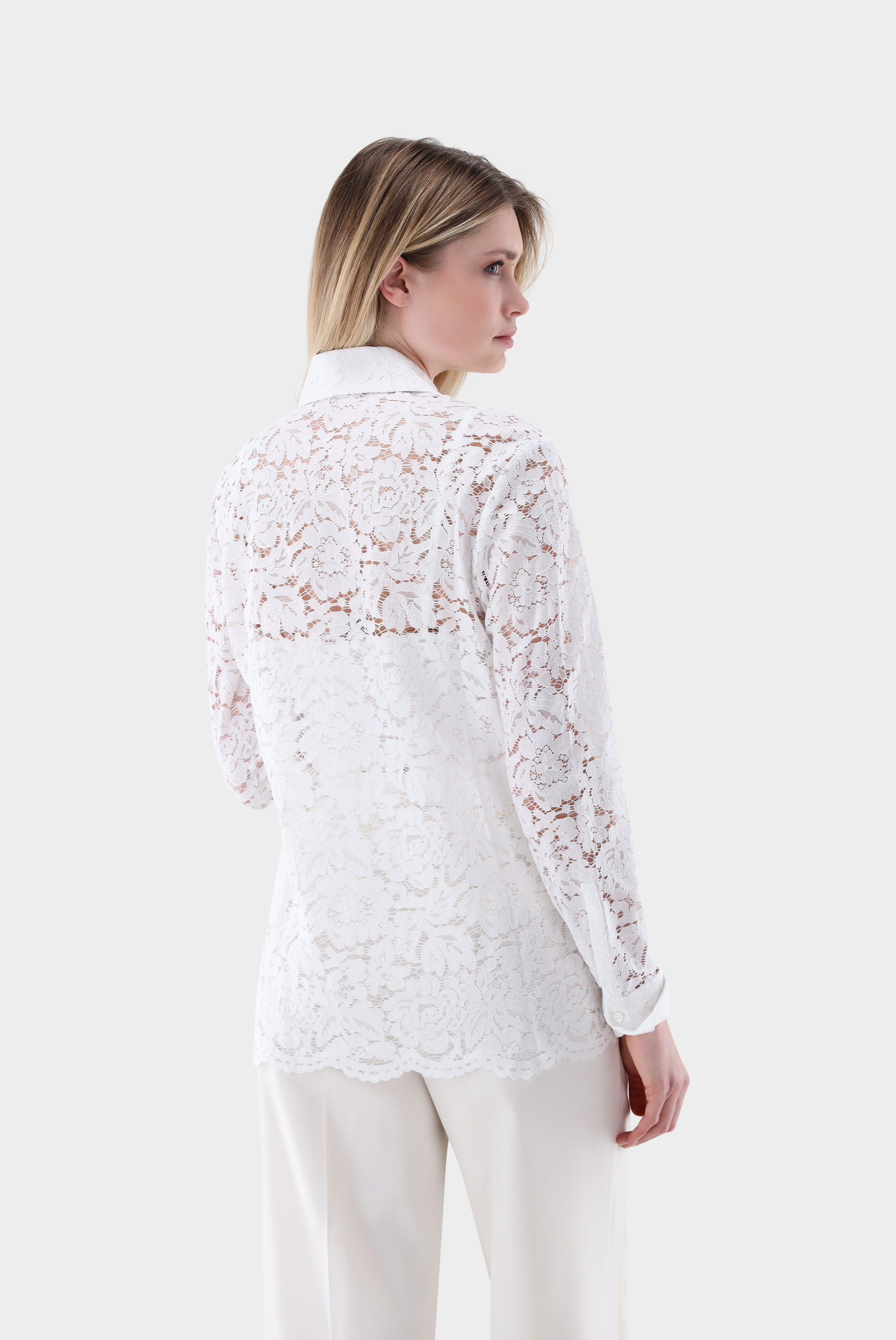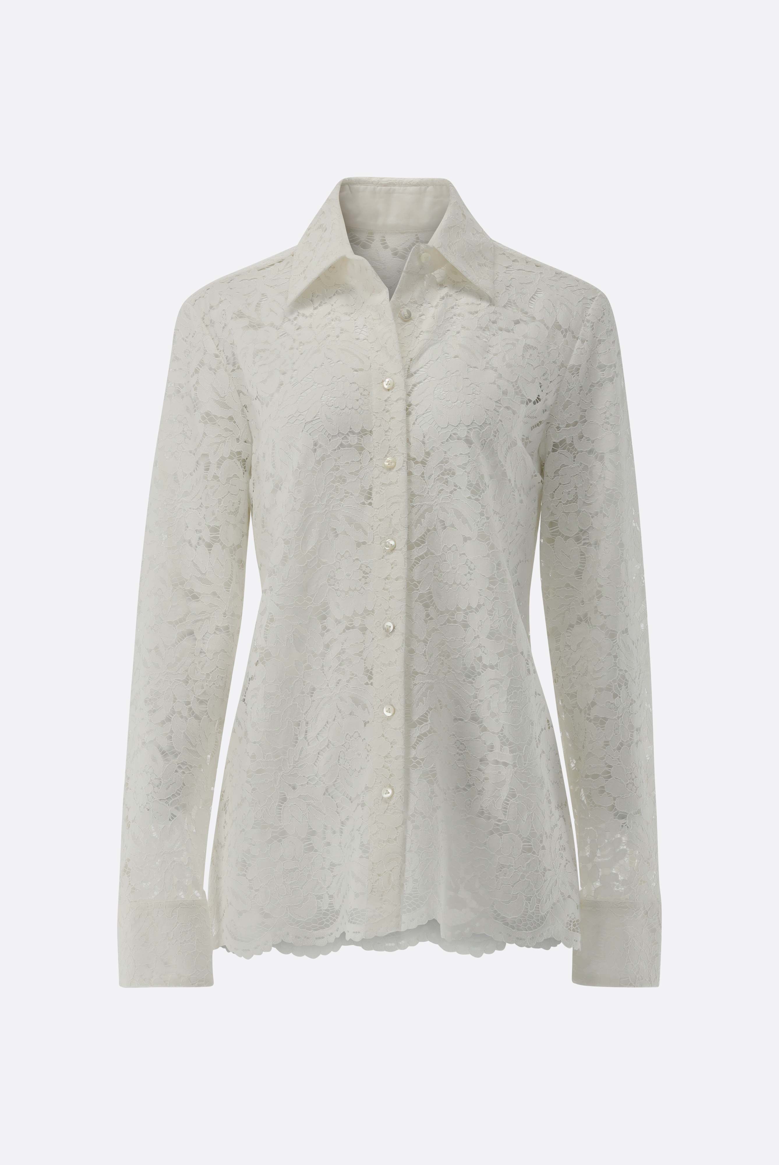 Diese halb taillierte Spitzenbluse mit langen Ärmeln kombiniert feminine Eleganz mit modernem Design. Der gewellte Saum verleiht dem Look eine verspielte Note und setzt stilvolle Akzente. Gefertigt aus einer hochwertigen Materialmischung aus Baumwolle, Nylon und Viskose bietet die Bluse angenehmen Tragekomfort und eine edle Optik. Die feine Spitze sorgt für ein luftiges Tragegefühl und unterstreicht den romantischen Stil. Ideal für besondere Anlässe oder stilvolle Alltags-Outfits – diese Spitzenbluse ist ein echter Blickfang.