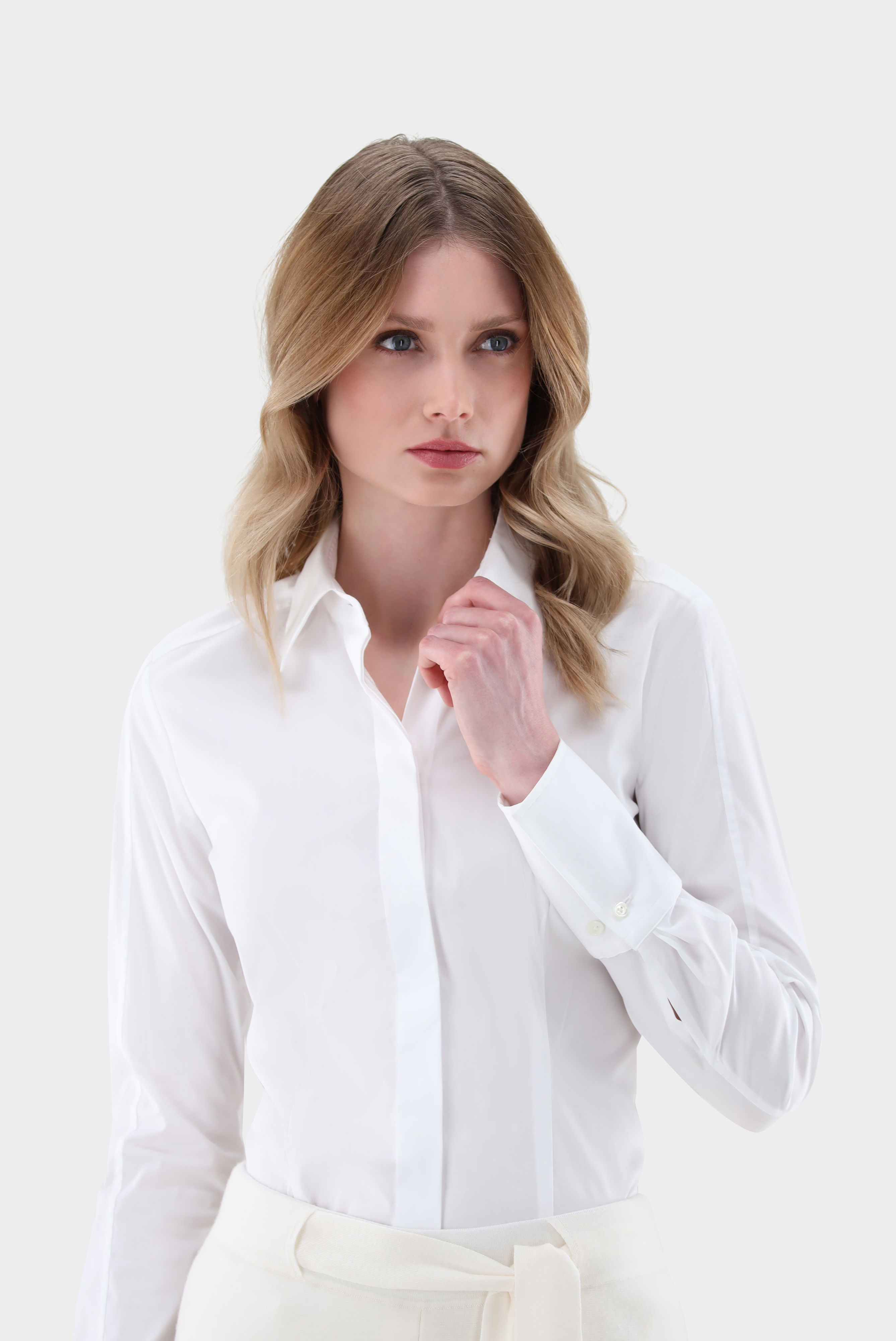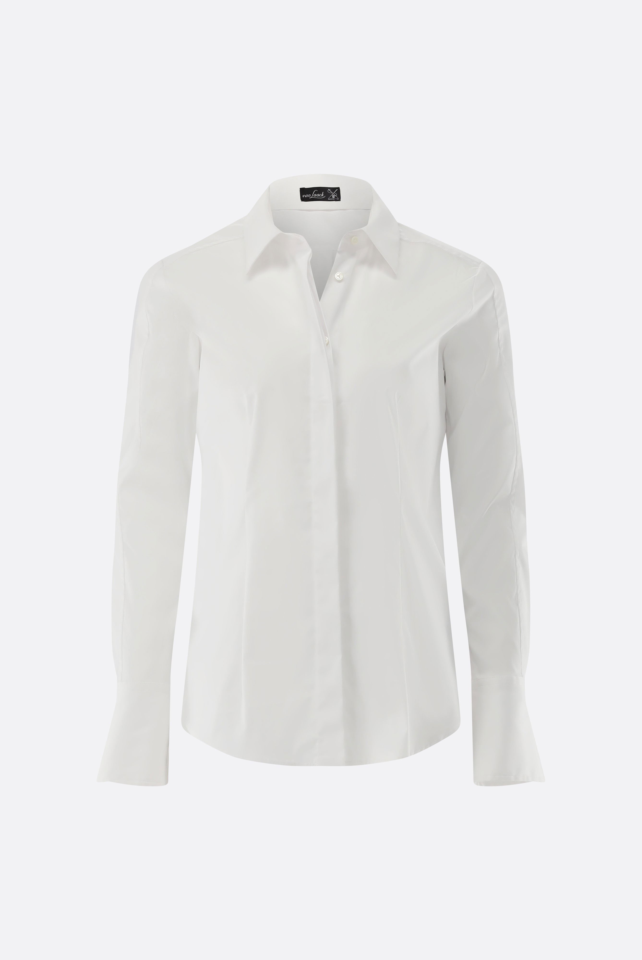 Die Slim Fit Hemdbluse überzeugt durch ihren Stretch Anteil mit hohem Tragekomfort. Das Modell zeichnet sich durch lange Ärmel mit großen Manschetten und eine Rückenpasse, sowie eine Cacharelfalte am Rücken aus. Die verdeckte Knopfleiste sorgt für eine besonders ordentliche Erscheinung.