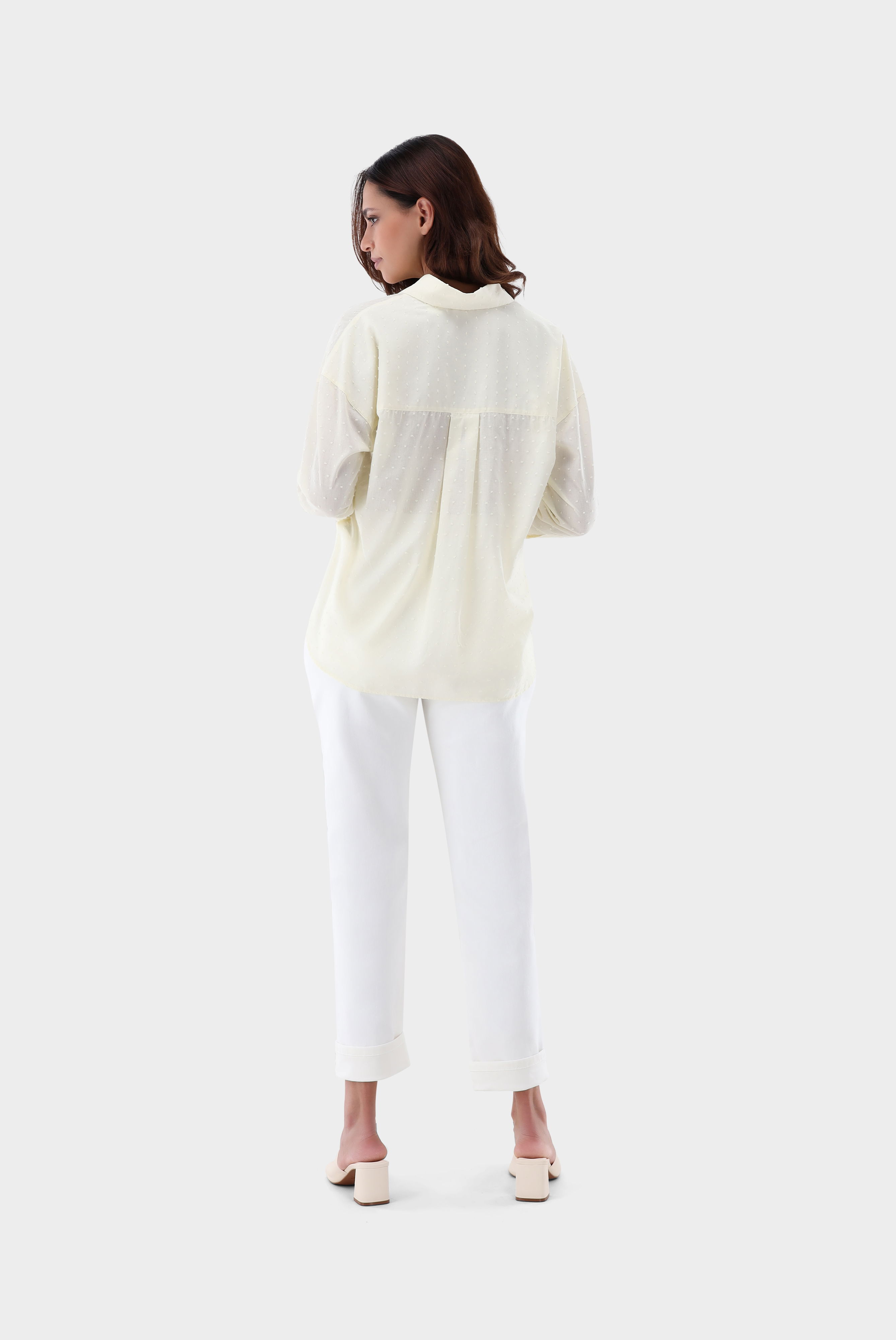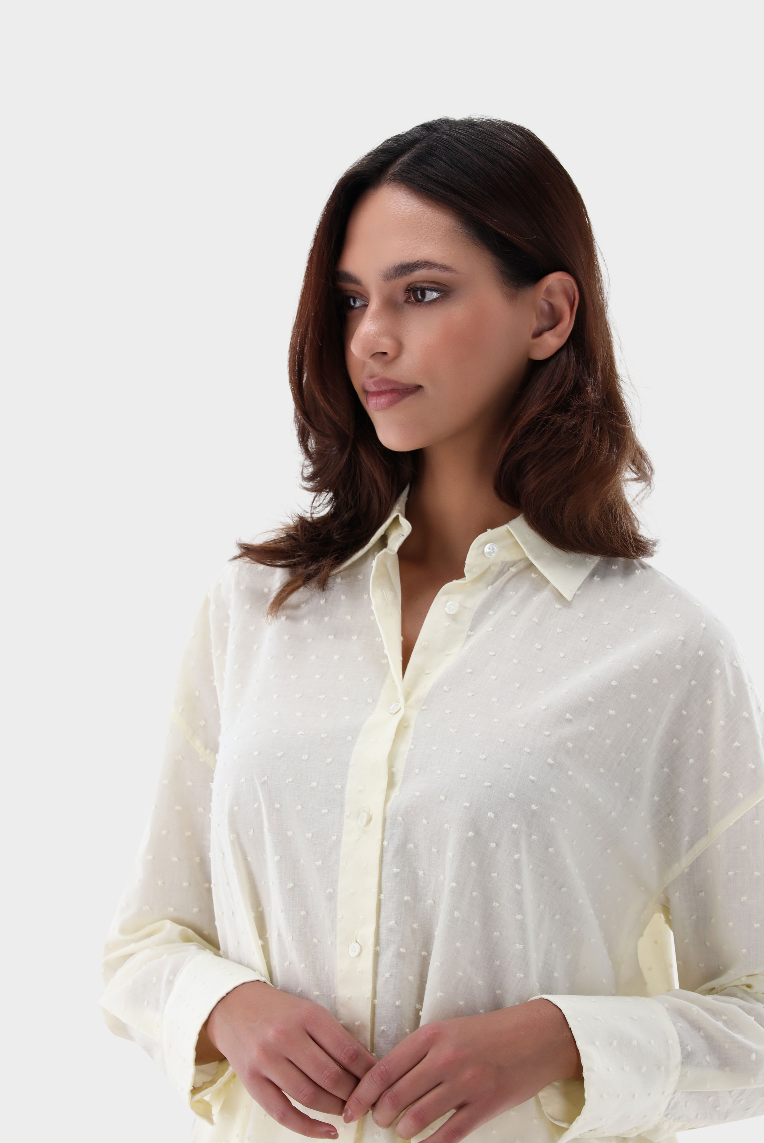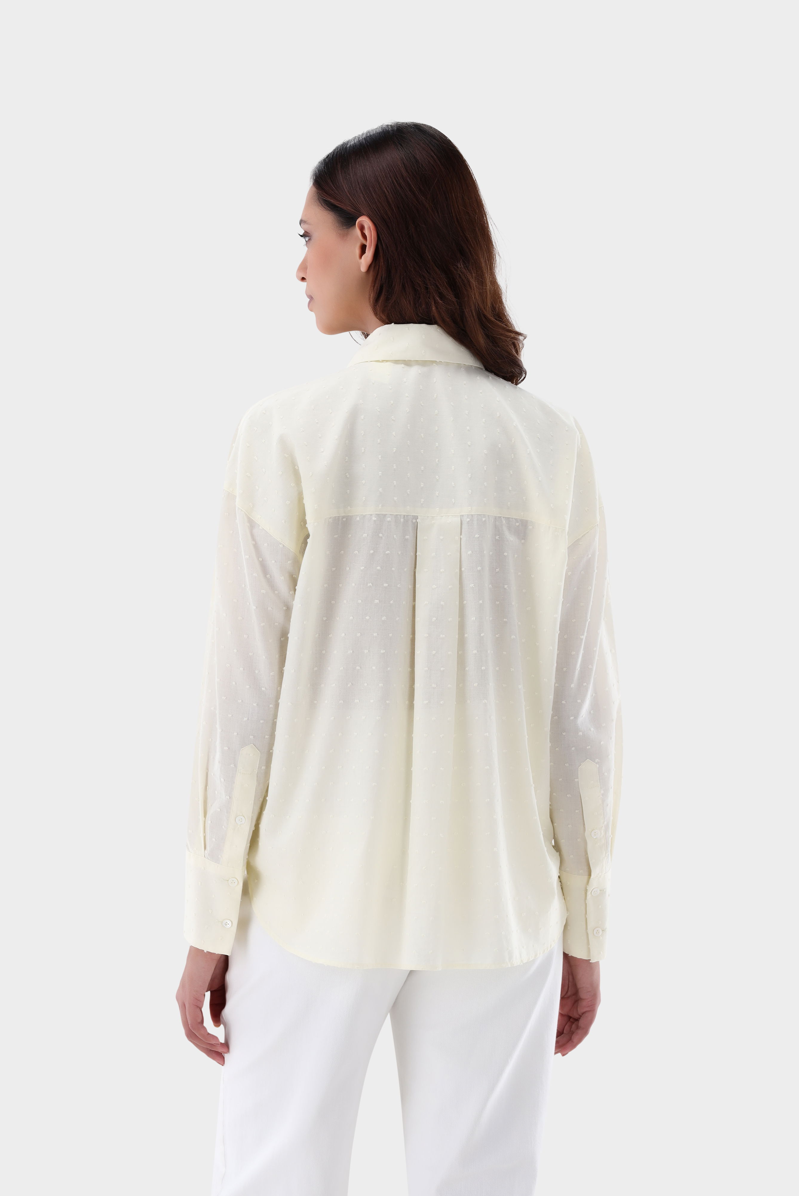 Diese locker geschnittene Hemdbluse aus Baumwoll-Plumetis besticht durch das besonders luftige Material. Plumetis ist ein leichter Baumwoll Batist mit kleinen, erhabenen Punkten die an Federn oder Wolken erinnern. Die überschnittenen Schultern und die Rückenpasse mit Boxfalte sorgen für einen modernen und lässigen Fall der Bluse. Edle Perlmuttknöpfe runden das Design ab und machen die Bluse zu einem vielseitigen Begleiter für Casual- und Sommer-Looks.