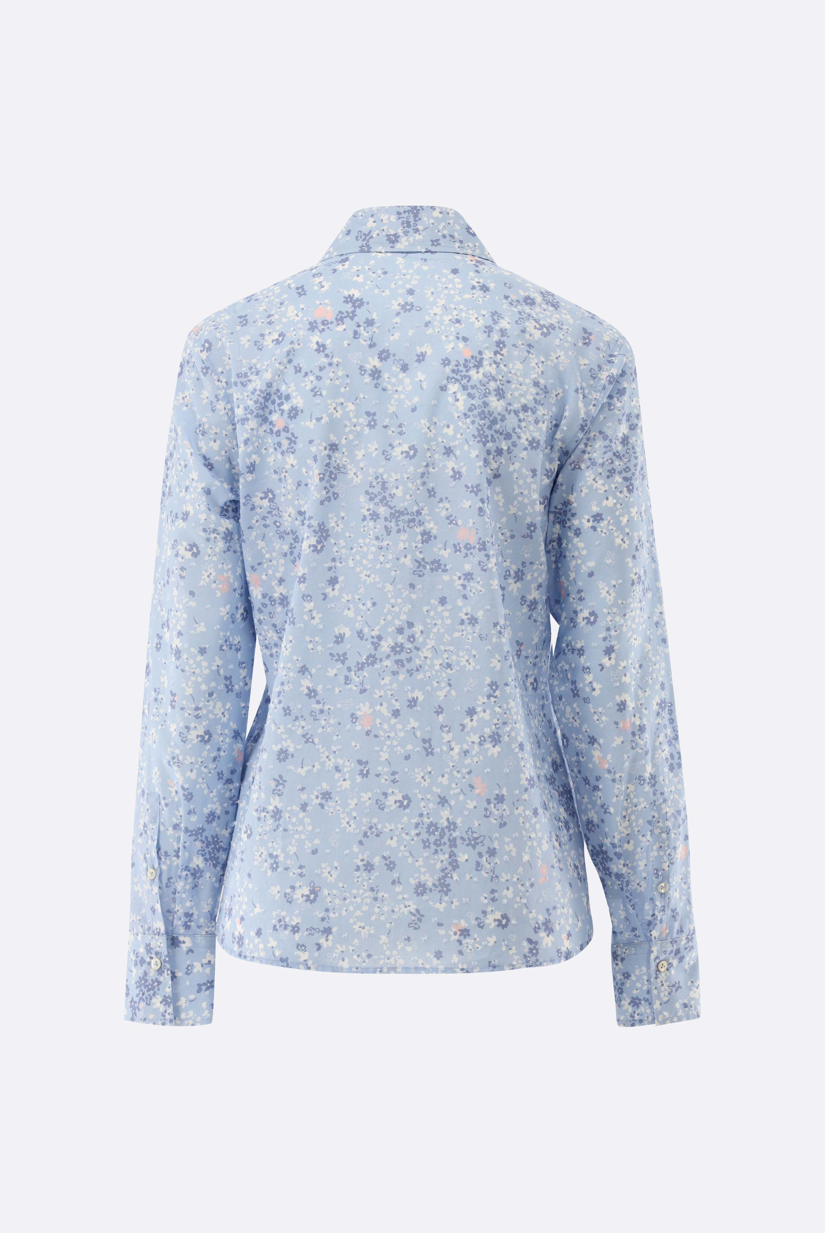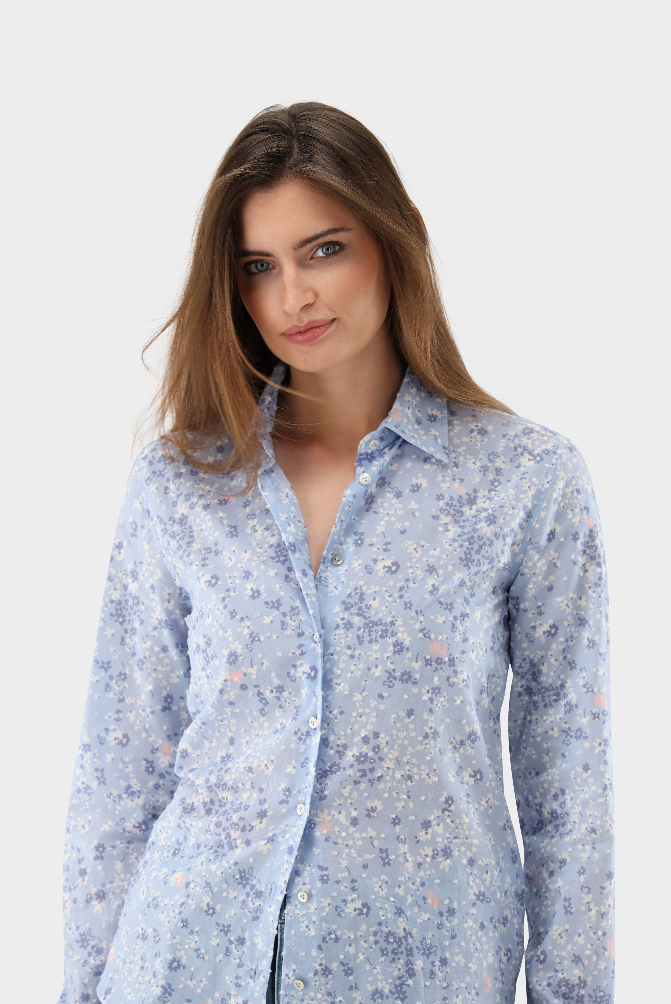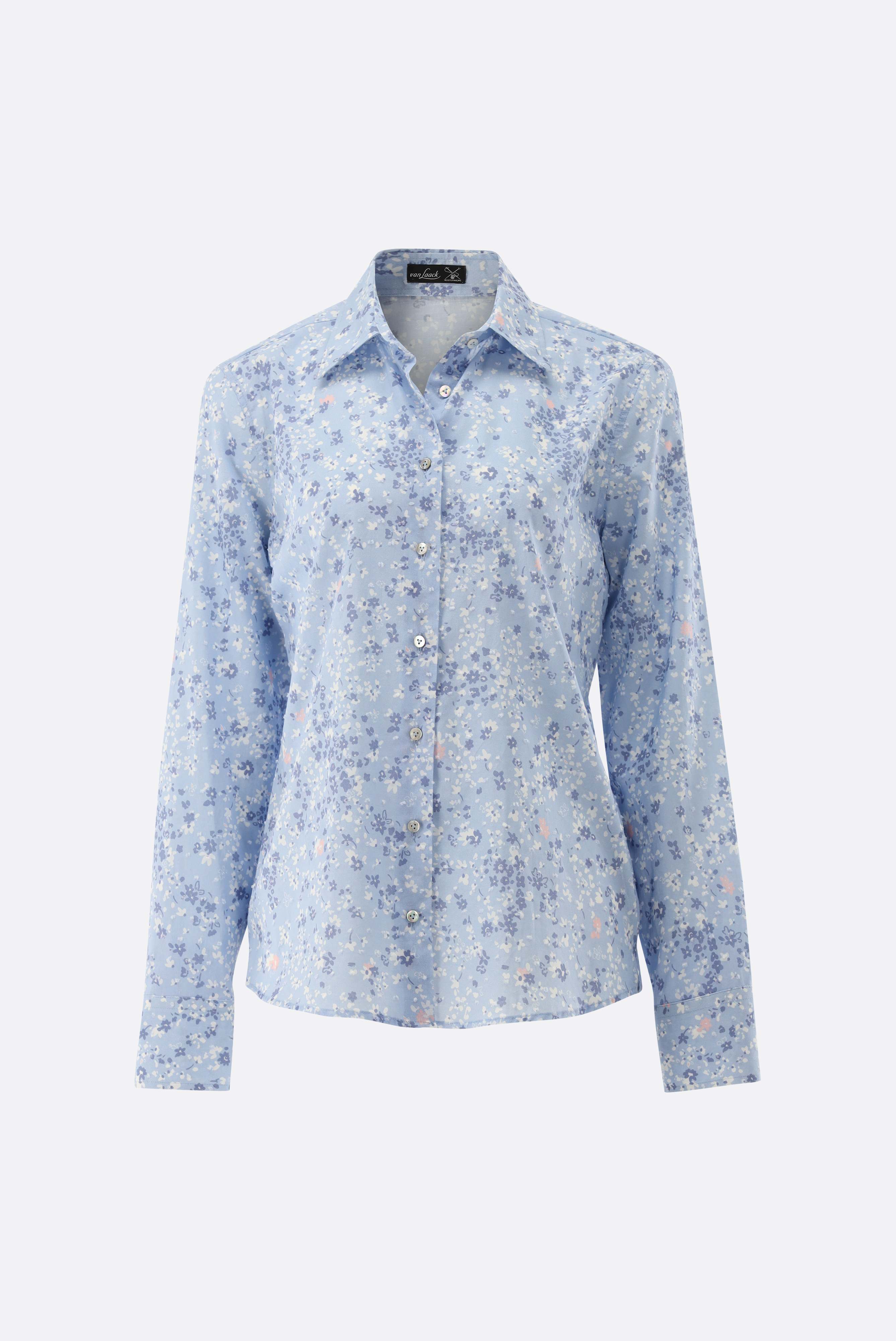 Diese halbtaillierte Hemdbluse überzeugt durch feminine Eleganz und hochwertige Verarbeitung. Lange Ärmel und ein klassischer Schnitt sorgen für eine komfortable Passform, während das feine Blumenmuster der Baumwollplumetis-Stoffe verspielte Akzente setzt. Edle Perlmuttknöpfe runden das Design stilvoll ab. Die leichte, atmungsaktive Baumwolle sorgt für ein angenehmes Tragegefühl. Ideal für elegante Freizeit-Looks, Business-Casual-Outfits oder besondere Anlässe mit einem modernen, femininen Touch.