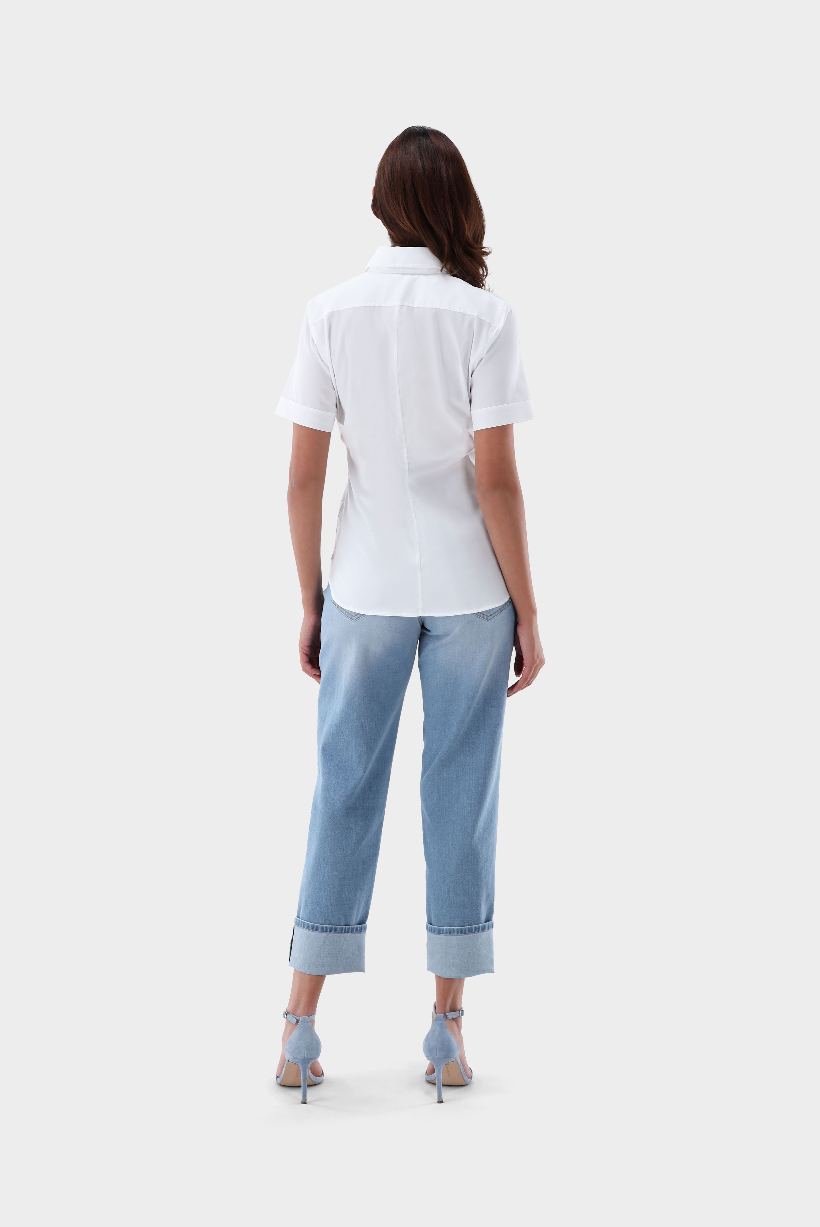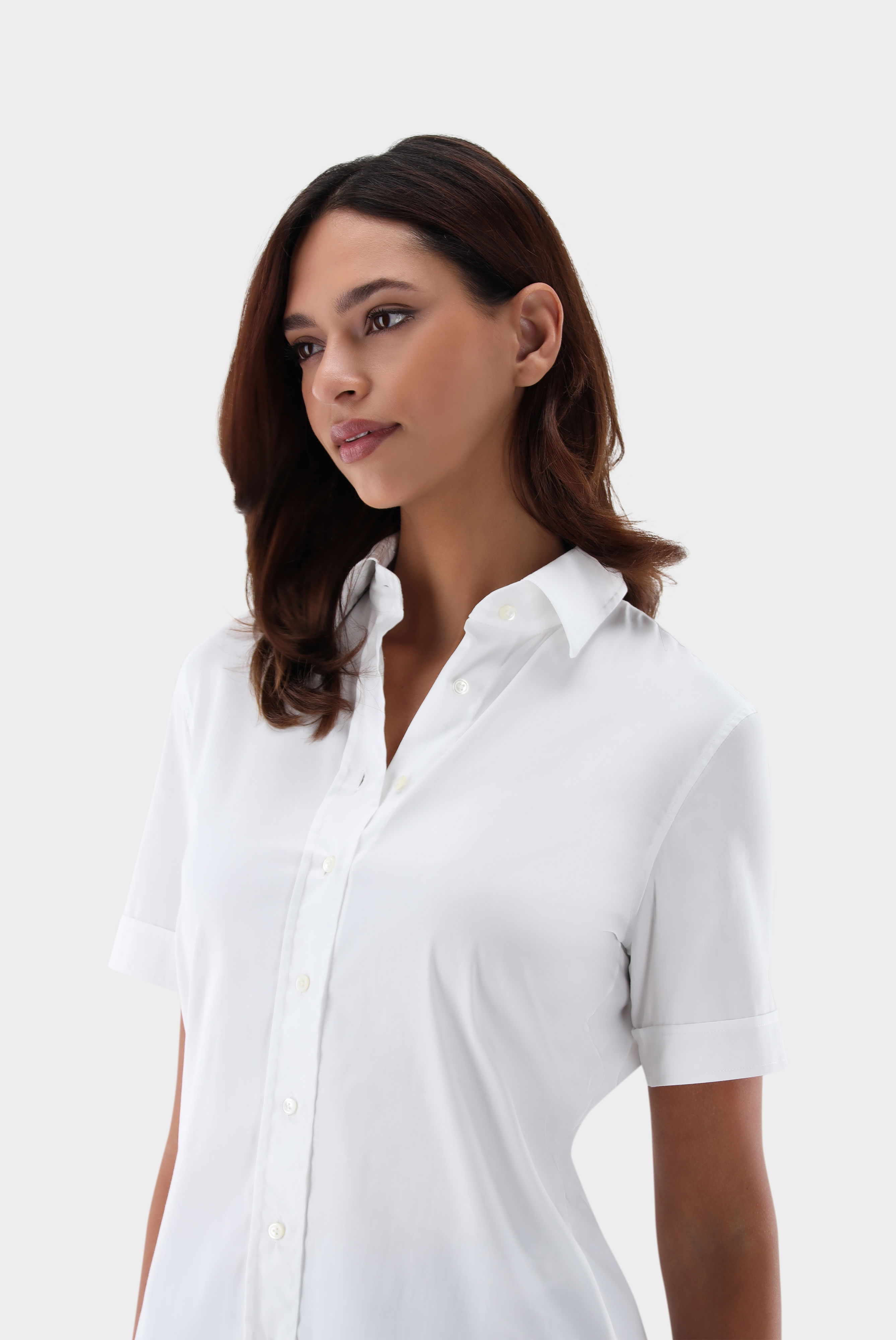 Diese figurbetonte Hemdbluse überzeugt durch ihren eleganten Slim-Fit-Schnitt und hochwertige Details. Gefertigt aus Stretch-Material in Satin-Optik, bietet die Bluse hohen Tragekomfort und eine schmeichelhafte Passform. Eine Rückenpasse und tonige Ziernähte auf der Steg-Innenseite verleihen ihr ein stilvolles Design. Perlmuttknöpfe setzen edle Akzente und runden die Bluse harmonisch ab. Ideal für casual Outfits oder elegante Business-Looks.