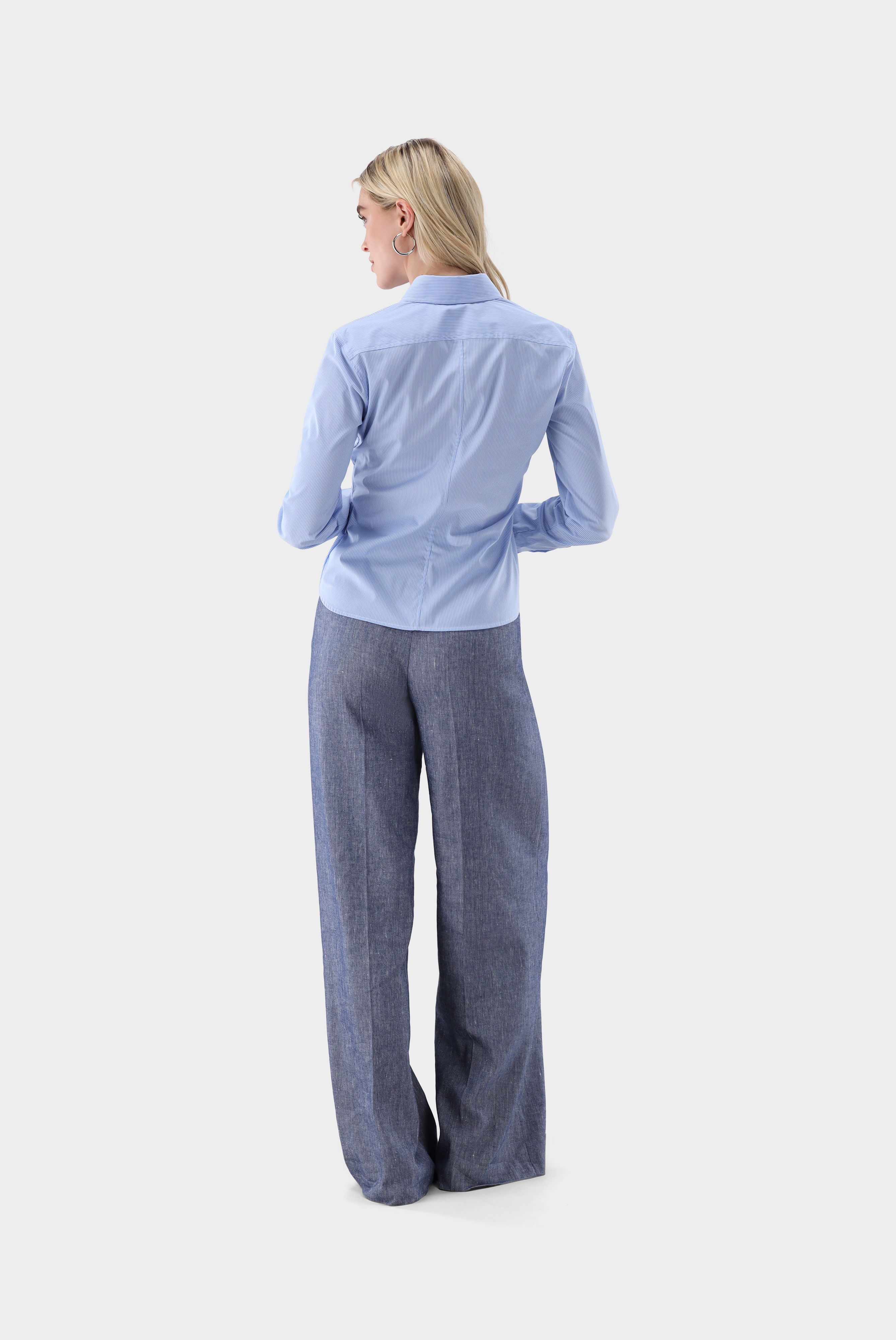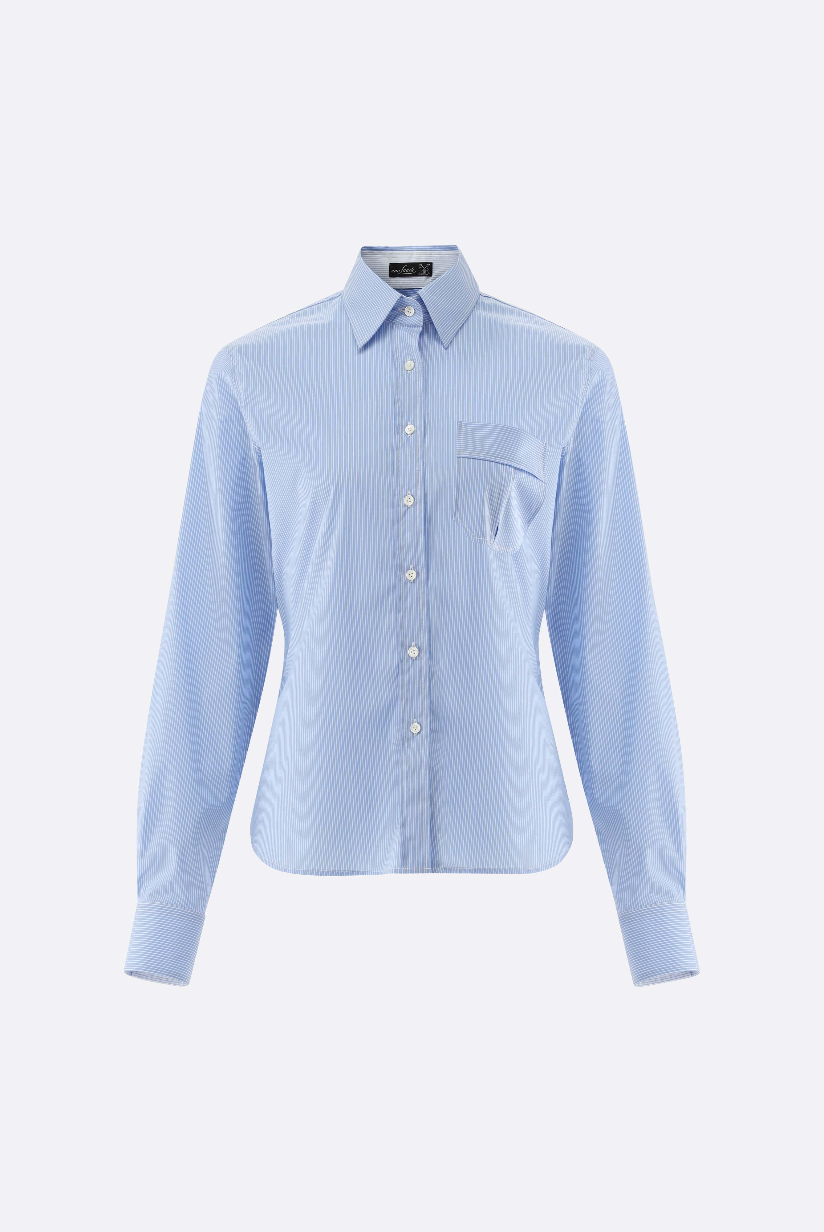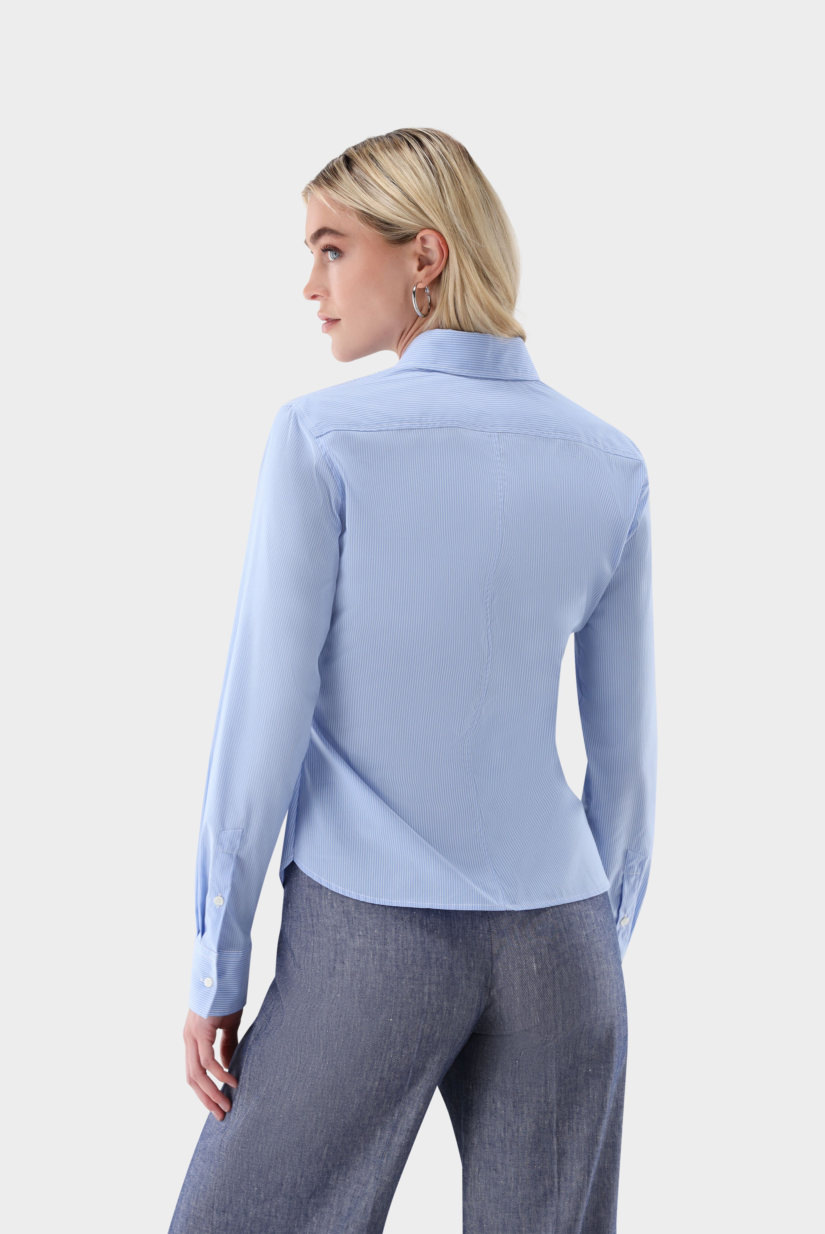 Diese taillierte Hemdbluse aus gestreifter Baumwollpopeline überzeugt durch ihre elegante Passform und hochwertige Verarbeitung. Lange Ärmel, eine aufgesetzte Brusttasche und die formgebende Rückenpasse unterstreichen den klassischen Charakter. Innenliegende Manschetten- und Kragenstege mit Kontraststoff setzen stilvolle Akzente und verleihen dem Design eine besondere Note. Das atmungsaktive Material sorgt für hohen Tragekomfort und macht die Bluse zur idealen Wahl für Business- und gepflegte Alltagslooks.
