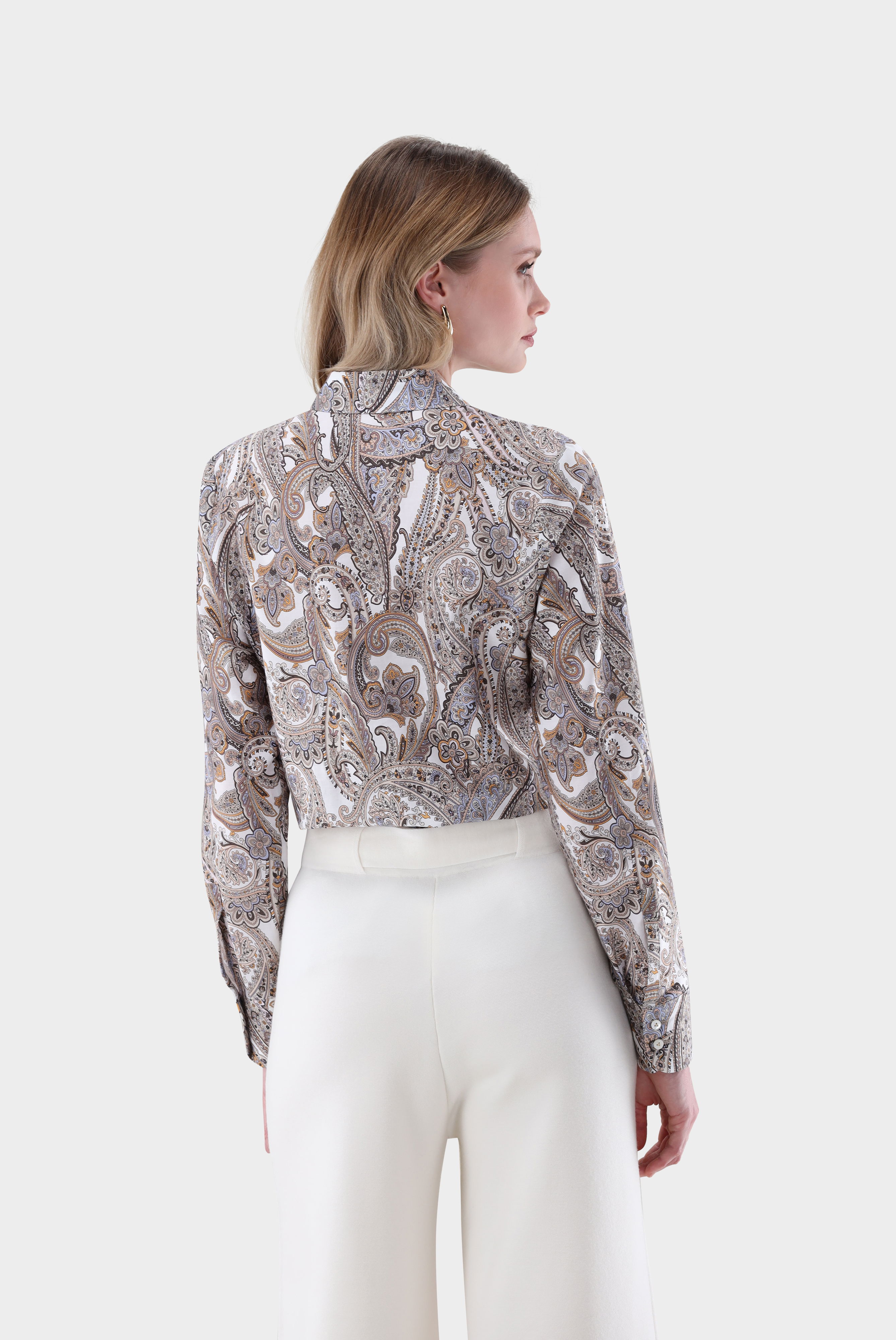 Look aus Hemdbluse tailliert mit Paisley Druck