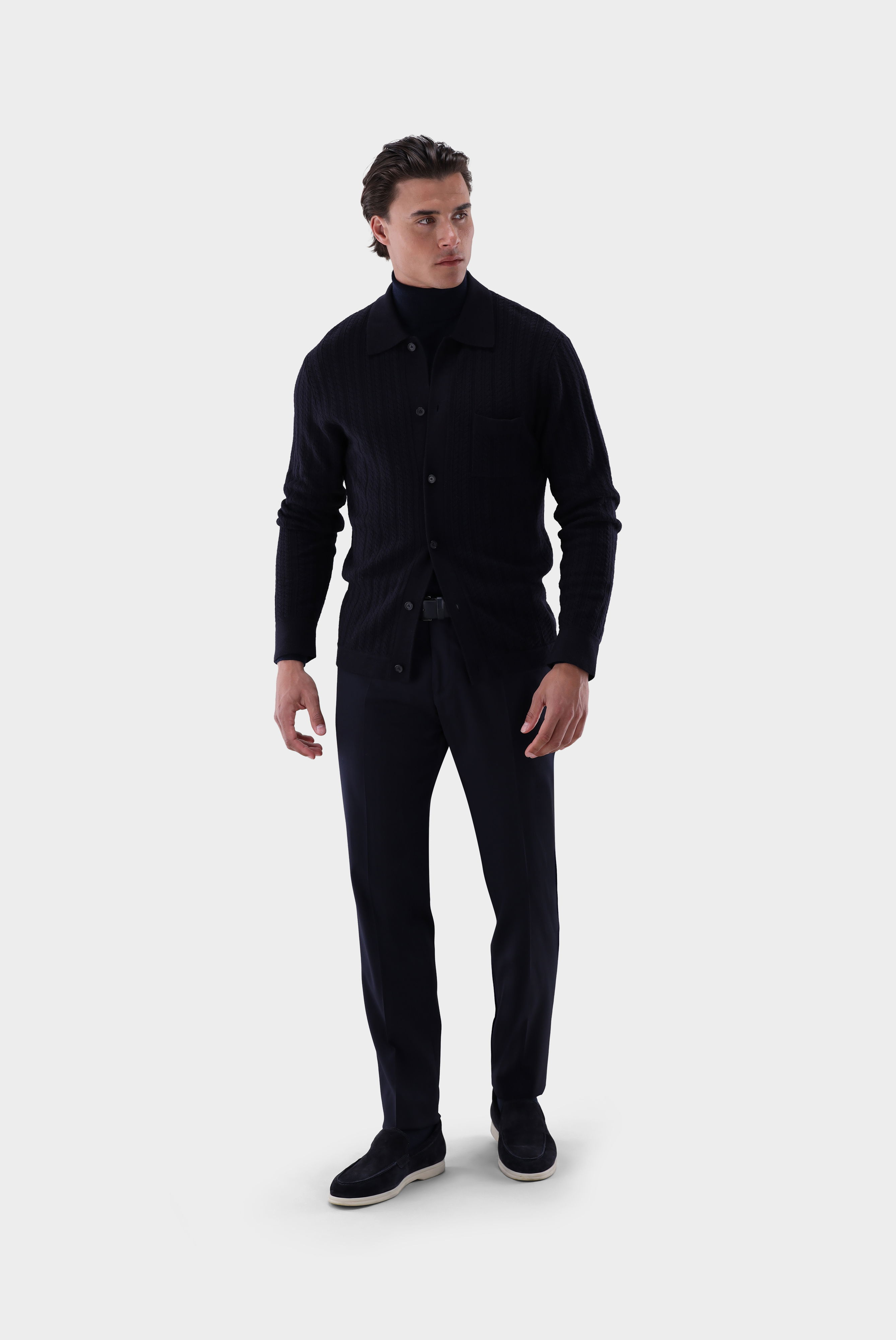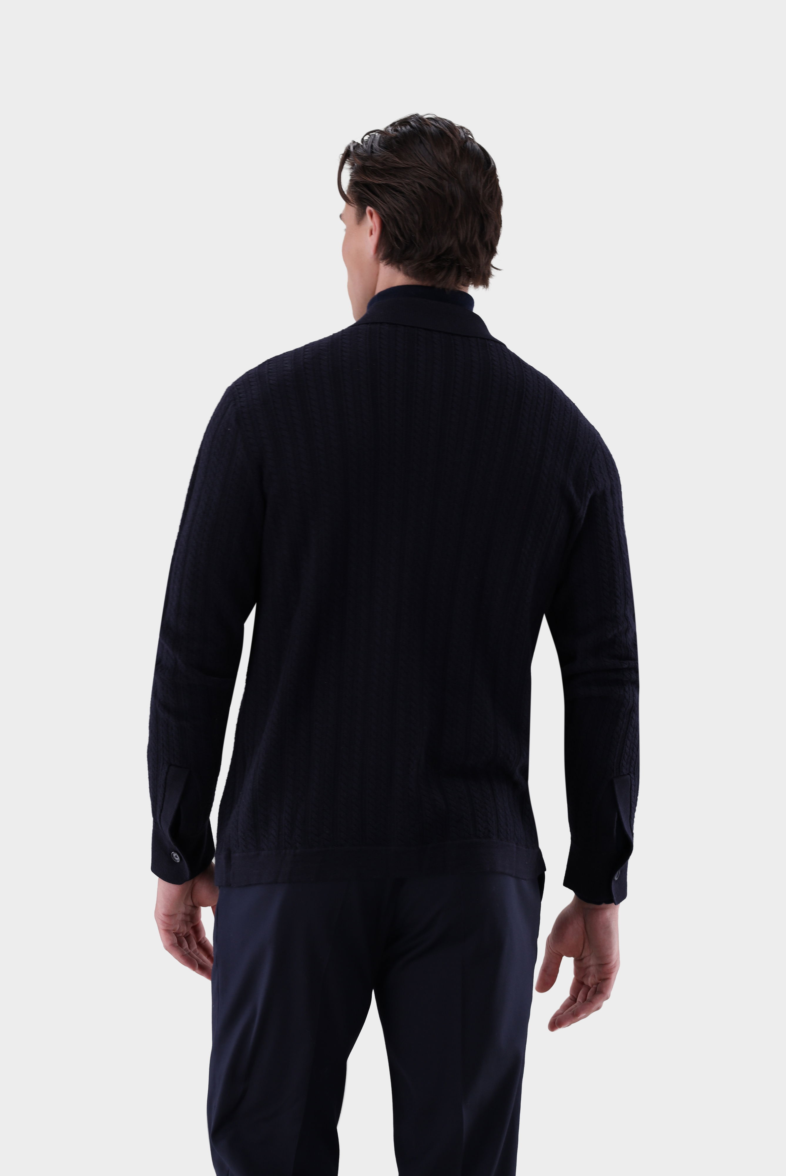 Diese Hemdjacke aus edler Woll- und Seidenmischung kombiniert hochwertige Materialien mit innovativer Verarbeitung. Dank Fully-Fashioned-Technik ohne Verschnitt wird sie besonders nachhaltig gefertigt und überzeugt durch präzise Passform. Das markante Zopfmuster verleiht dem Design eine strukturierte Optik, während die Brusttasche funktionale Akzente setzt. Die Materialkombination macht die Jacke außergewöhnlich weich und angenehm auf der Haut – ideal für stilvolle Freizeit- und Alltagslooks.