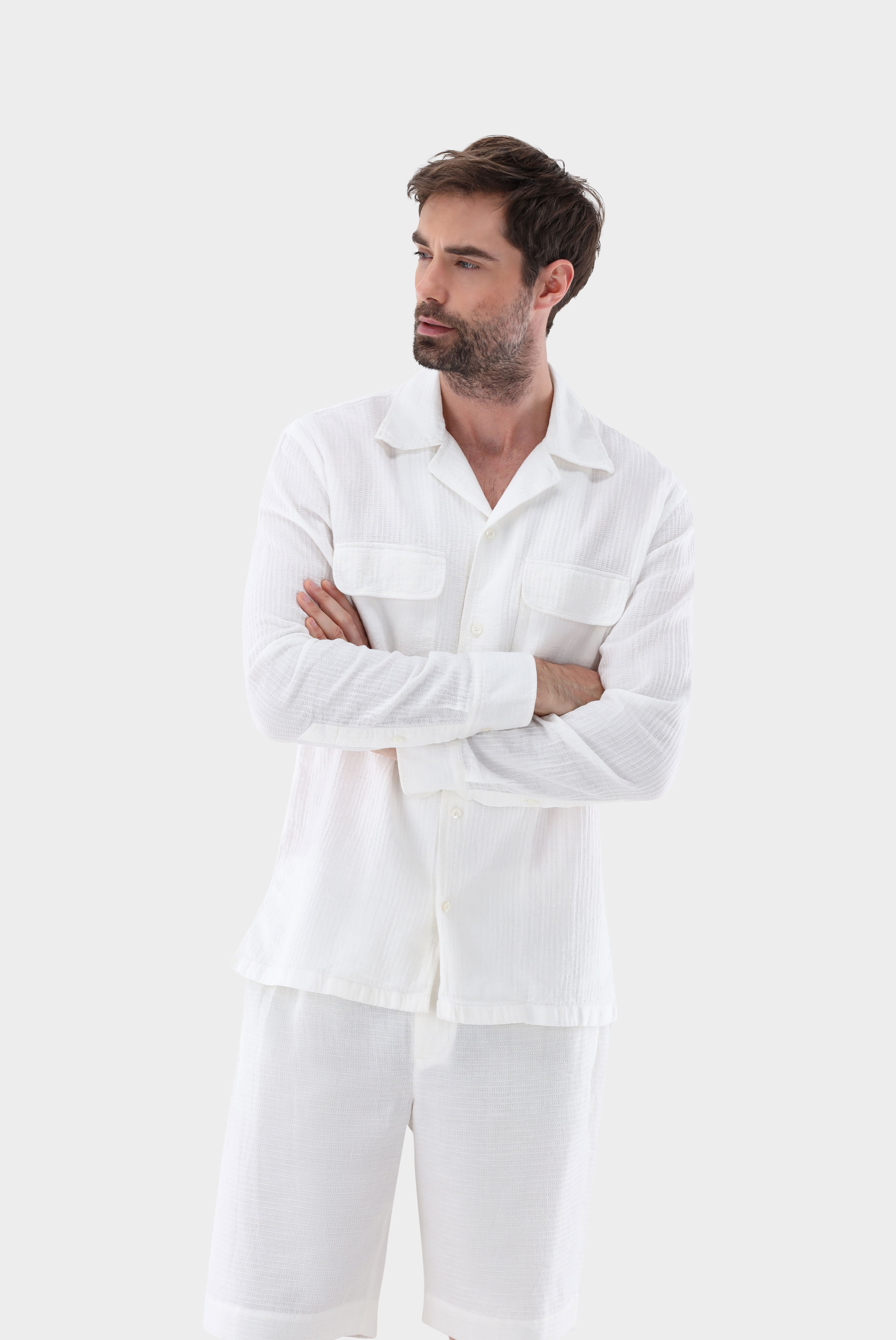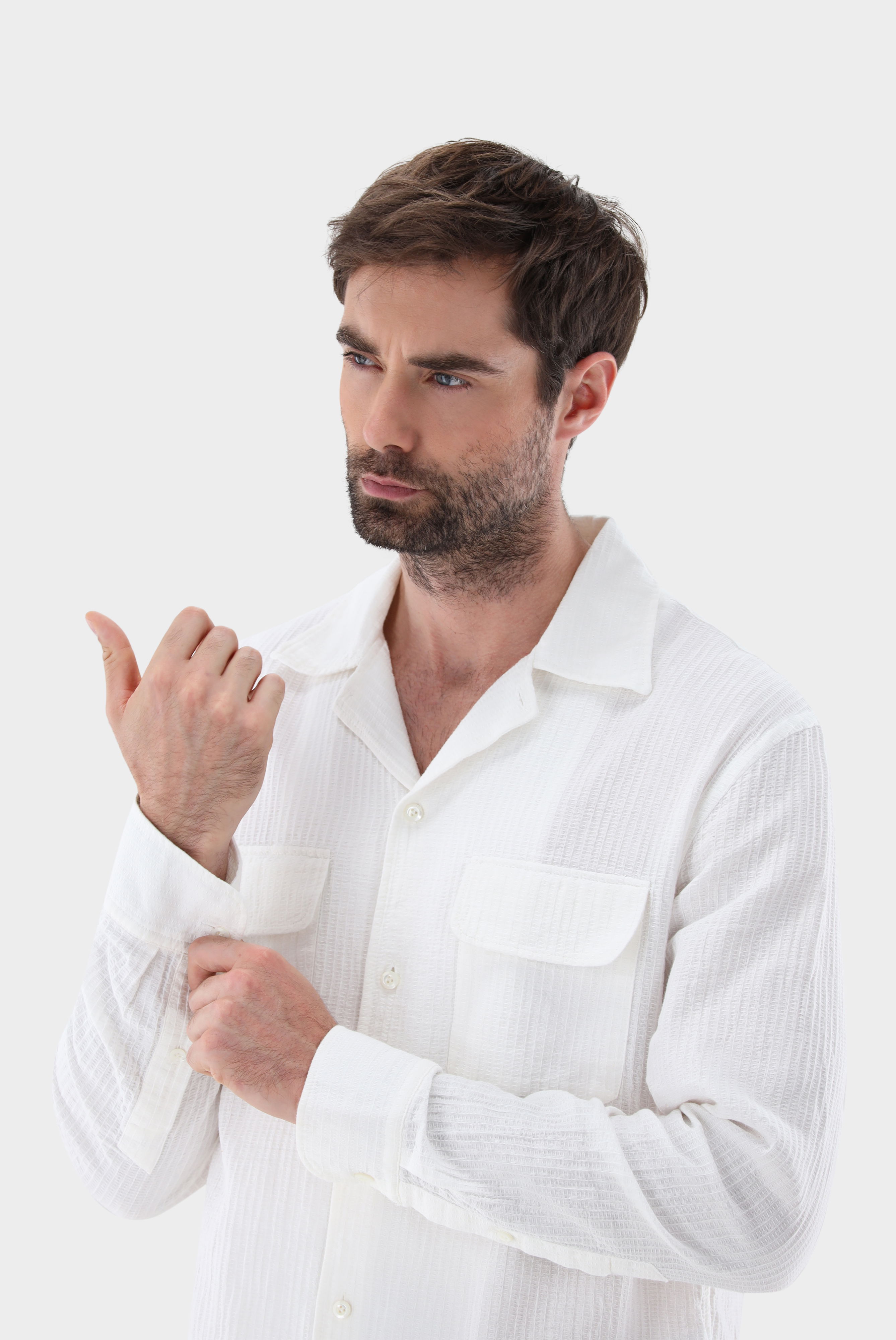 Look aus Hemdjacke mit Reverskragen und Struktur