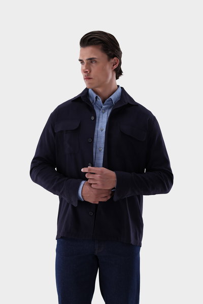 Unifarbenes Luxus-Flanell-Overshirt für höchsten Tragekomfort. Die doppelseitige, zweifarbige Verarbeitung verleiht dem Design Tiefe und Vielseitigkeit. Ausgestattet mit klassischem Kent-Kragen, zwei praktischen Brusttaschen und neutralem Innenkontrast bietet es sowohl Funktionalität als auch stilvolle Details. Ideal als Übergangsjacke oder modische Ergänzung für Lagenlooks – ein hochwertiges Piece für anspruchsvolle Freizeit- und Business-Outfits.