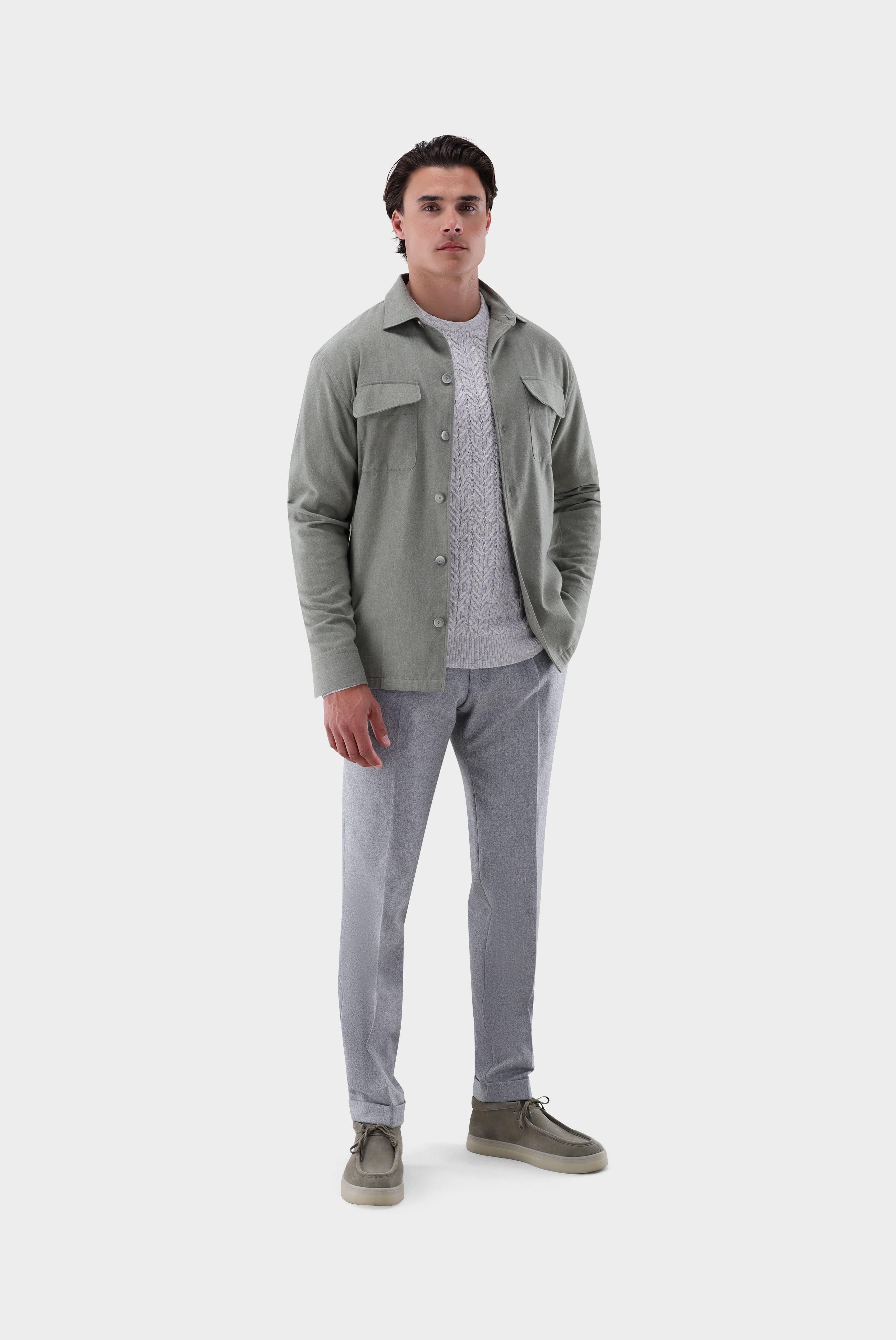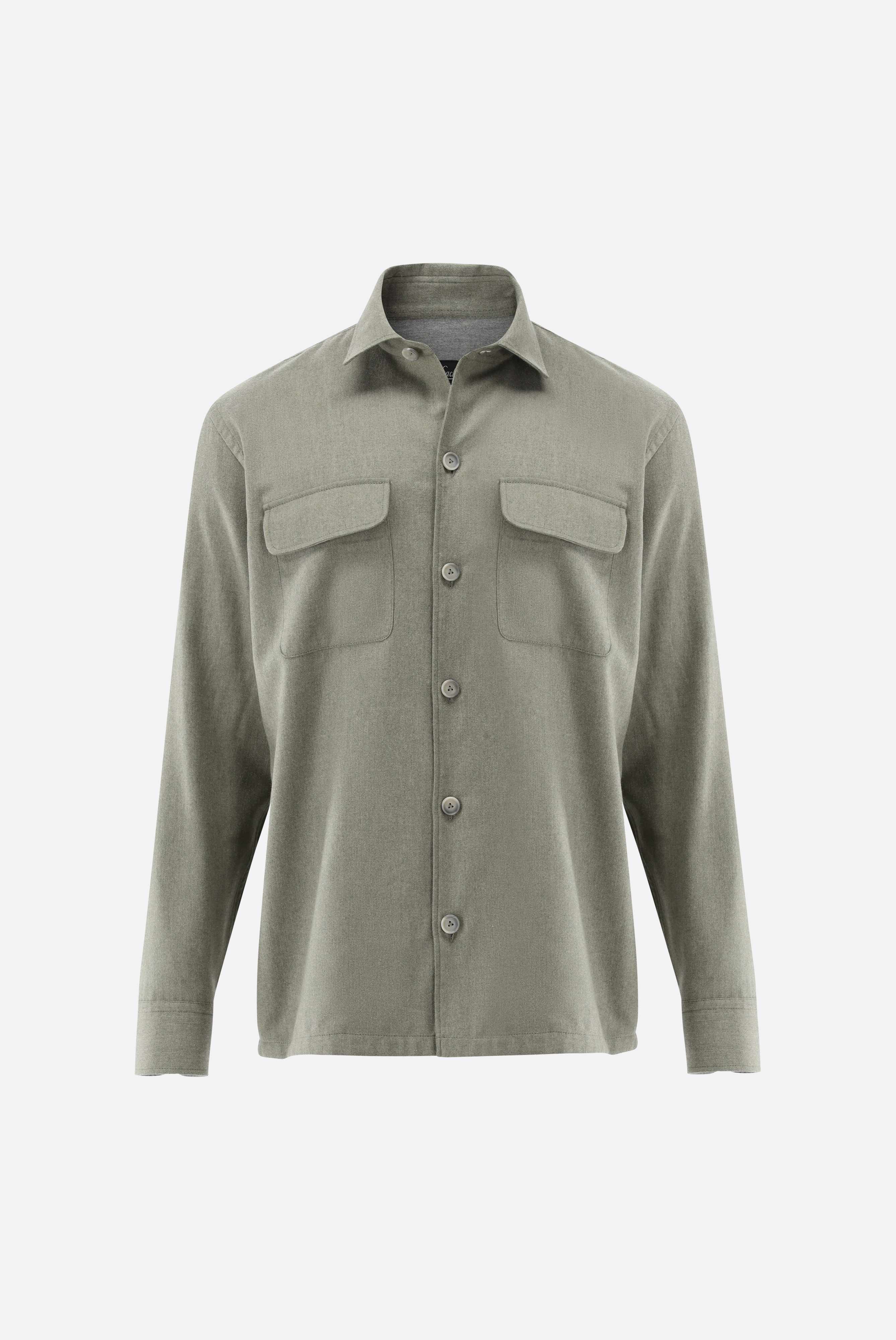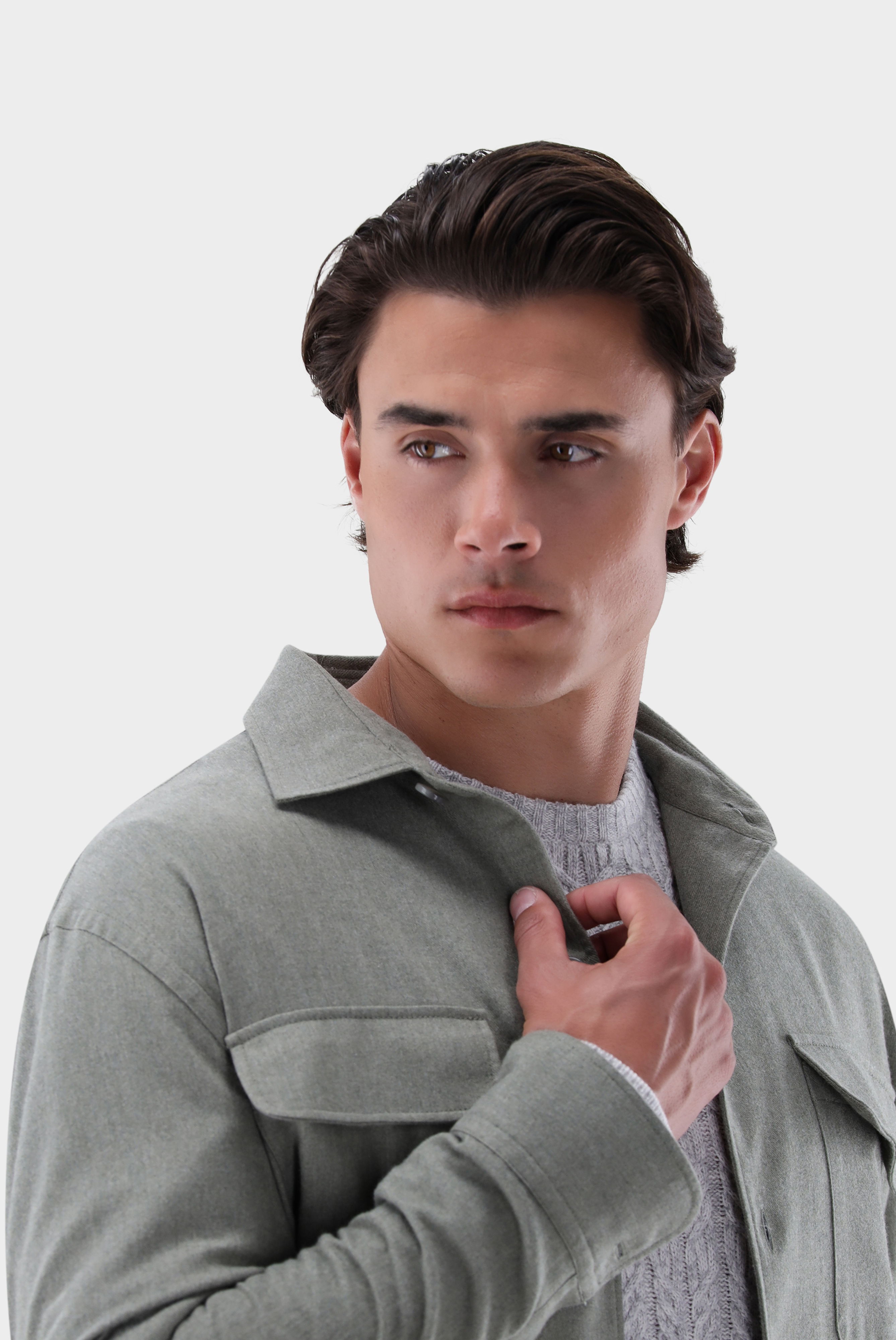 Unifarbenes Luxus-Flanell-Overshirt für höchsten Tragekomfort. Die doppelseitige, zweifarbige Verarbeitung verleiht dem Design Tiefe und Vielseitigkeit. Ausgestattet mit klassischem Kent-Kragen, zwei praktischen Brusttaschen und neutralem Innenkontrast bietet es sowohl Funktionalität als auch stilvolle Details. Ideal als Übergangsjacke oder modische Ergänzung für Lagenlooks – ein hochwertiges Piece für anspruchsvolle Freizeit- und Business-Outfits.