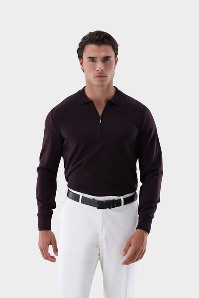 Look aus Poloshirt Langarm mit Reißverschluss aus merzerisierter Wolle