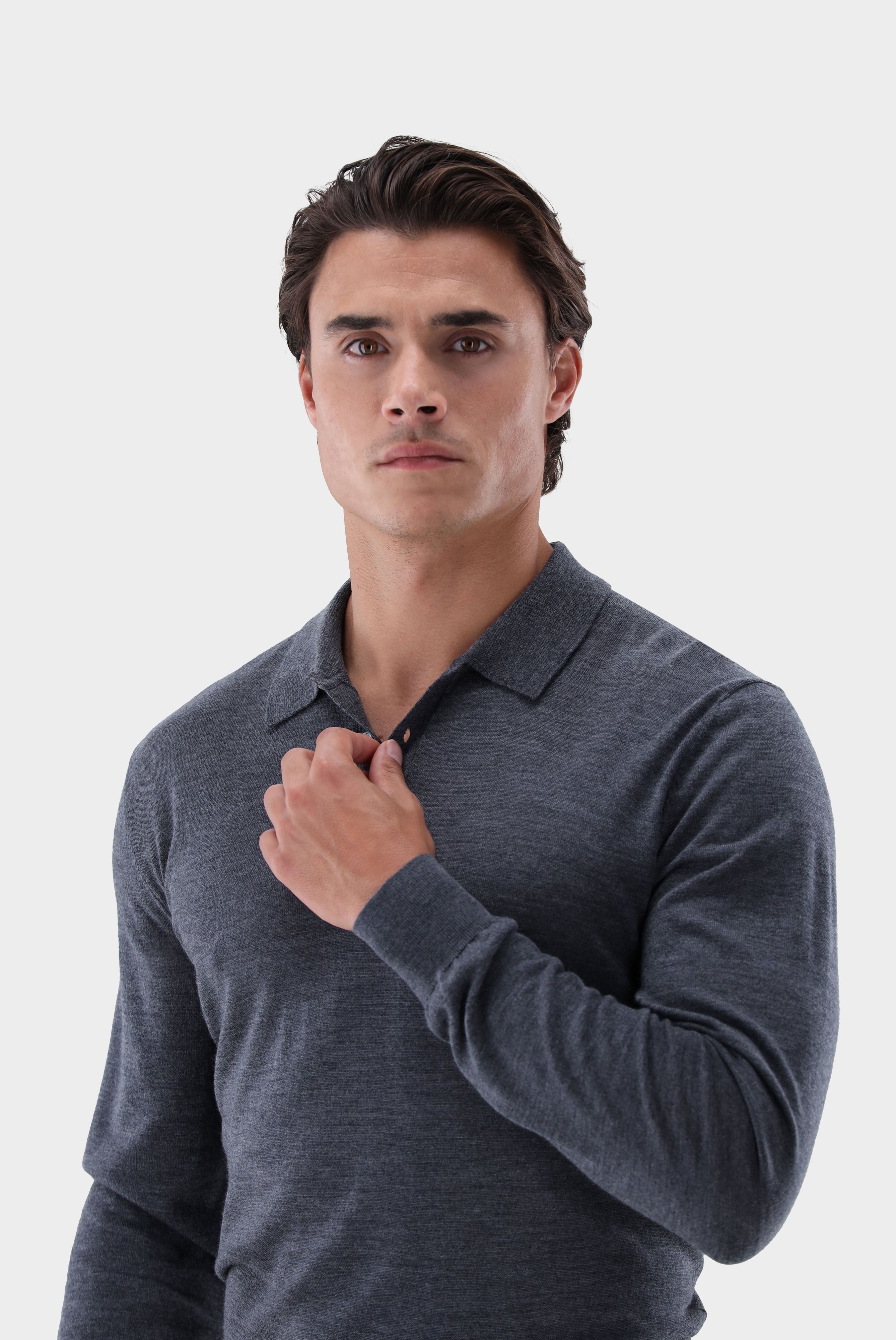 Das elegante Poloshirt sorgt nicht nur für angenehmen Tragekomfort, sondern verleiht dem Poloshirt auch eine edle Ausstrahlung. Der Kragen fügt dem Shirt eine zeitgemäße Note hinzu und macht es zu einer stilvollen Wahl. Die Schurwolle sorgt für Wärme ist gleichzeitig aber so fein, dass sie auch gut unter einem Sakko oder eine Jacke tragbar ist. Ob direkt auf der Haut als Poloshirt, oder in formelleren Looks als Pullover mit einem Hemd darunter, dieses Poloshirt bietet Vielseitigkeit und Eleganz in einem.