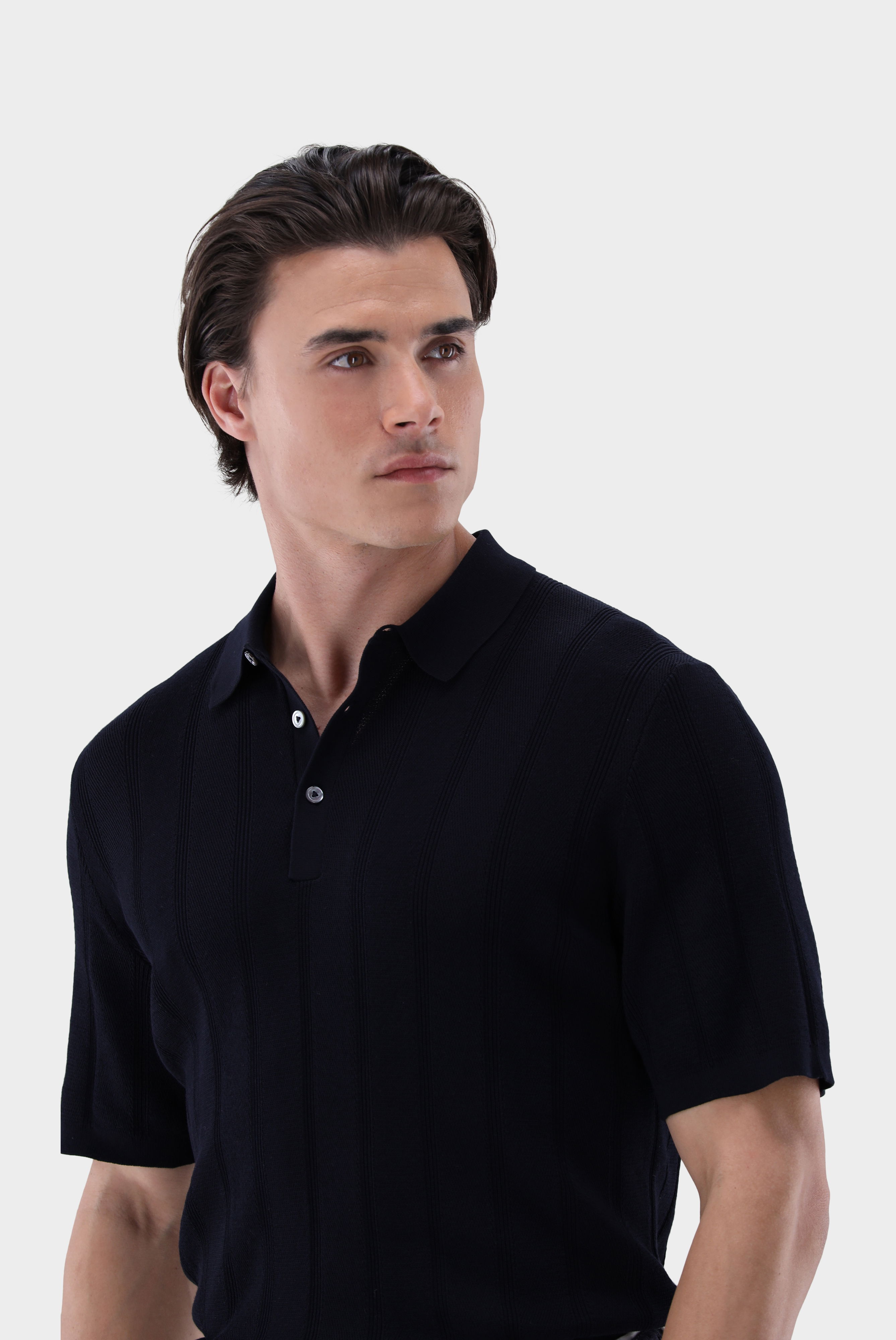Das Strick Polohemd mit Jacquard Streifen aus Air Cotton überzeugt durch Tragekomfort und hochwertige Verarbeitung. Der Einsatz von gezwirnten, fein gestrickten Baumwollgarnen sorgt für eine leichte Struktur, die eine Streifenoptik verleiht. Die Jacquard Oberfläche sorgt dabei für einen modernen Look.