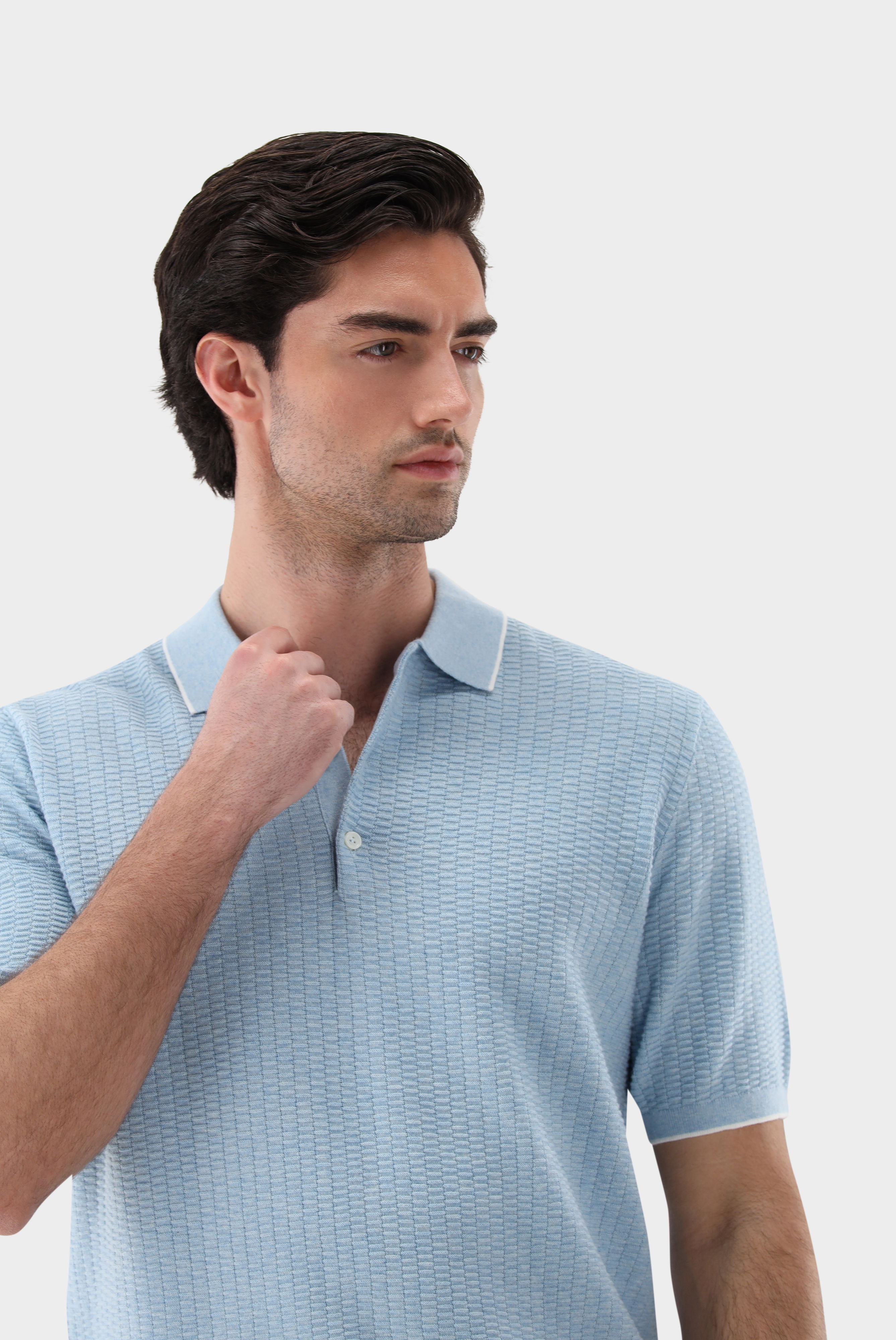Strick Poloshirt mt Kaschmir und Jacquard Struktur