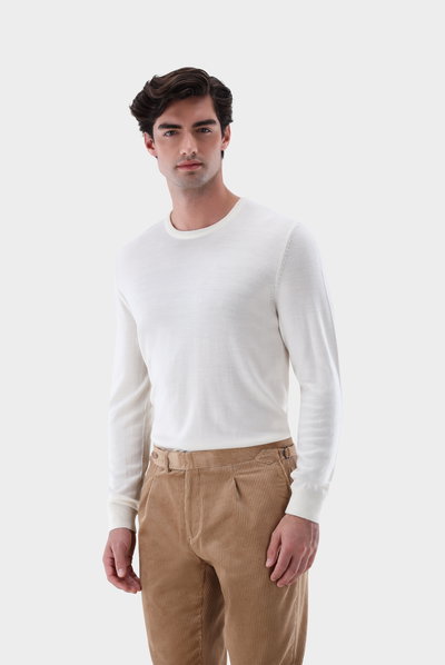 Rundhalspullover aus merzerisierter Merinowolle mit Farbdetail