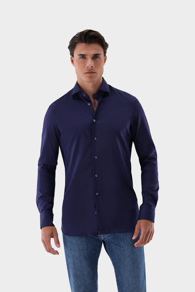 Tailor-Fit-Hemden sind leicht tailliert geschnitten und haben Abnäher am Rücken.