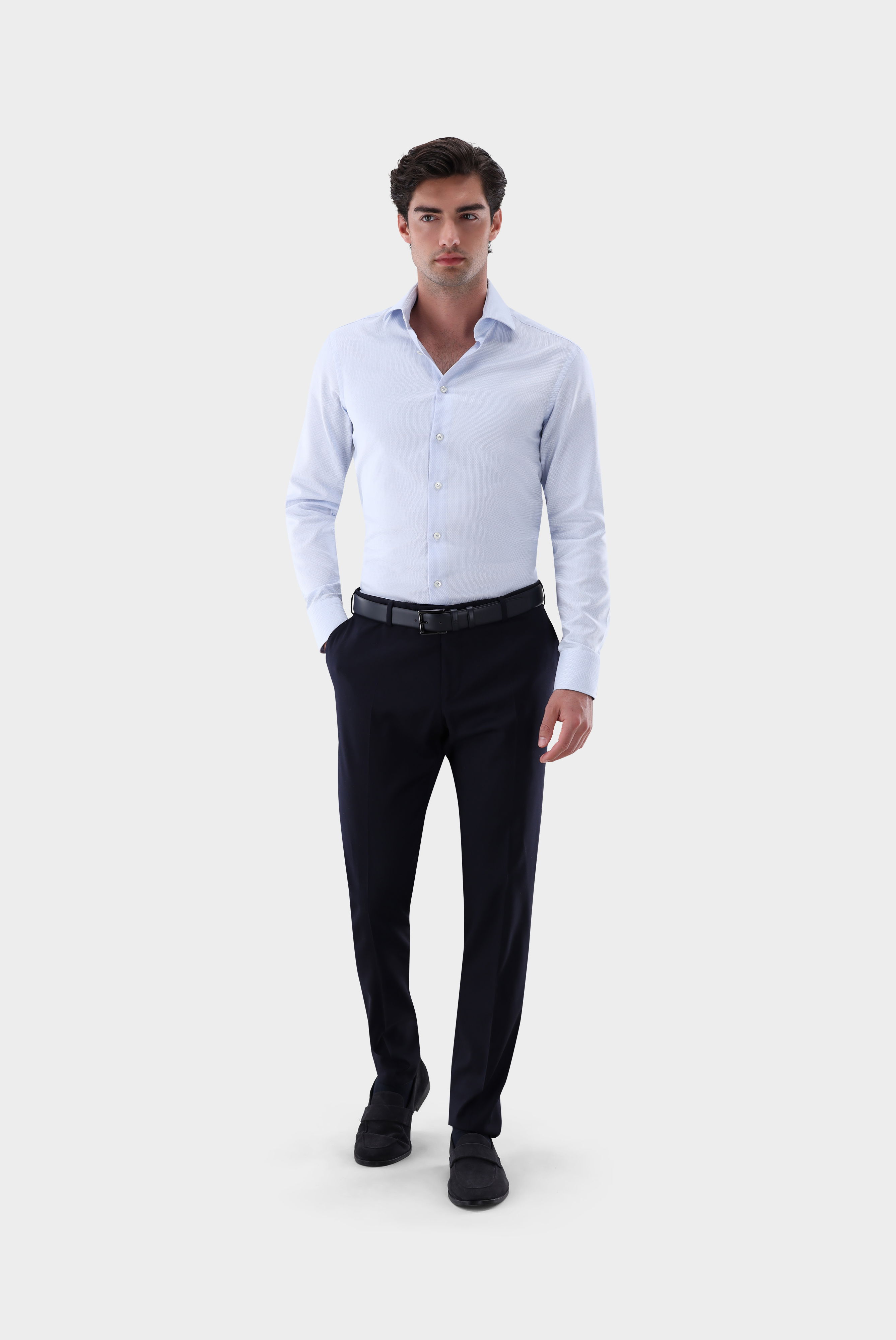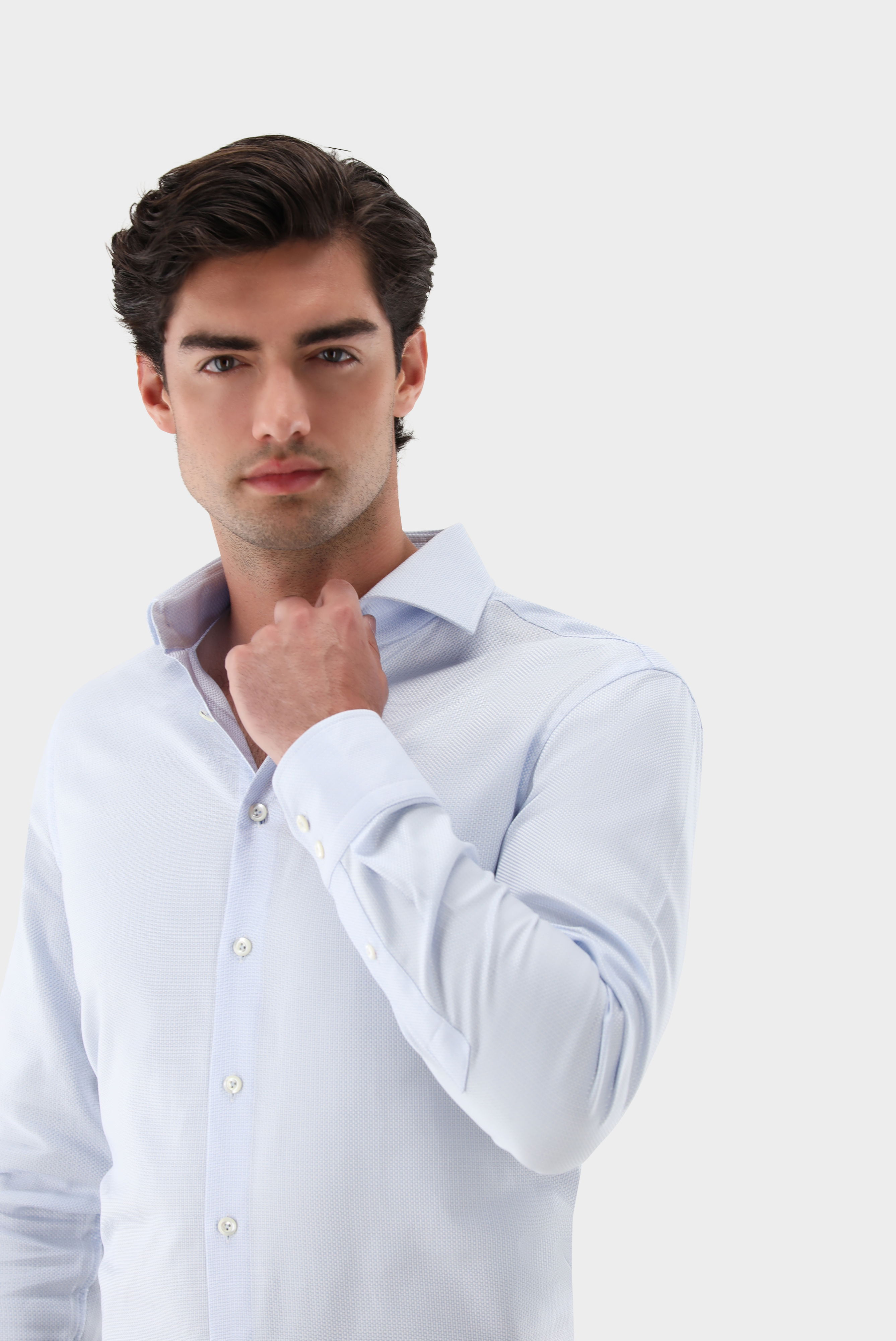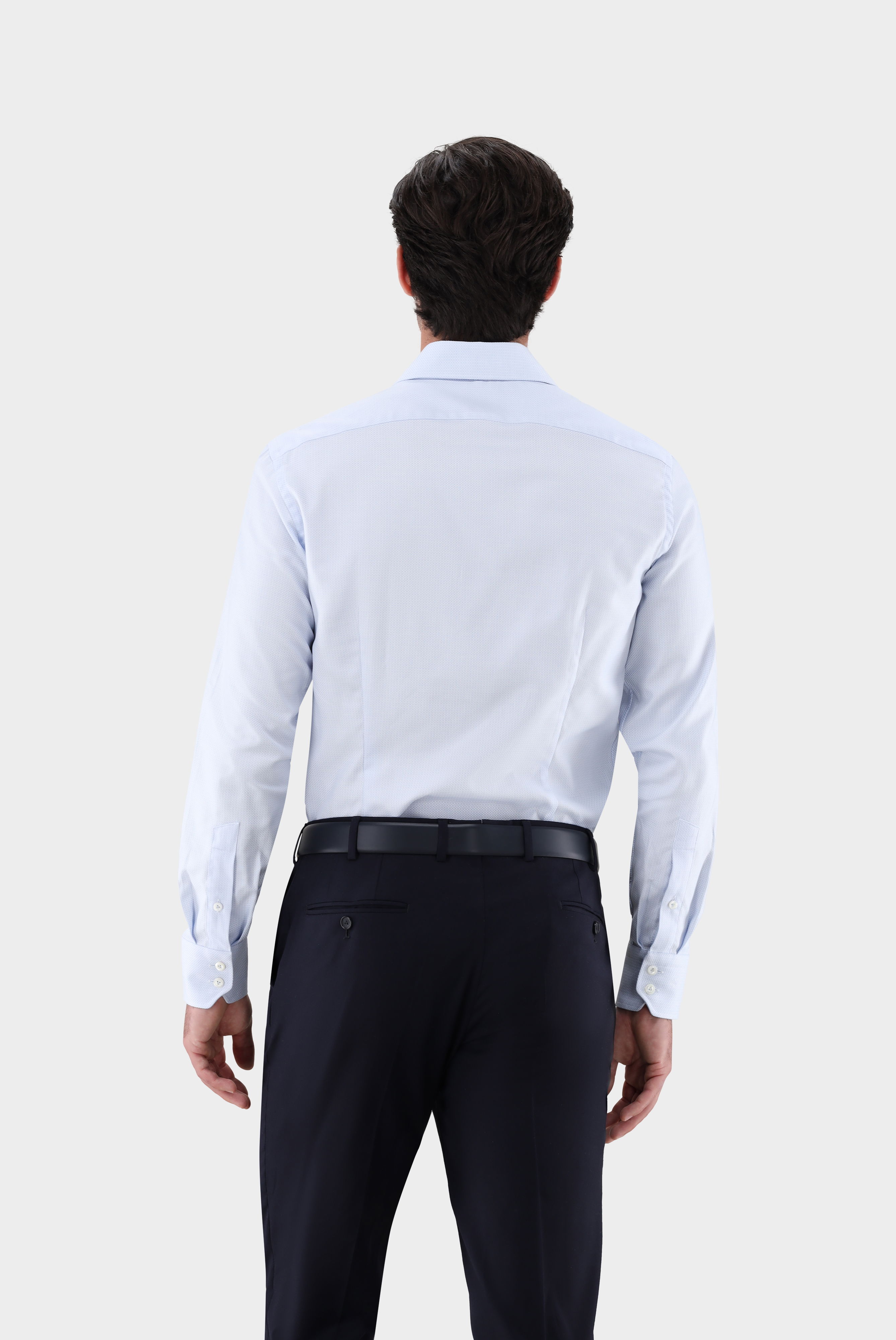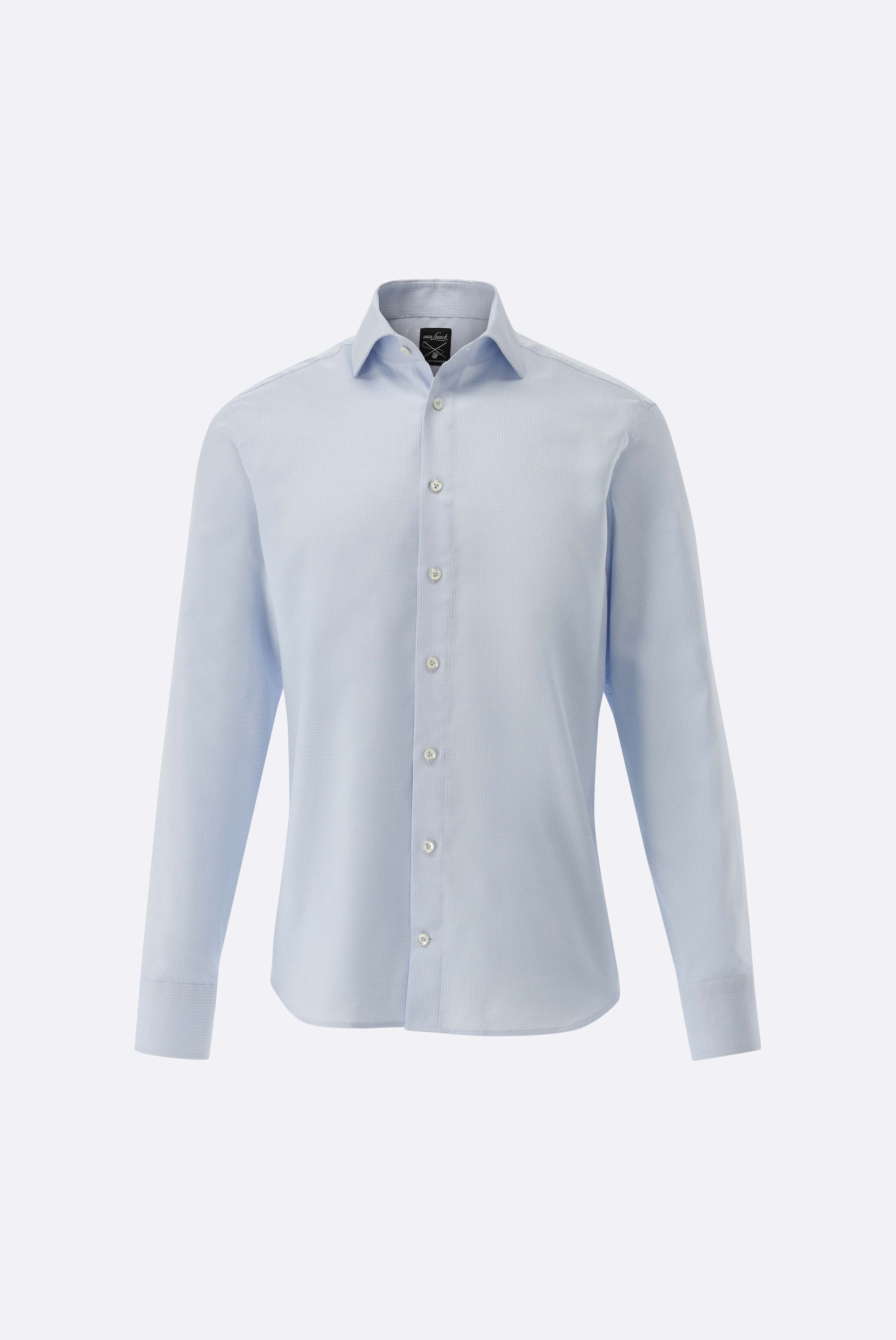 Zweilagiges City-Hemd aus reiner Baumwolle mit edler Korbgeflecht-Struktur für eine dezente Textur und hohen Tragekomfort. Die hochwertige Verarbeitung wird durch feine Perlmuttknöpfe stilvoll ergänzt. In moderner Tailor-Fit-Passform gefertigt, bietet das Hemd eine ausgewogene Silhouette zwischen Komfort und Figurbetonung. Ideal für Business-Looks oder gehobene Freizeit-Outfits – ein vielseitiges Kleidungsstück für anspruchsvolle Garderoben.