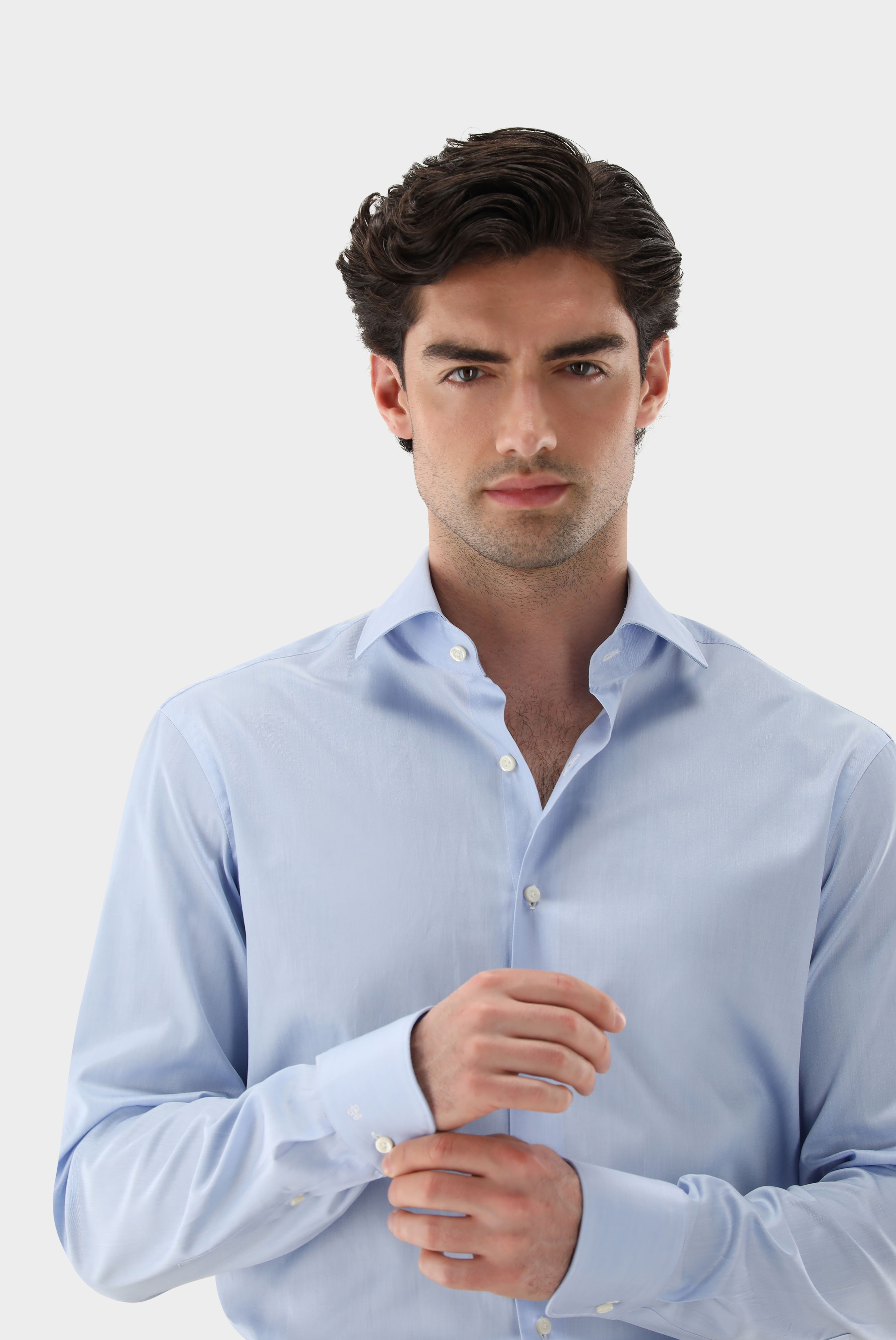 Look aus Hemd mit Extralangem Arm und mit Haifischkragen