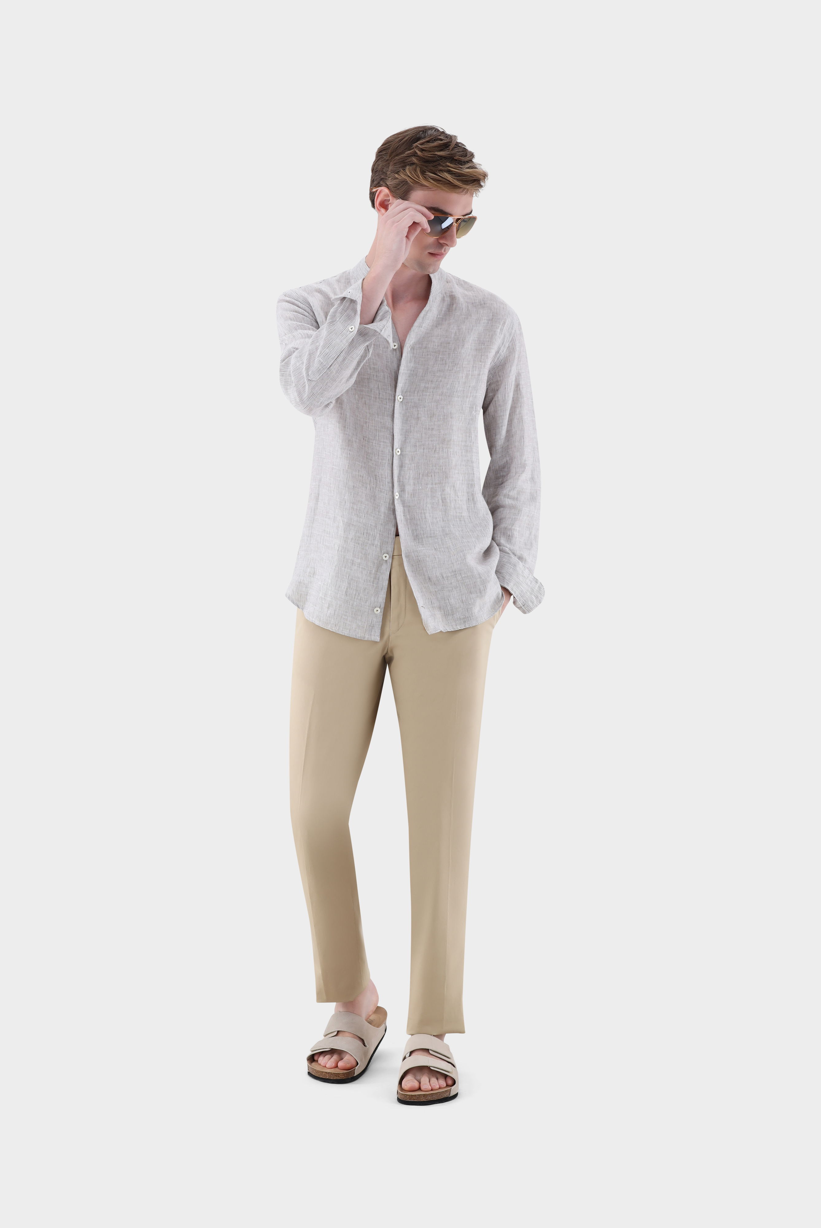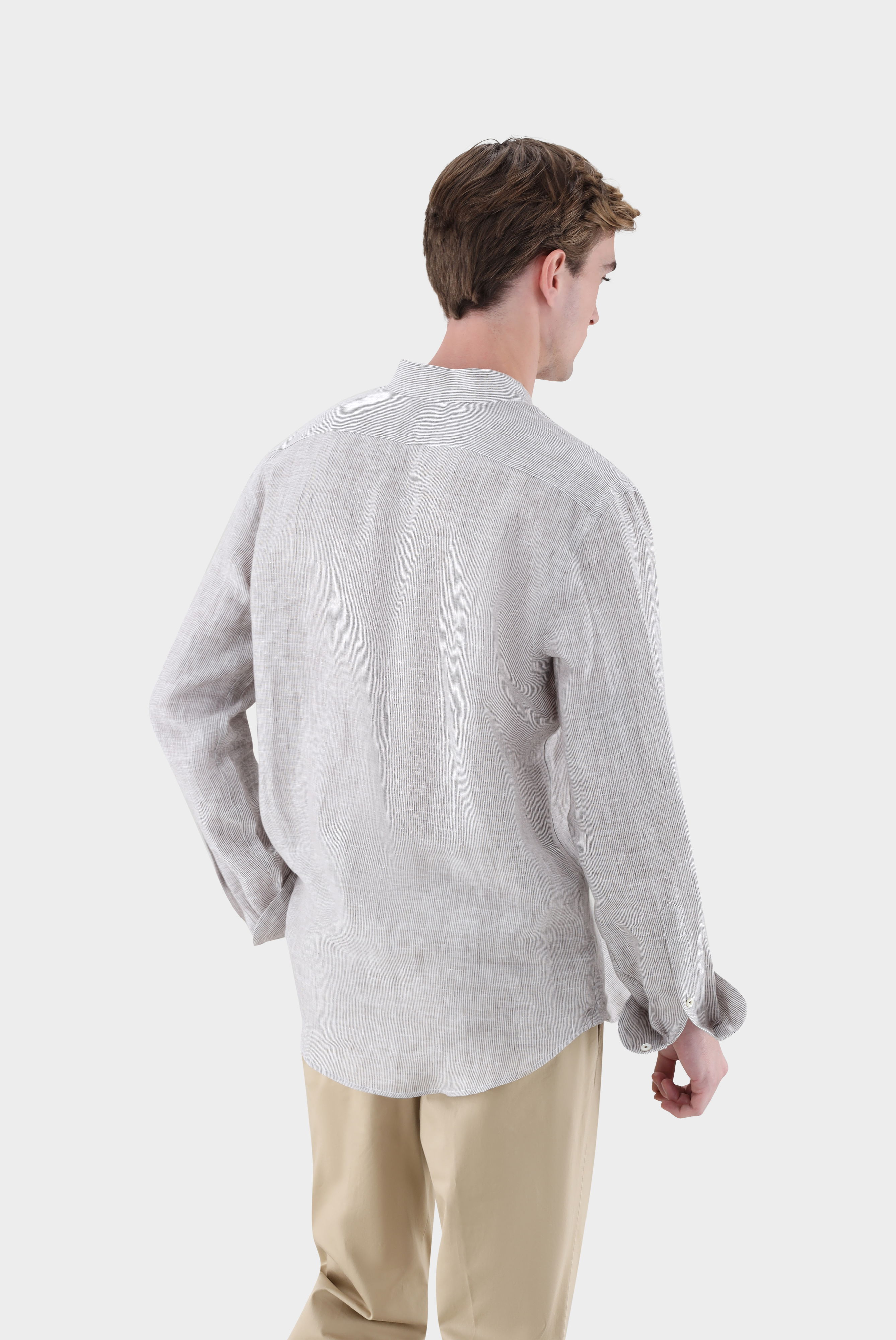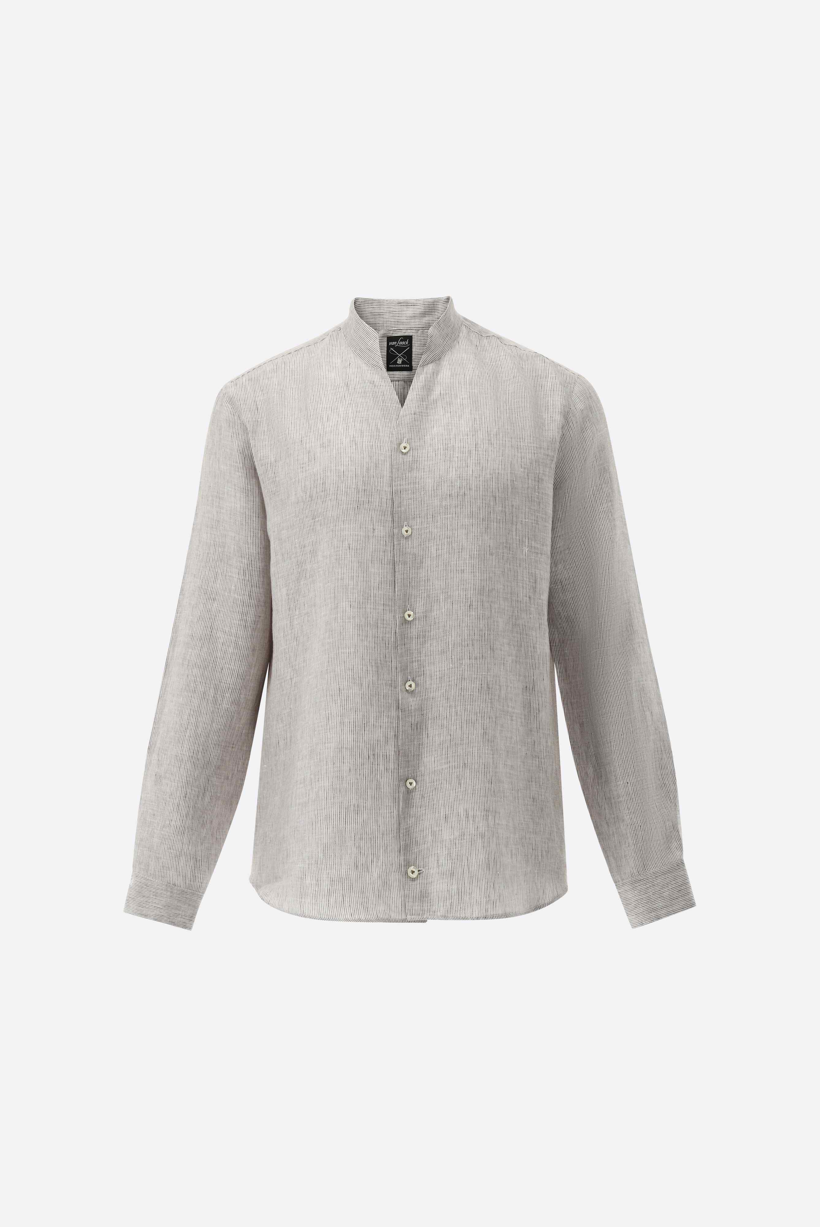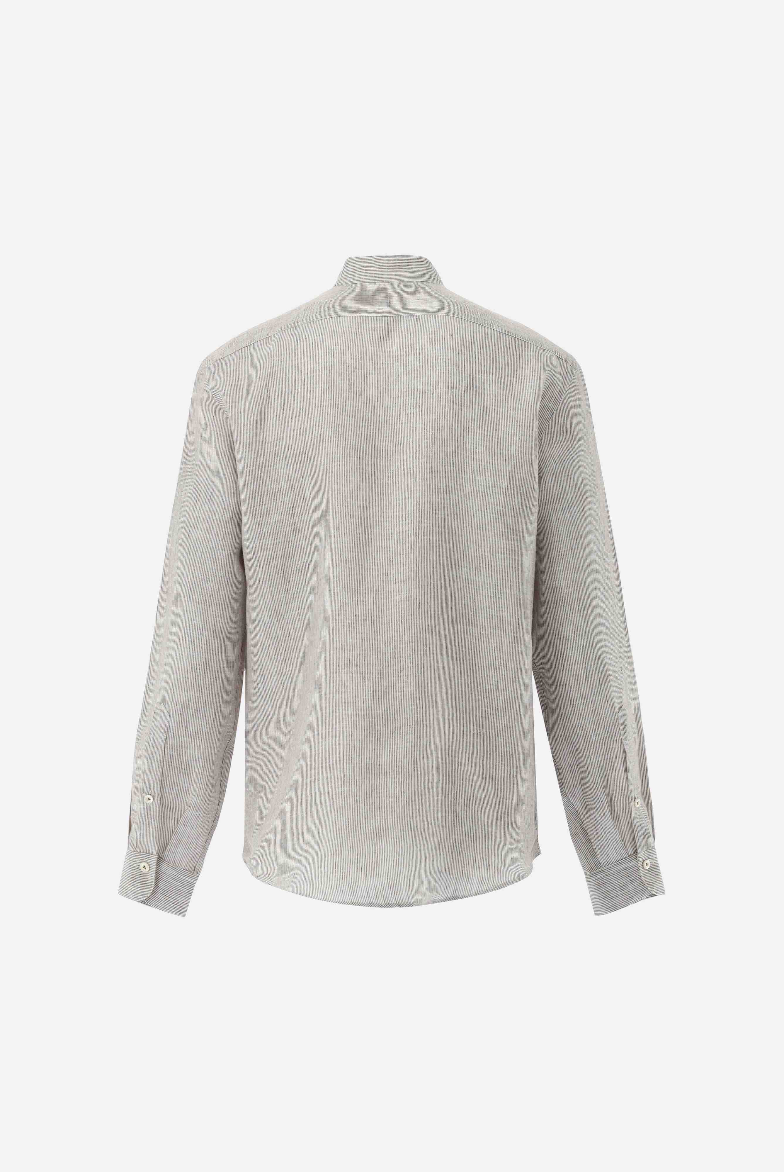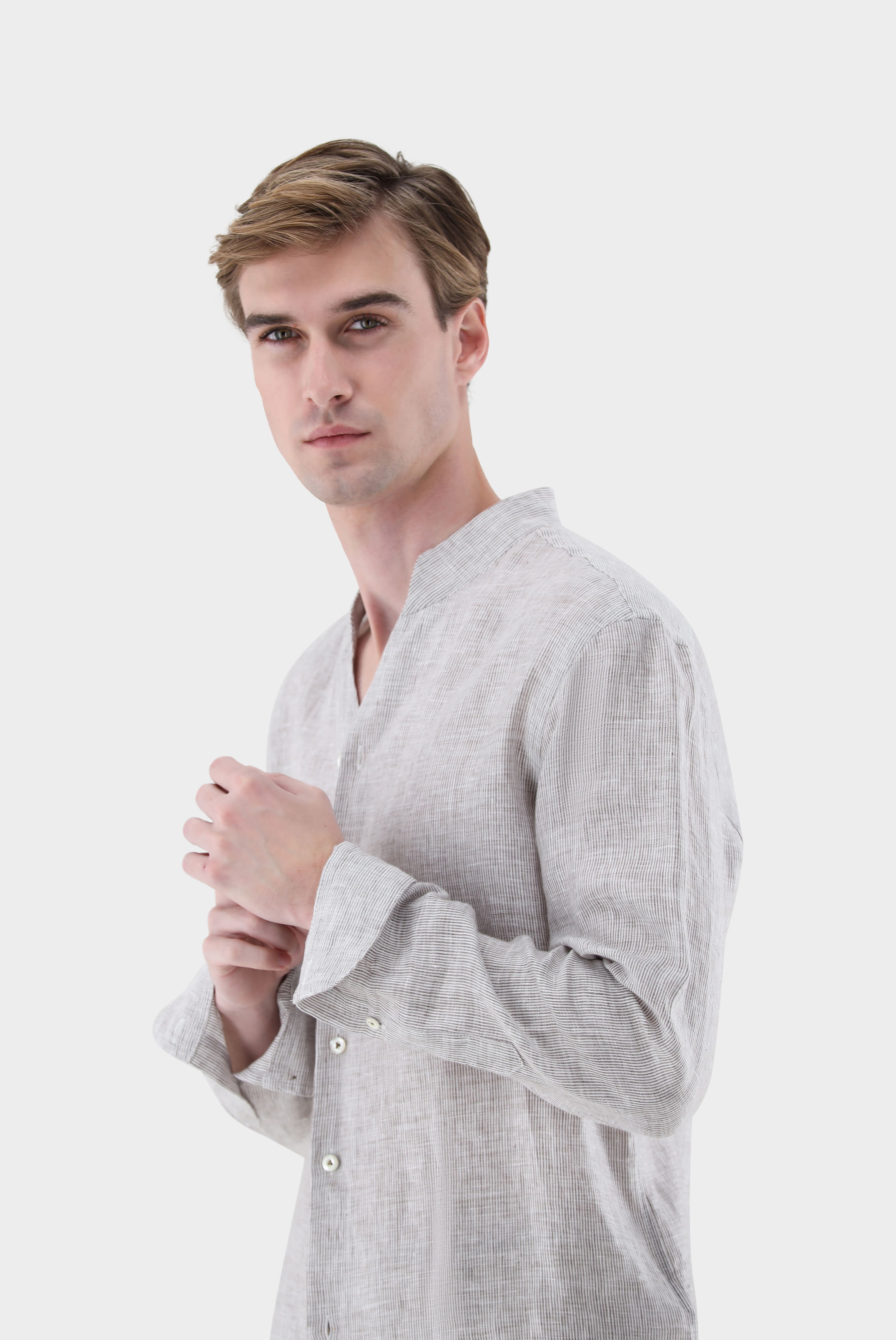 Dieses Hemd aus hochwertigem gestreiften Leinen-Gewebe verfügt über einen Stehkragen mit V-Ausschnitt, der für ein edles Design sorgt. Das weiche Leinen ist besonders luftdurchlässig und kühlend und hat so eine kühlende Funktion. Dies macht es zu einem optimalen Hemd für warme Sommertage.