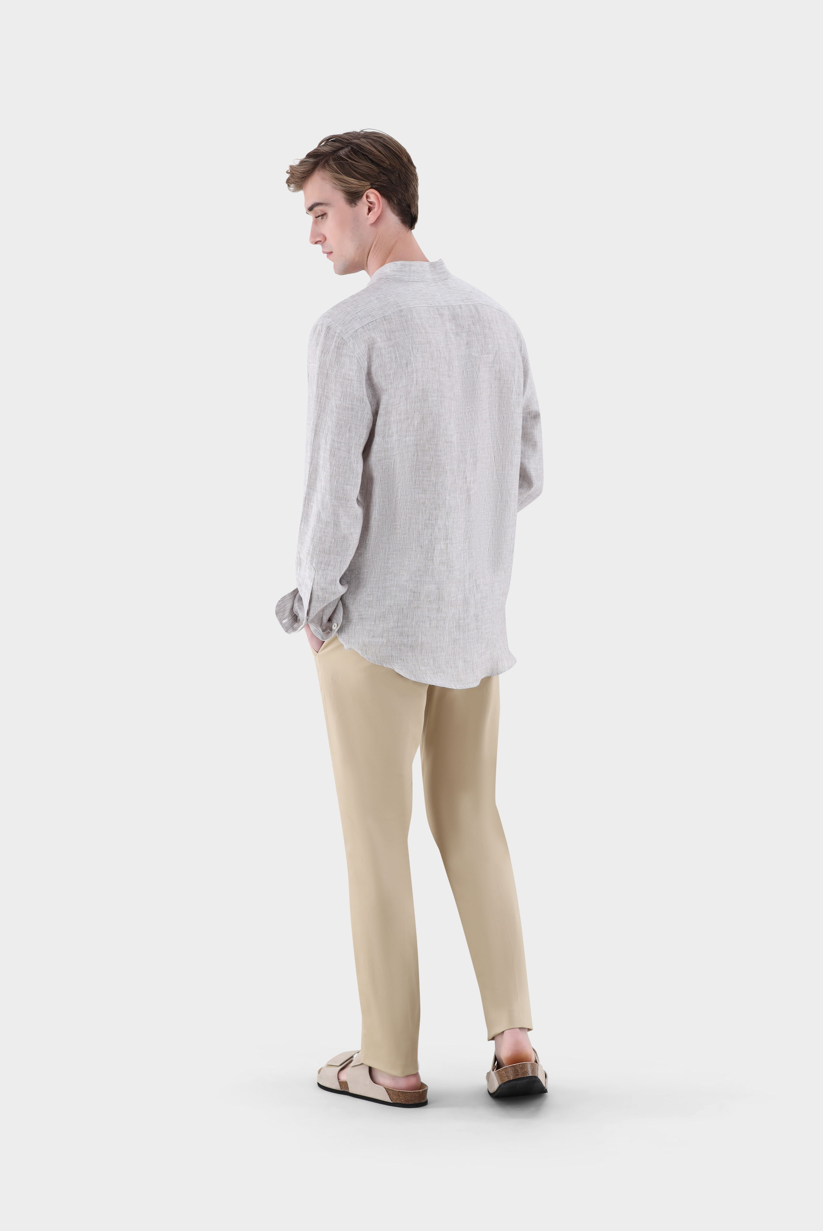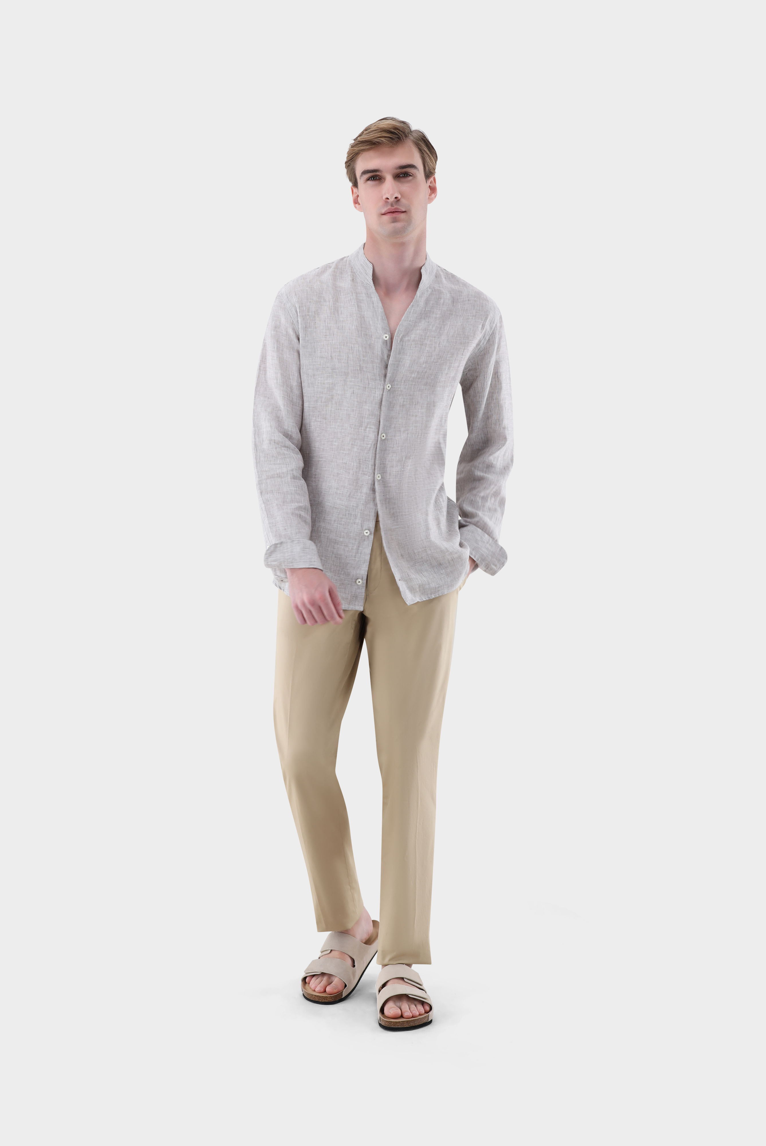Look aus Gestreiftes Leinenhemd mit Stehkragen
