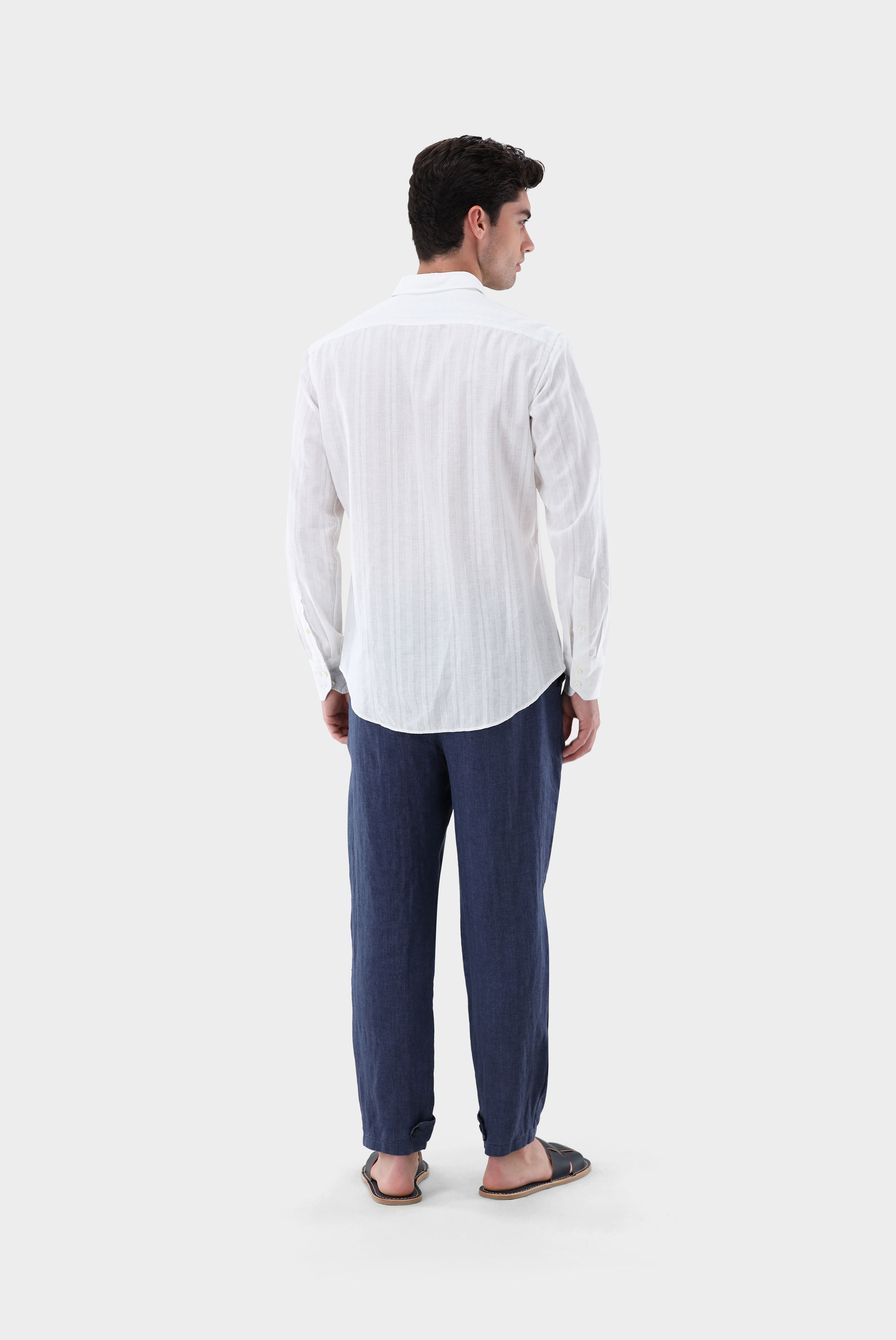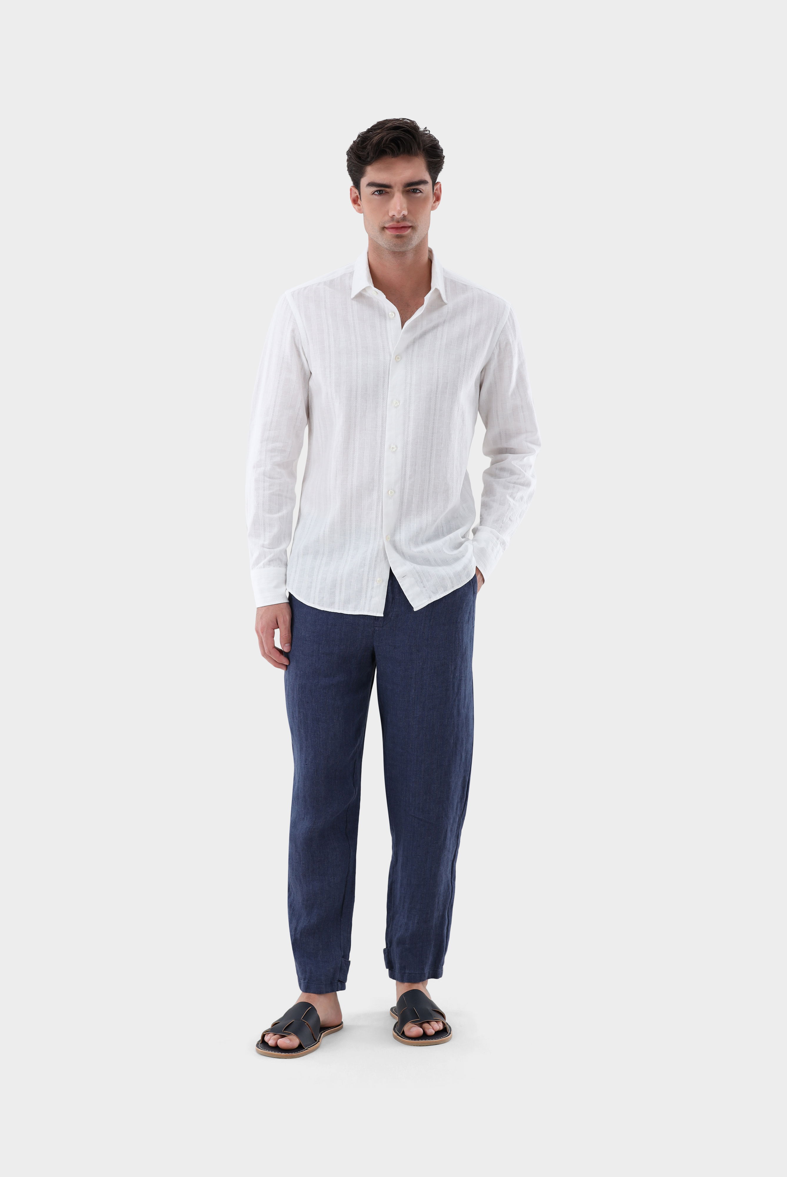 Look aus Hemd aus Baumwolle und Leinen mit Ajoure Streifen