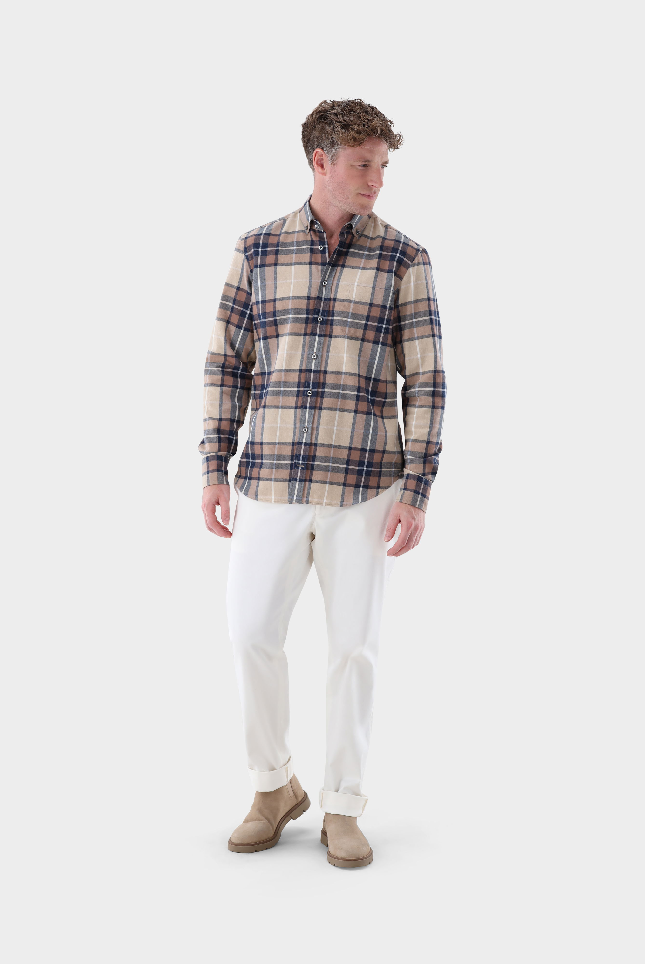 - Groß-kariertes Flanellhemd mit grobem Garnstich und Paspeldetail