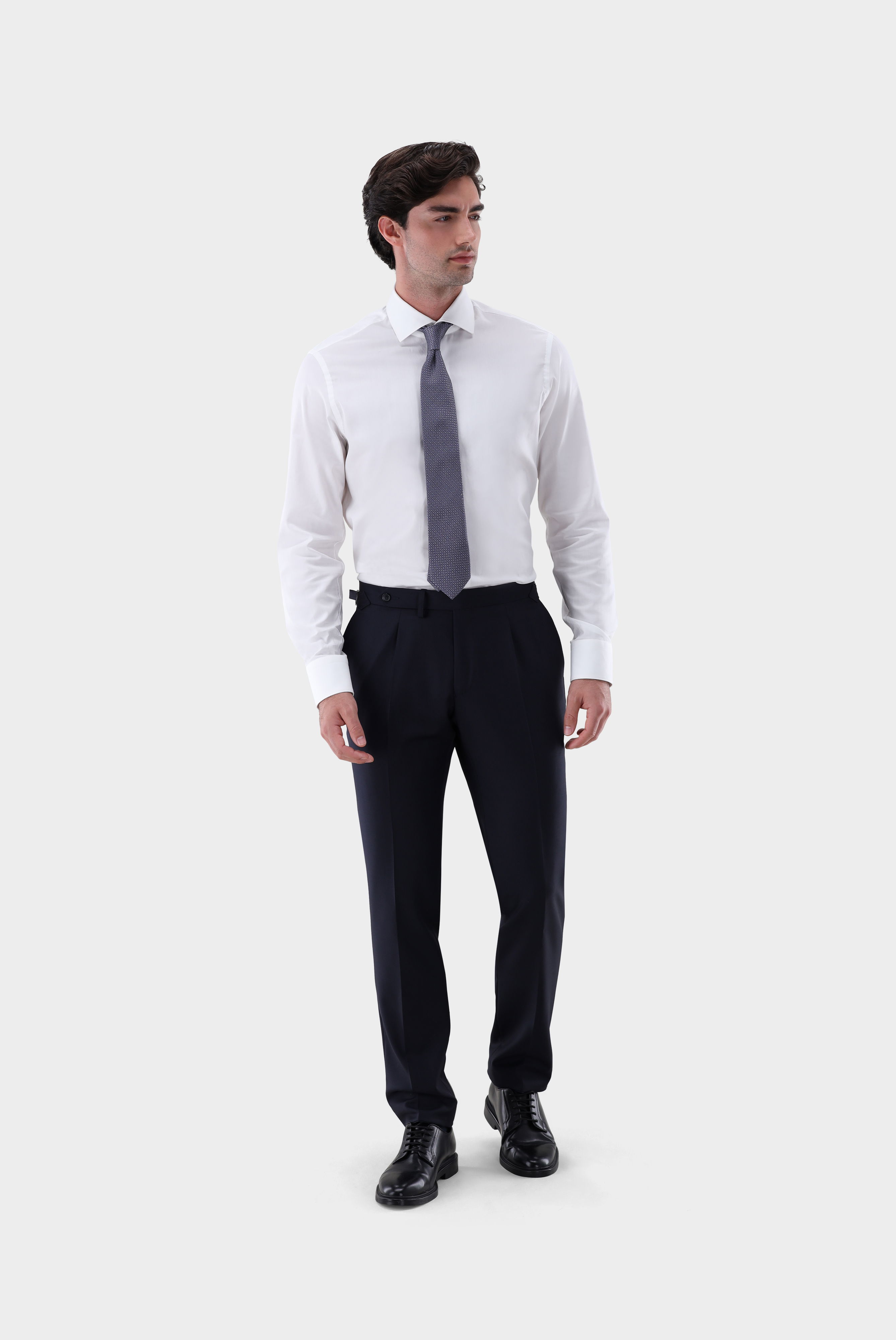 Look aus Hose aus Wolle mit Bundfalten und Slim Leg