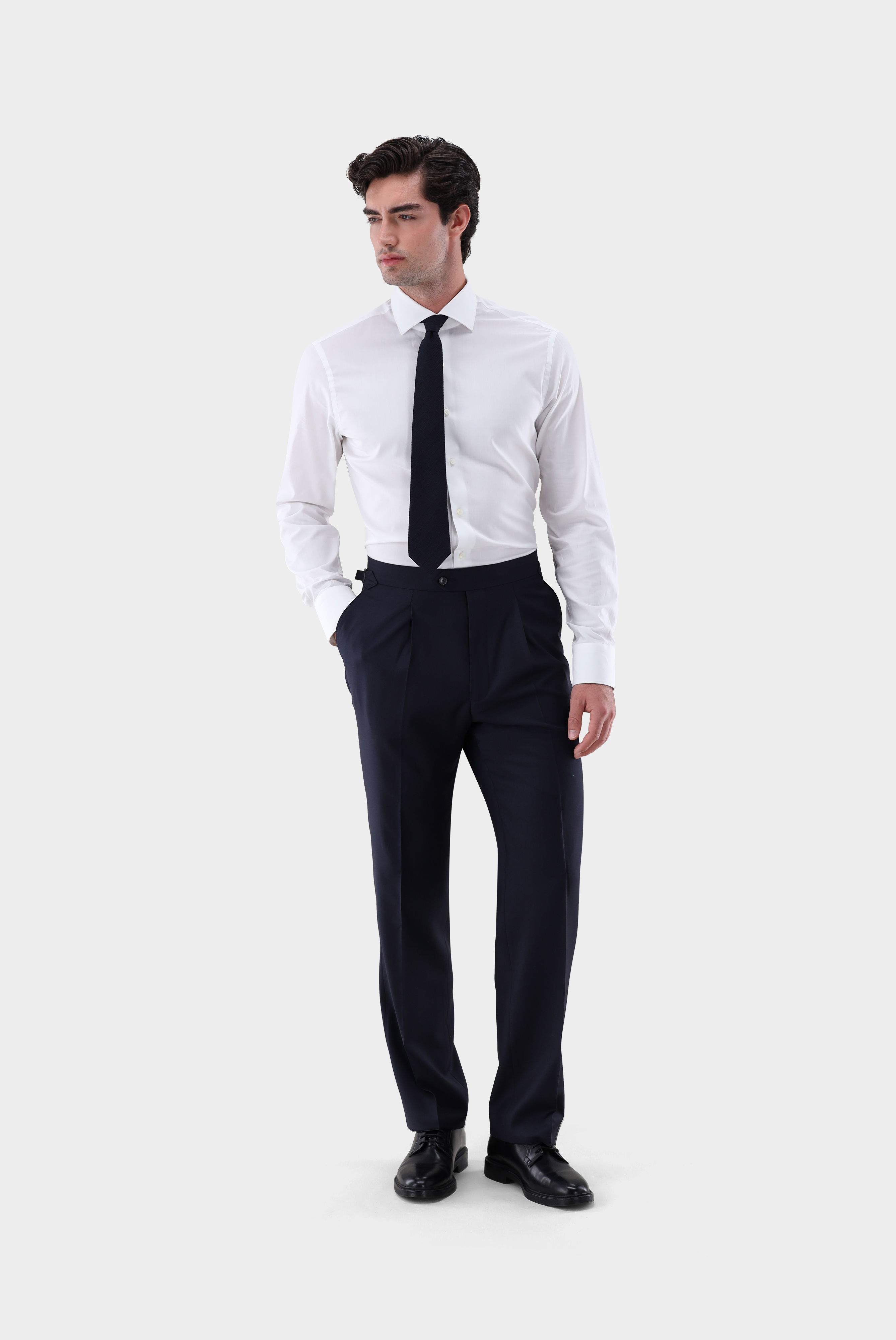 Diese Hose aus hochwertiger Wolle überzeugt durch eleganten Stil und exklusive Materialqualität. Der hohe Bund, die Bundfalten und Side Adjuster ermöglichen eine perfekte Passform und komfortables Tragen. Die weite Beinform (Wide Leg) sorgt für moderne Silhouette und Bewegungsfreiheit. Kombinierbar mit verschiedenen Sakko-Passformen, ist die Hose Teil eines flexiblen Baukastenanzugs. Passende Modelle lassen sich bequem über die Artikelnummer Z52030 finden – ideal für stilvolle Business- und Anzug-Looks.