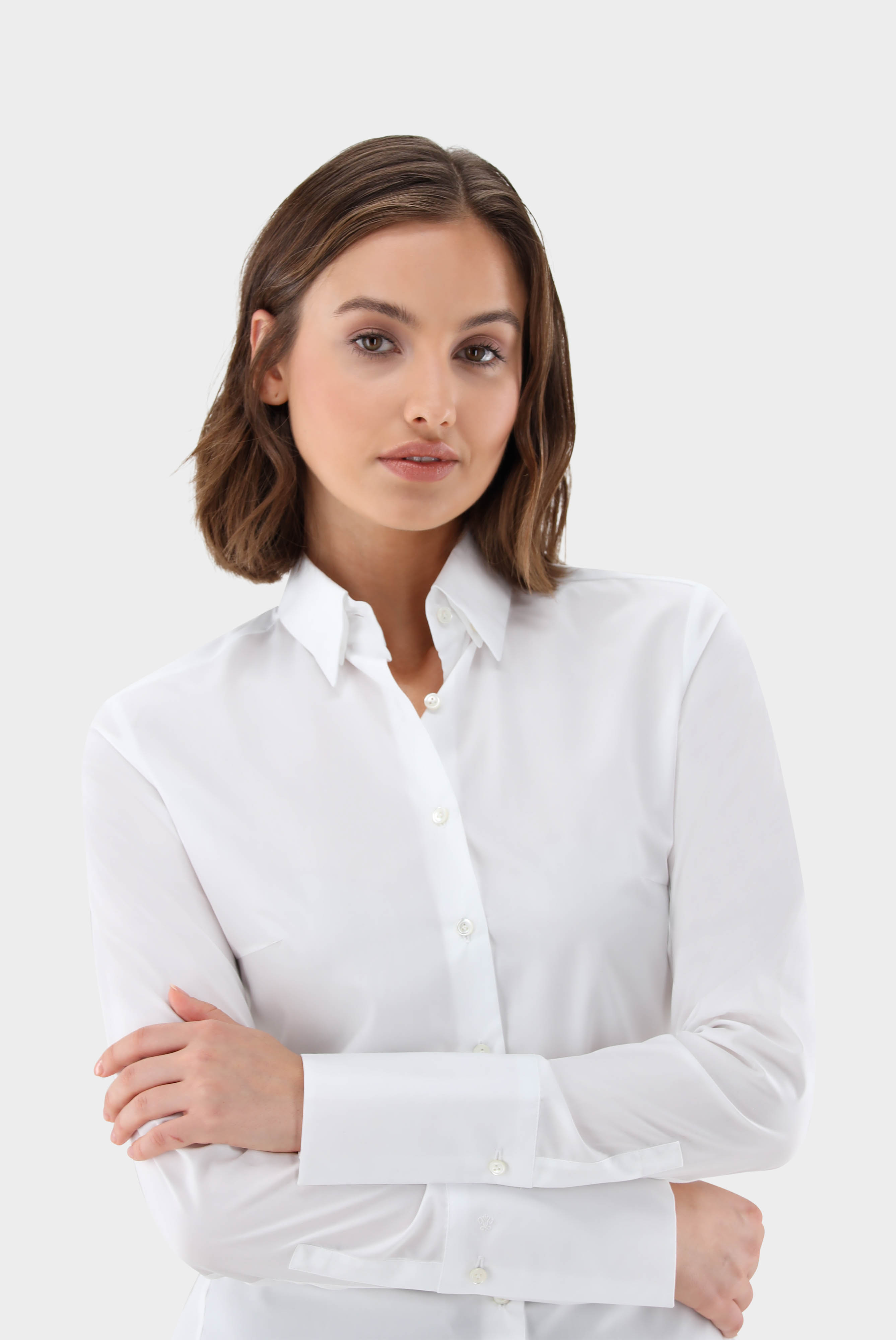 Look aus Hybridbluse mit Jerseyeinsatz Slim Fit