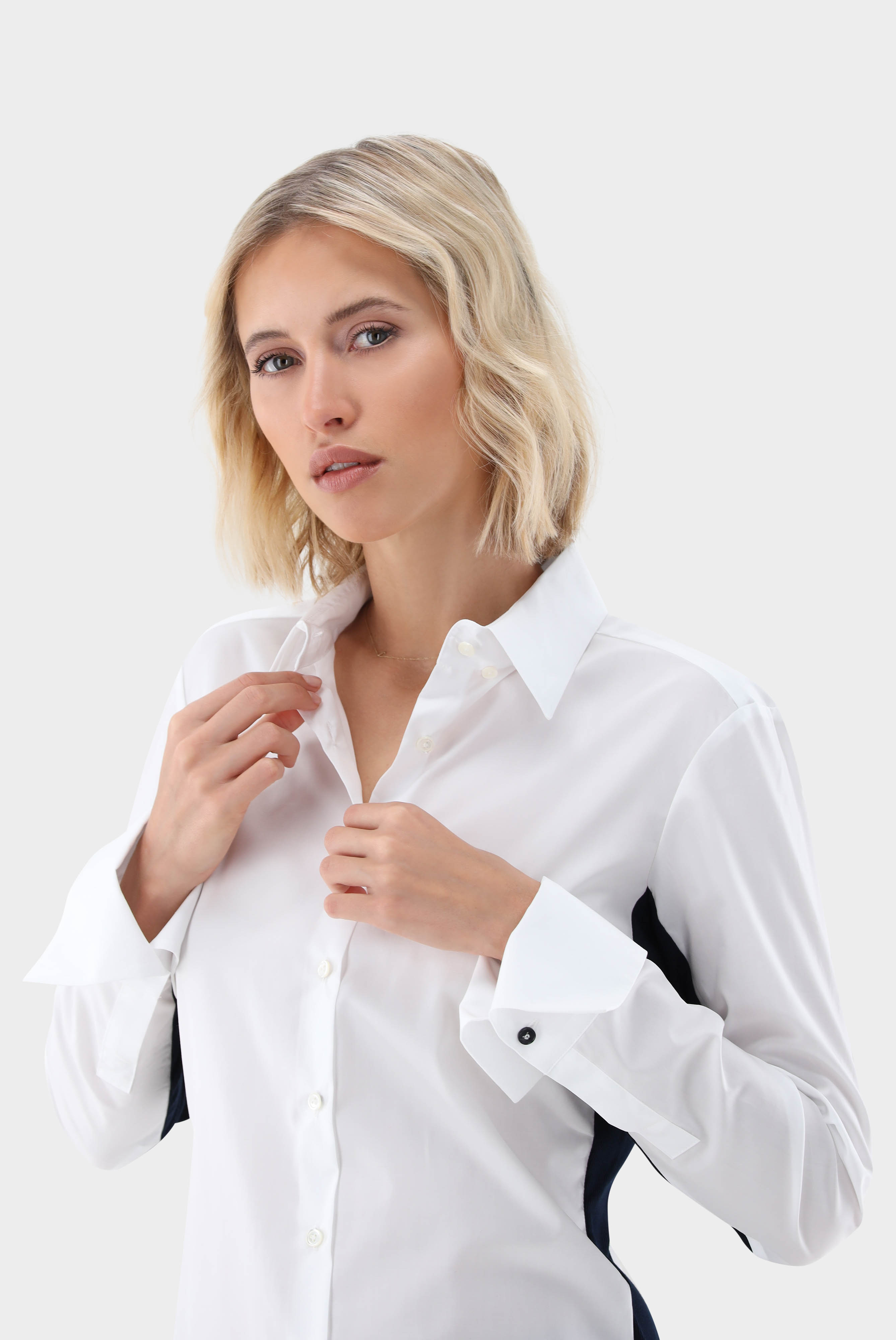 Look aus Hybridbluse mit Jerseyeinsatz Slim Fit