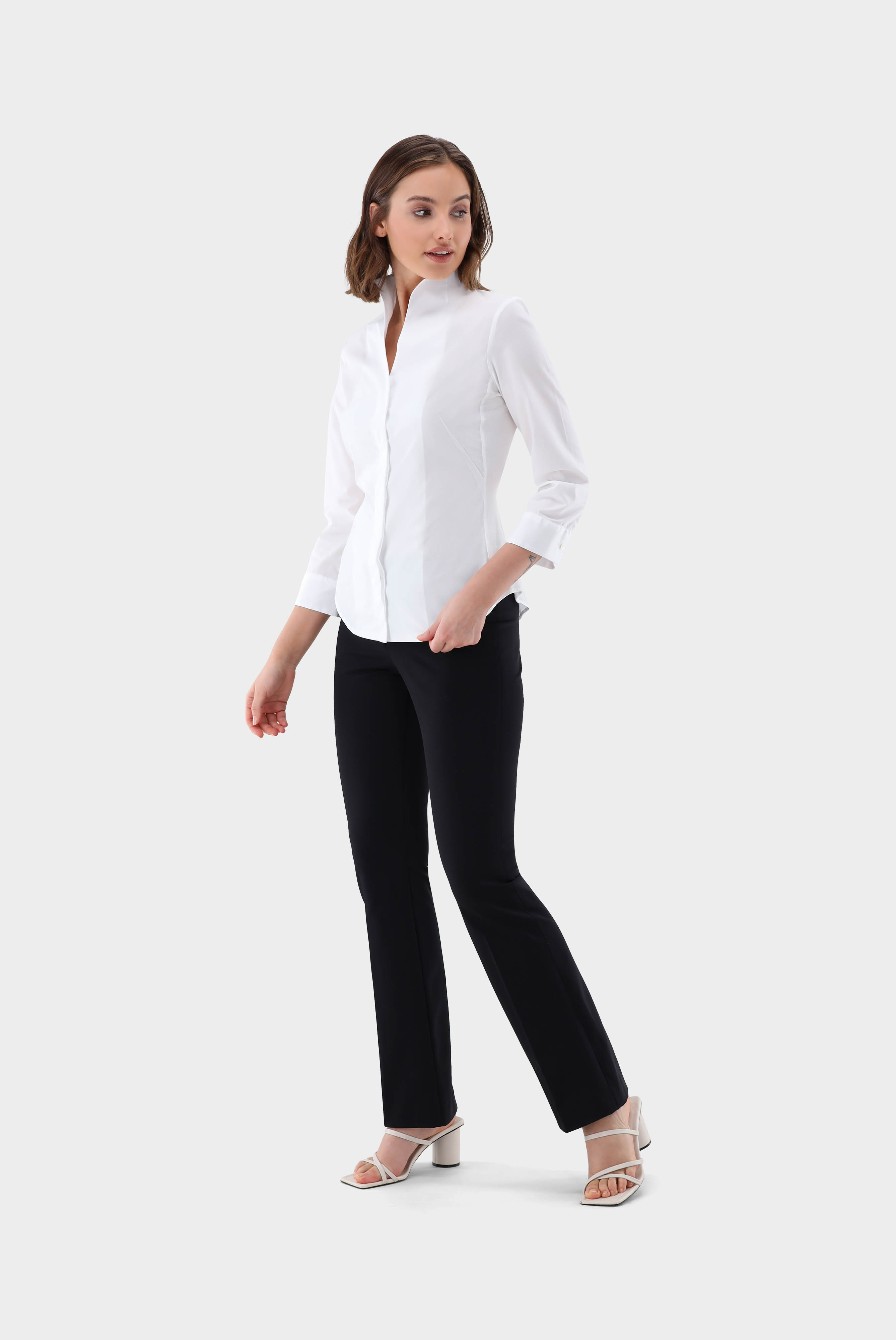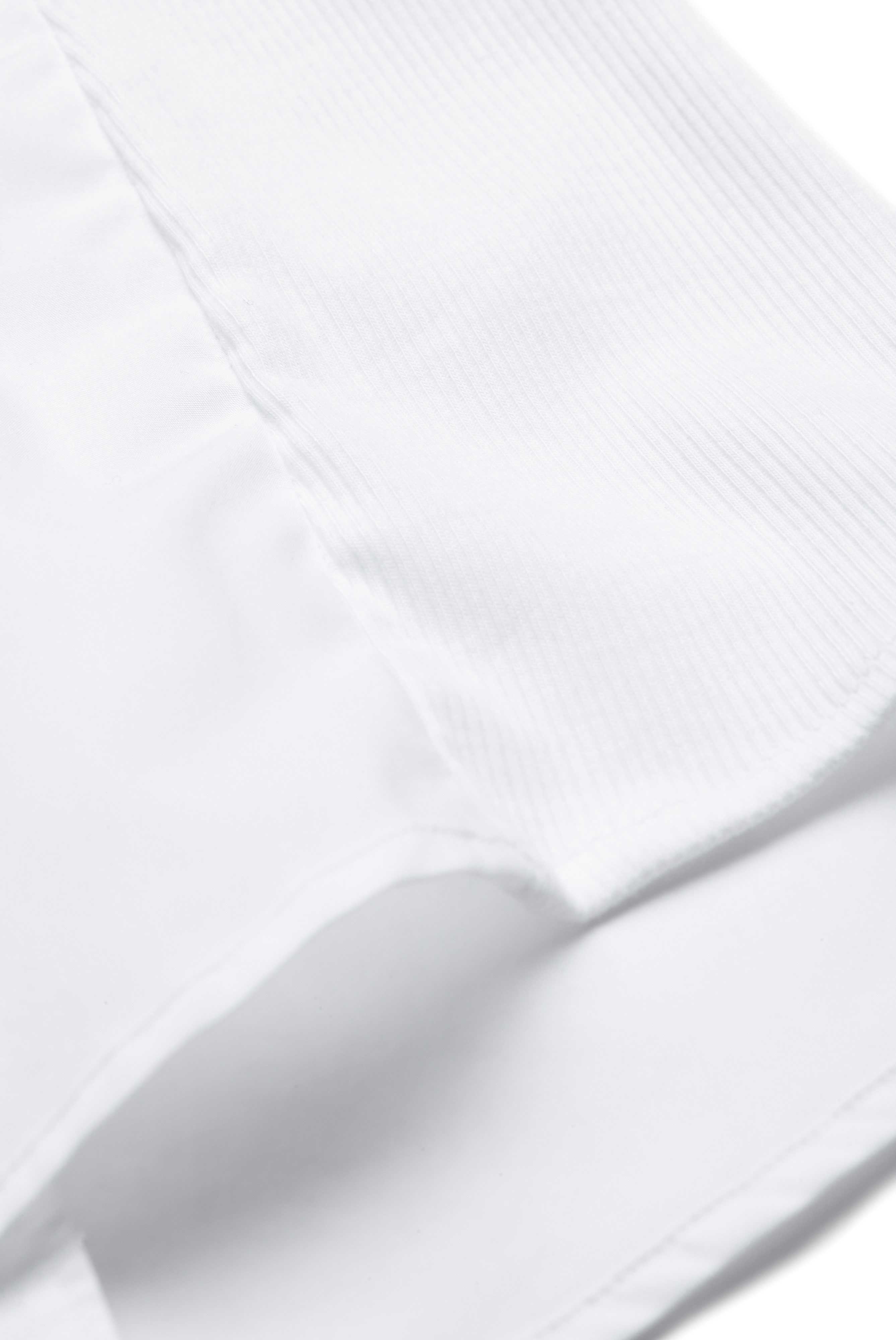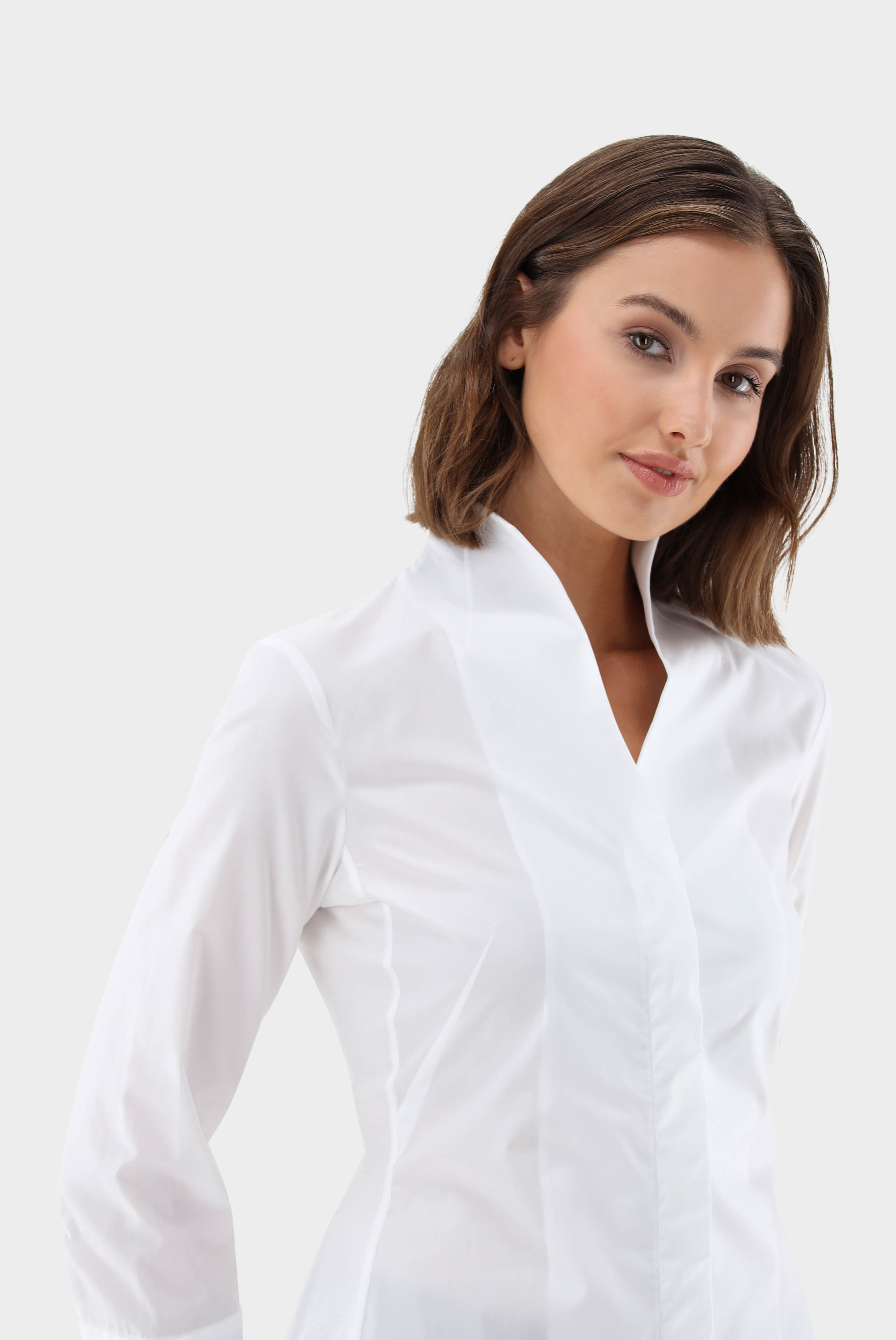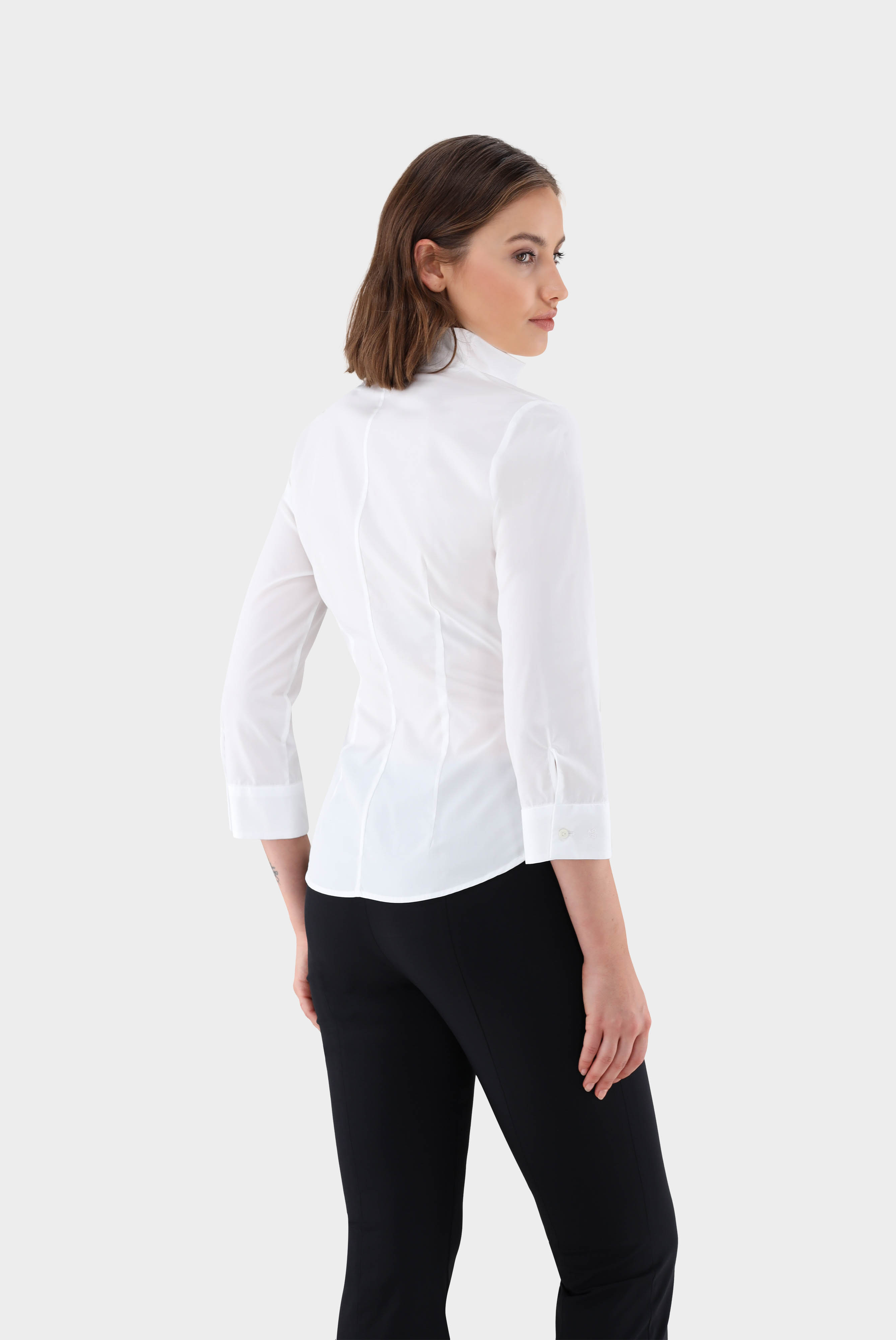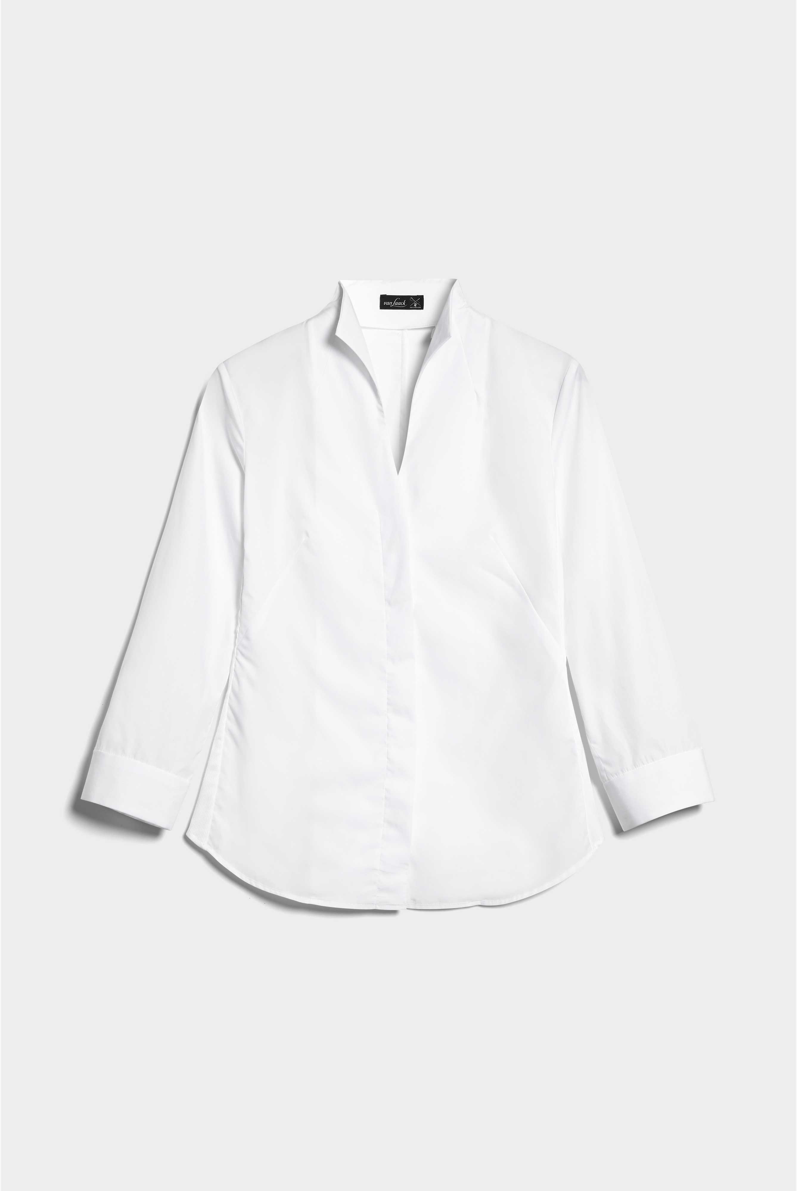 Look aus Hybridbluse mit seitlichem Jerseyeinsatz
