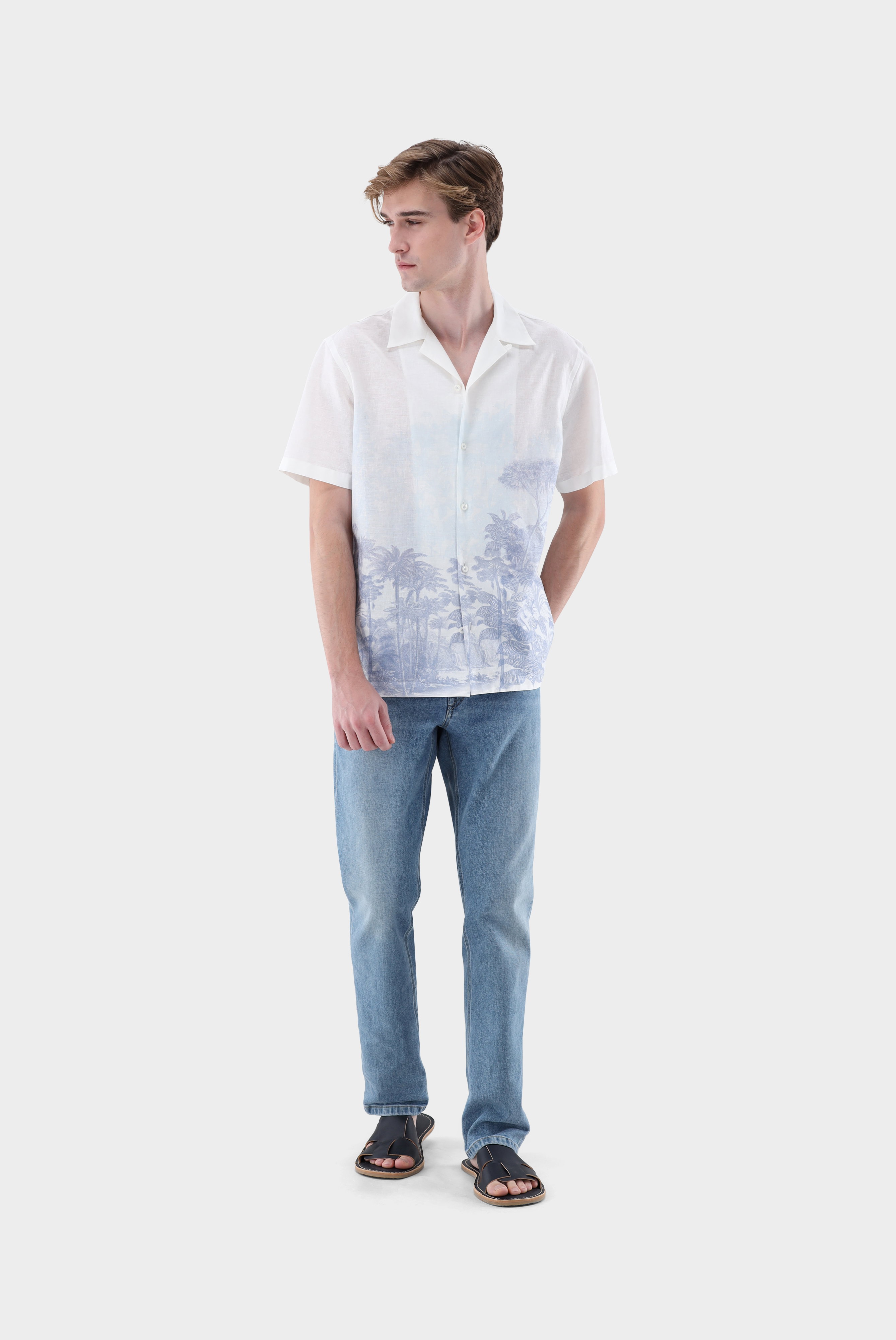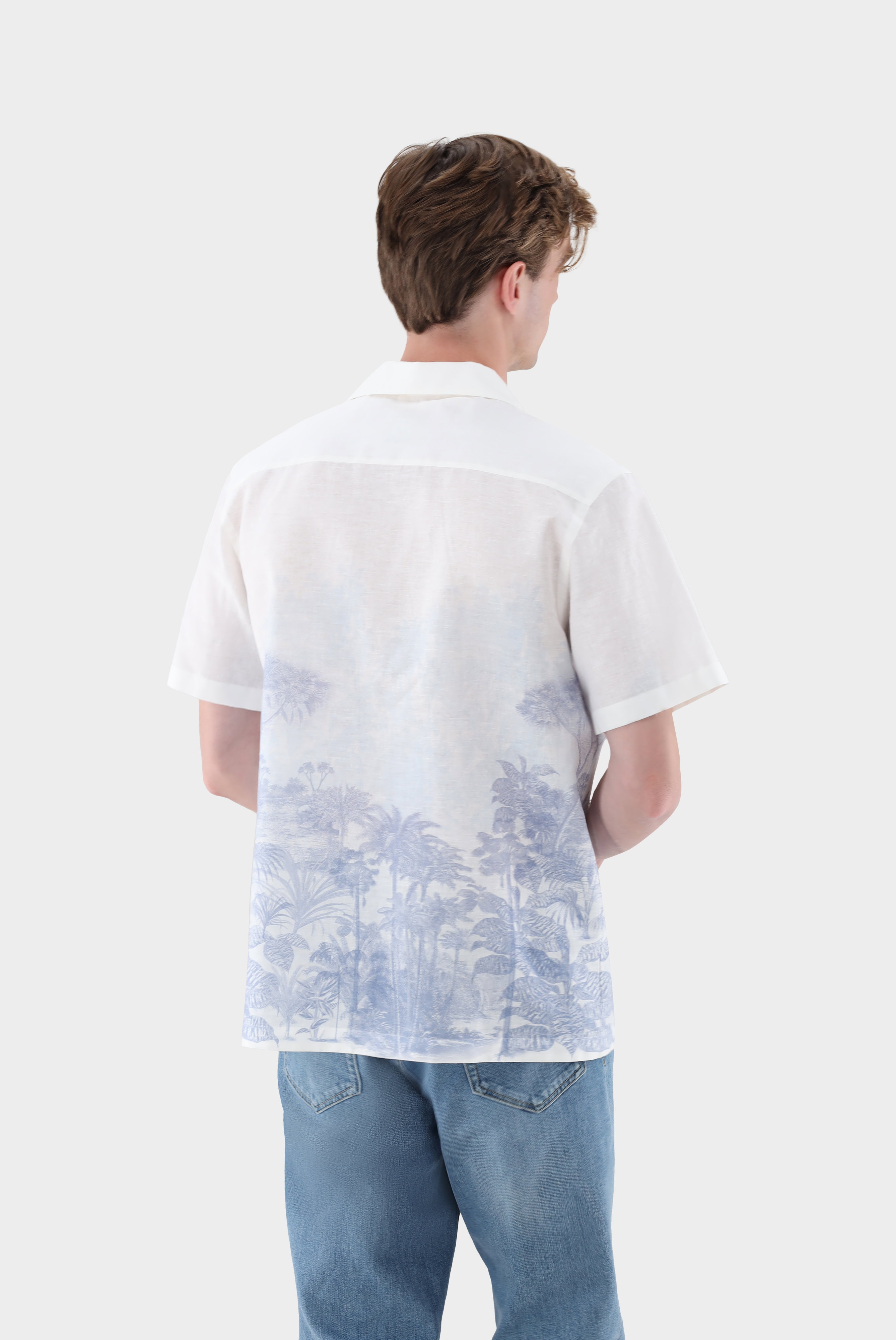 Look aus Kurzarm Bowlinghemd aus Leinen mit Druck
