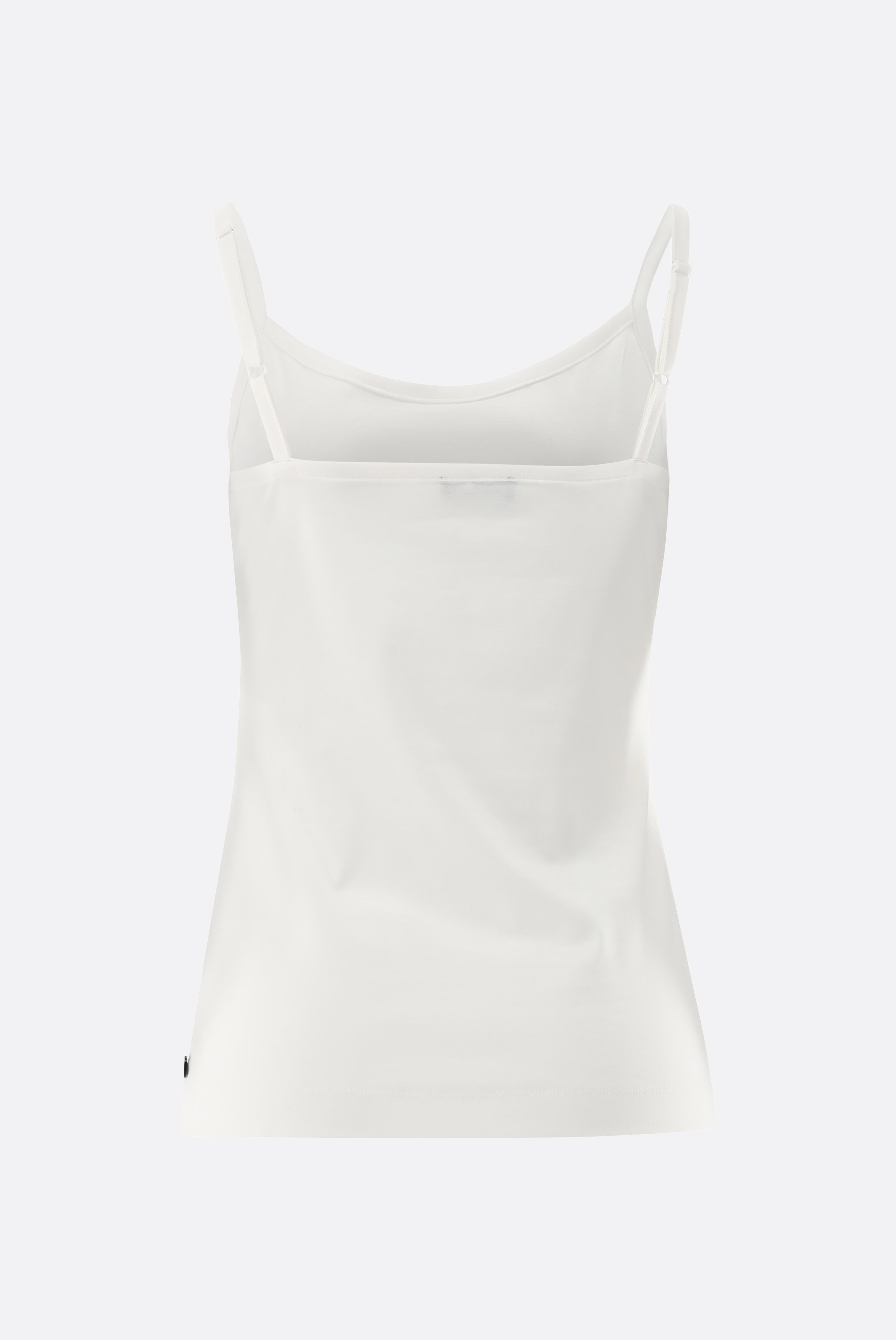 Dieses stilvolle Spaghetti-Träger-Top aus hochwertigem Schweizer Baumwolljersey überzeugt durch seinen schlichten, eleganten Look und die exzellente Passform. Der weiche und elastische Stoff sorgt für höchsten Tragekomfort, während die verstellbaren Träger eine individuelle Anpassung ermöglichen. Je nach Kombination passt das Top perfekt zu casual, festlichen oder auch geschäftlichen Anlässen.