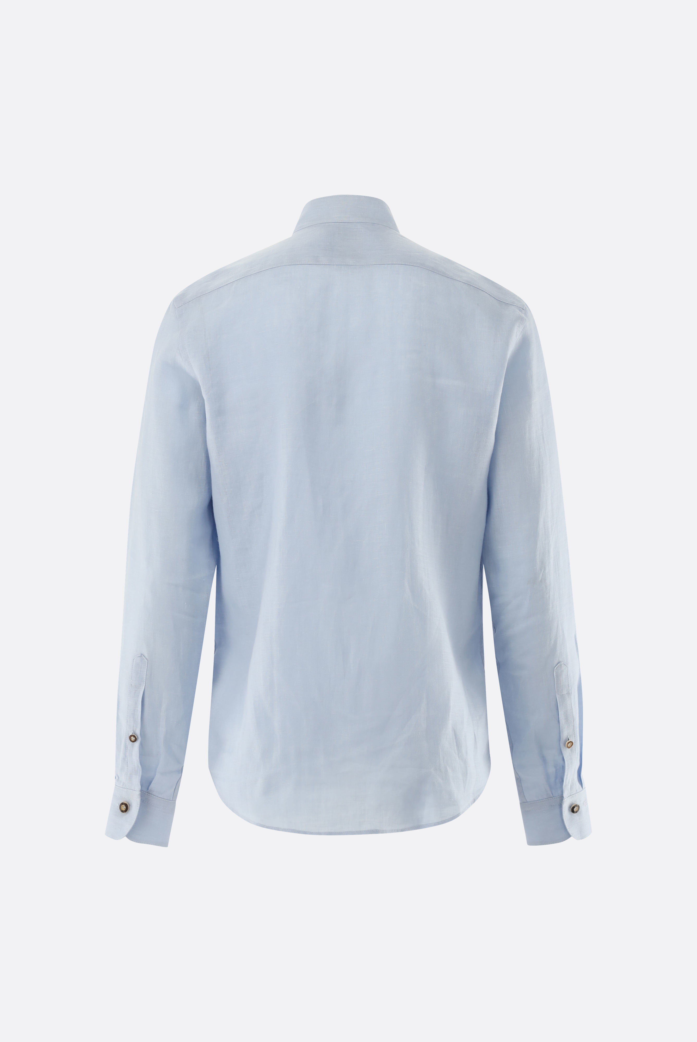 Das Hemd mit Stehkragen und V-Kragen aus Leinen ist besonder luftdurchlässig. Das Hemd verfügt über einen Stehkragen mit V-Ausschnitt, klassische Manschetten mit dem charakteristischen Van-Laack-Schwung, eine taillierte Silhouette, spezielle van-Laack-Eckstiche und eine glatte Knopfleiste. Die hochwertige Hemdenverarbeitung umfasst Innennähte, Seitennähte, handgeknüpfte Nähte und Hornknöpfe. Ideal für einen Smart-Casual-Look oder zu einem Trachtenoutfit.