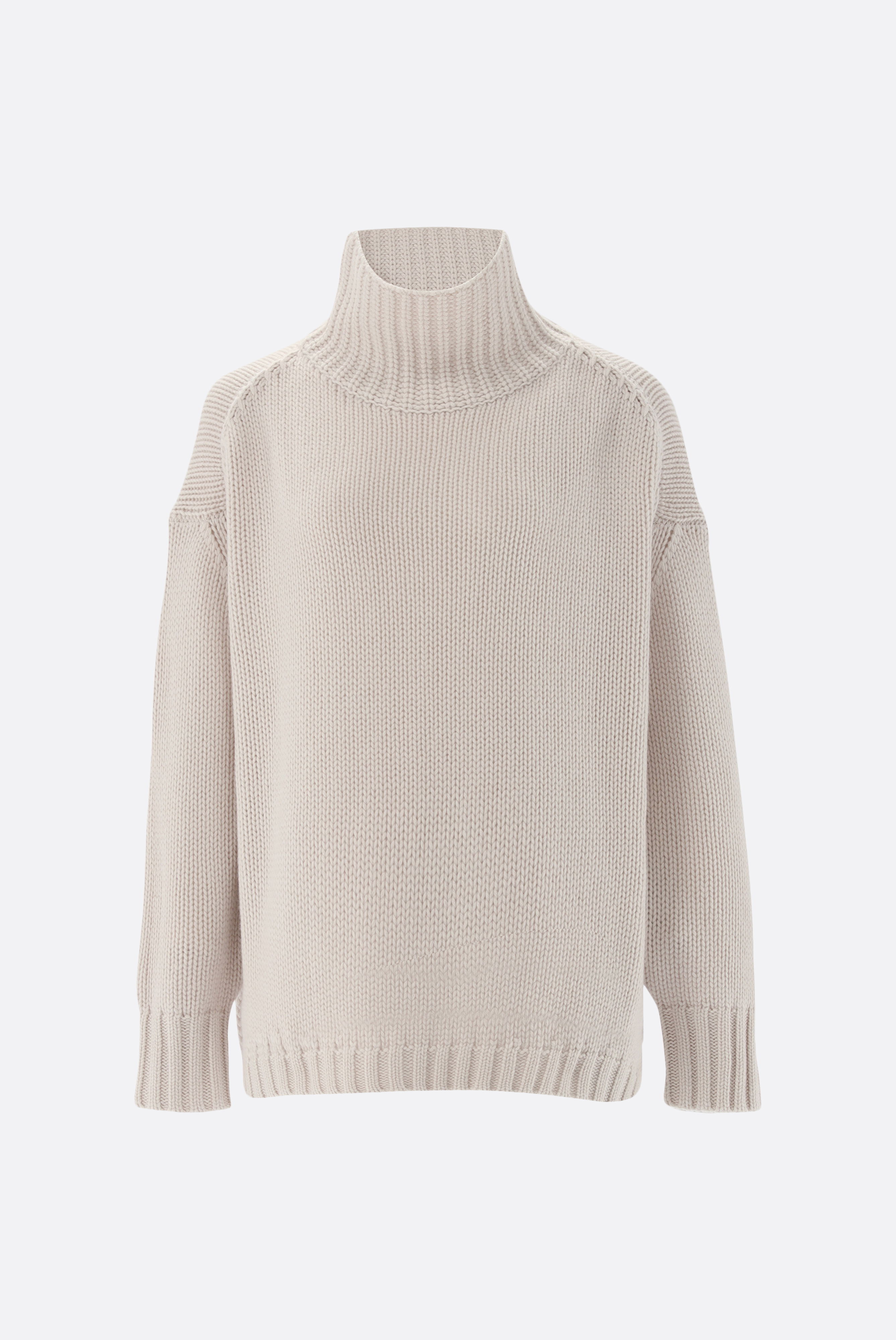 Oversize-Rollkragenpullover mit Wolle und Kaschmir für luxuriöse Wärme und weichen Tragekomfort. Das gestrickte Design mit langen Ärmeln, seitlichen Schlitzen und verlängertem Rücken bietet eine moderne, fließende Silhouette. Die einfarbige Ausführung ermöglicht vielseitige Kombinationen, während der hohe Kragen zusätzlichen Schutz vor Kälte bietet. Ideal für stilvolle Layering-Looks in der kühlen Jahreszeit.