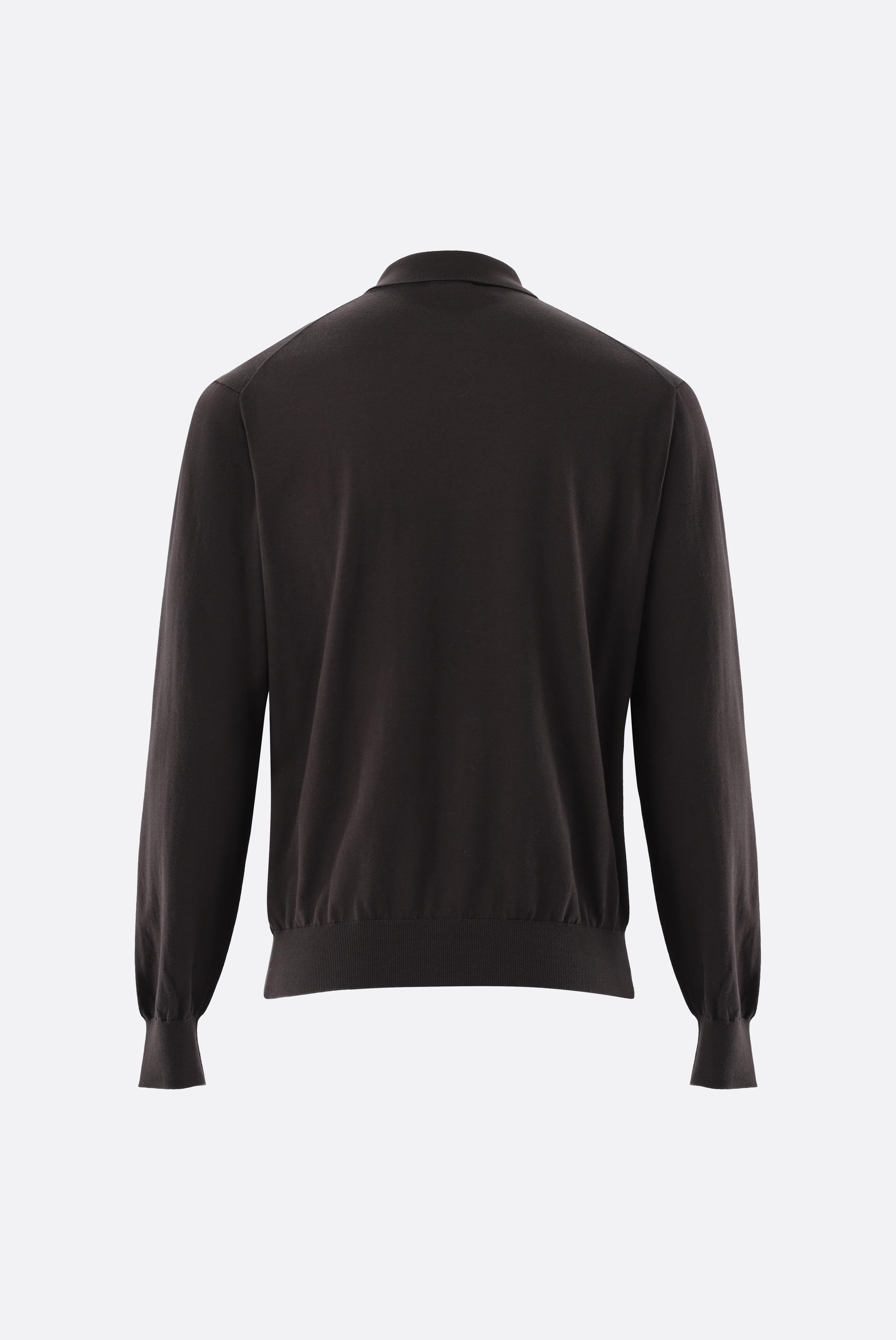 Look aus Langarm Strick-Poloshirt mit Baumwolle und Seide