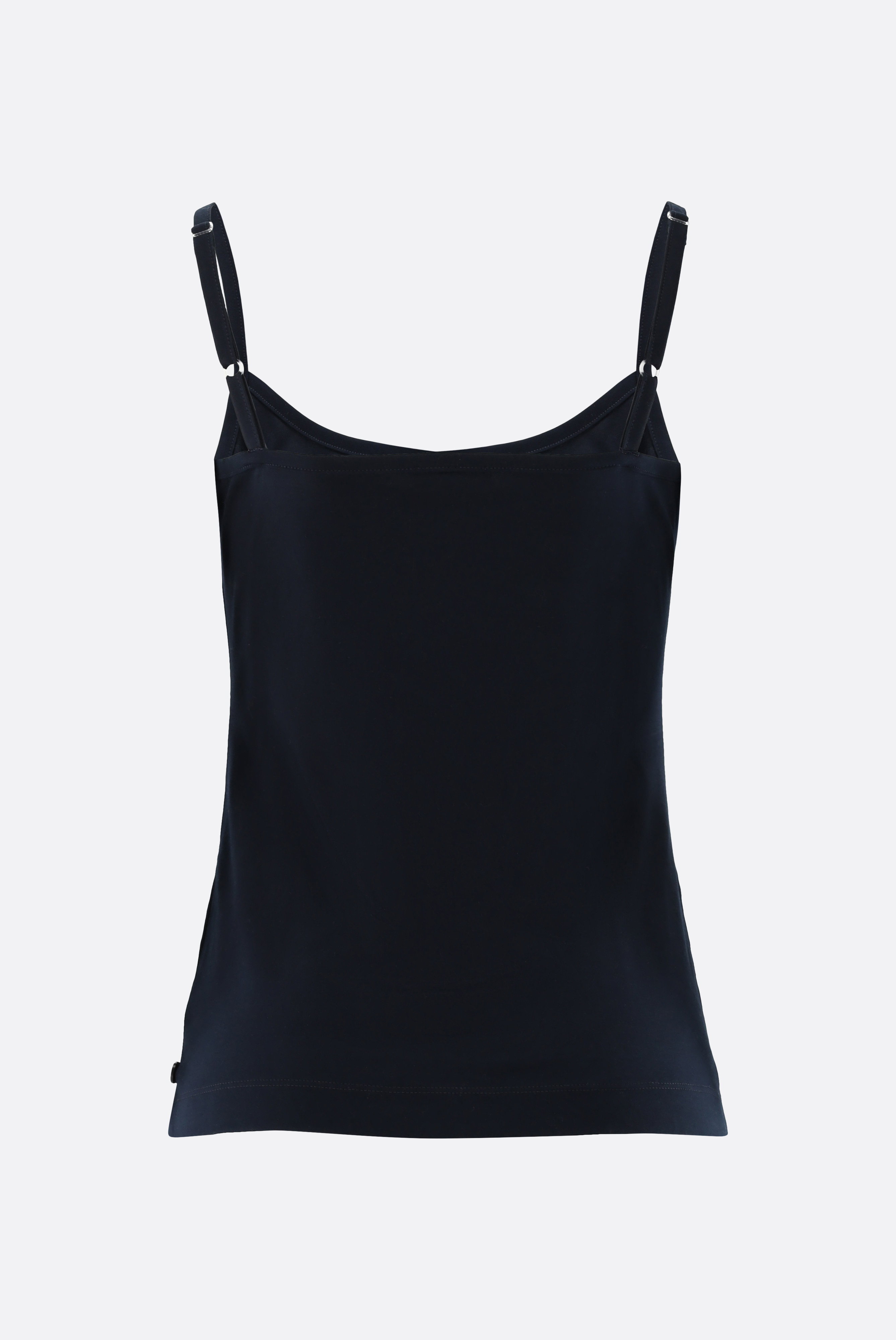Dieses stilvolle Spaghetti-Träger-Top aus hochwertigem Schweizer Baumwolljersey überzeugt durch seinen schlichten, eleganten Look und die exzellente Passform. Der weiche und elastische Stoff sorgt für höchsten Tragekomfort, während die verstellbaren Träger eine individuelle Anpassung ermöglichen. Je nach Kombination passt das Top perfekt zu casual, festlichen oder auch geschäftlichen Anlässen.