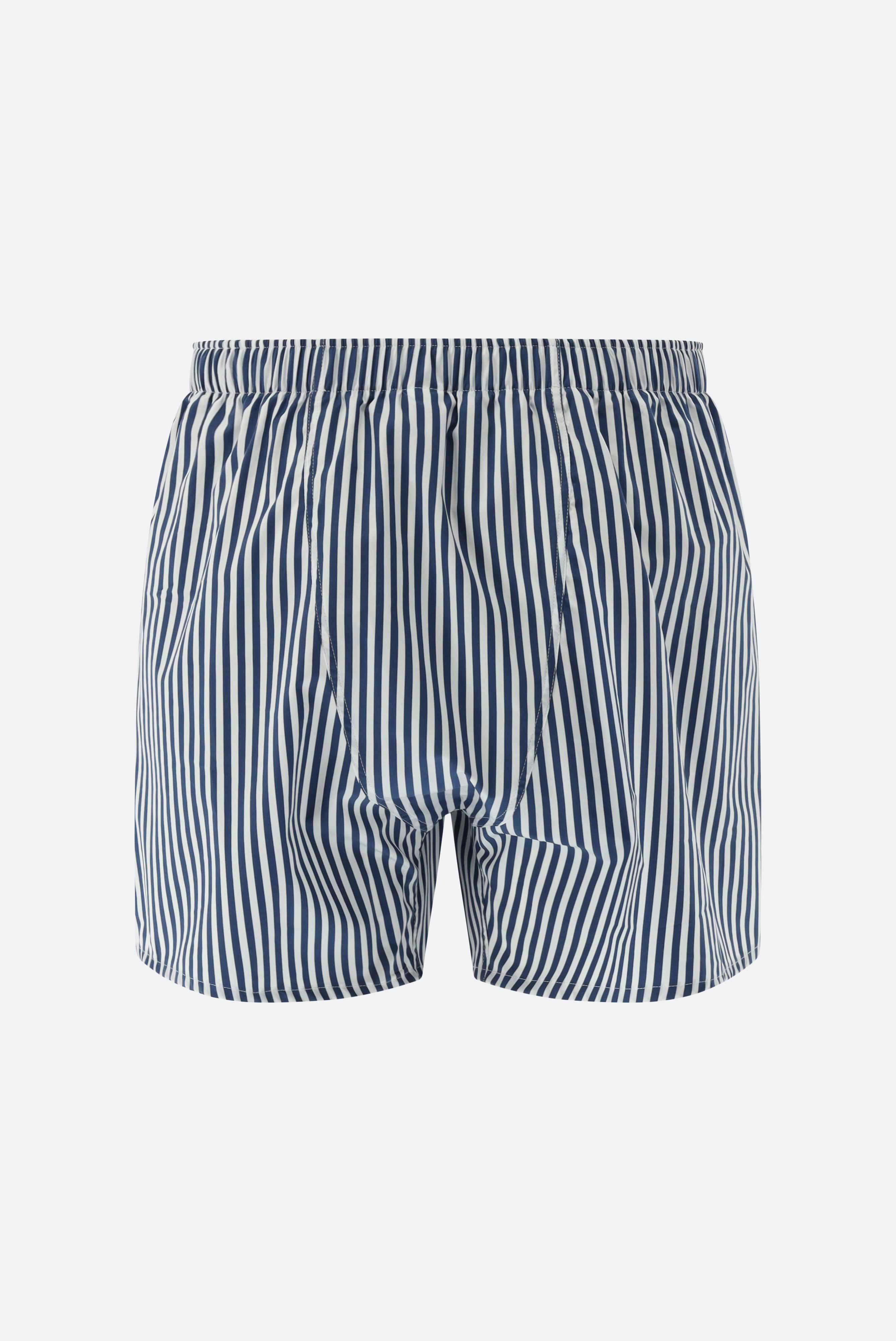 Die gestreifte Boxershorts aus leichter Popeline-Baumwolle und elastischem Bund ist in der Vorderansicht mit einem kleinen Van Laack Logo versehen. Unsere Herren-Boxershorts mit bequemer Passform sind atmungsaktiv und leicht – perfekt, um rundum stilvoll zu entspannen.