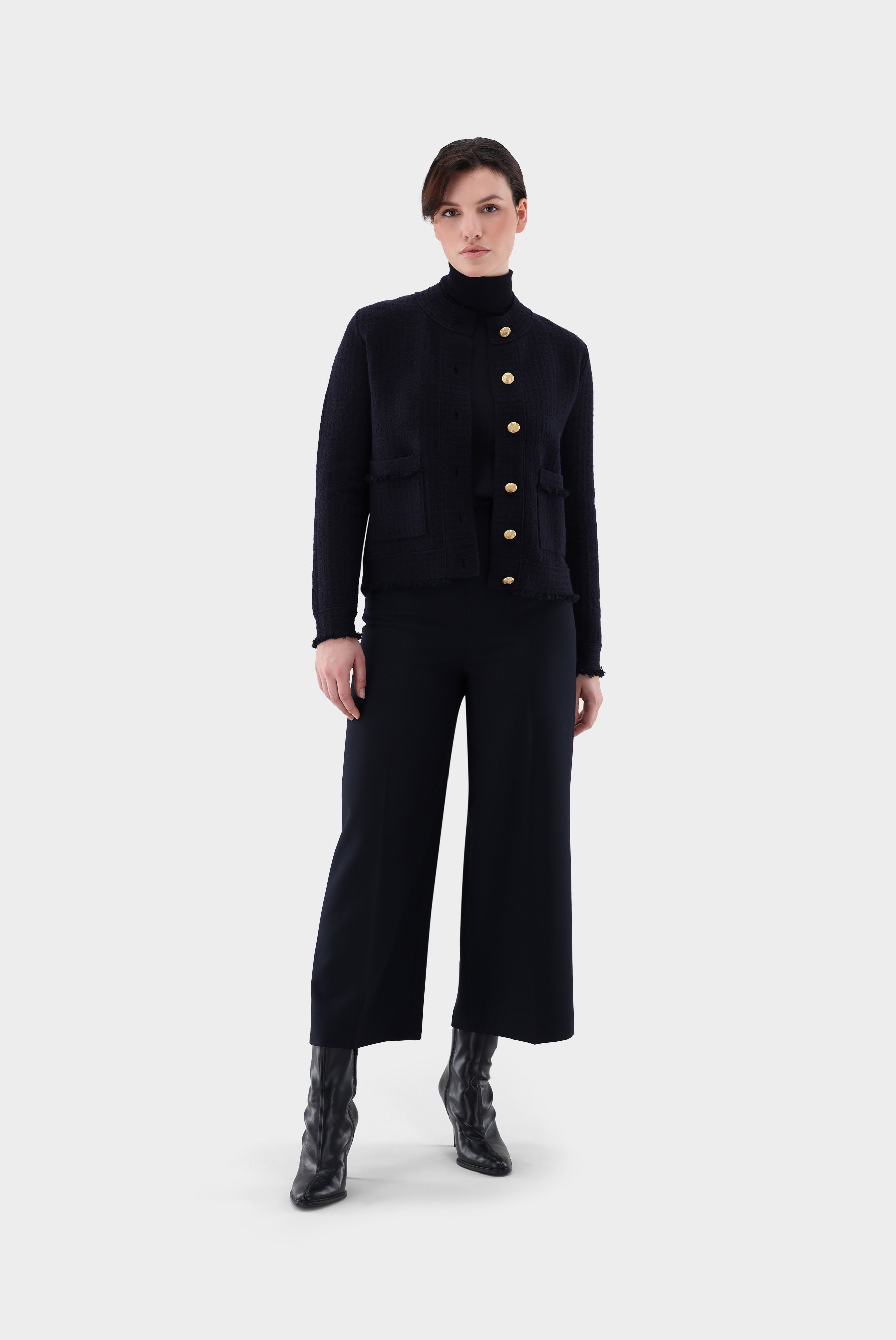 Look aus Jacke kurz geschnitten aus gestricktem Tweed