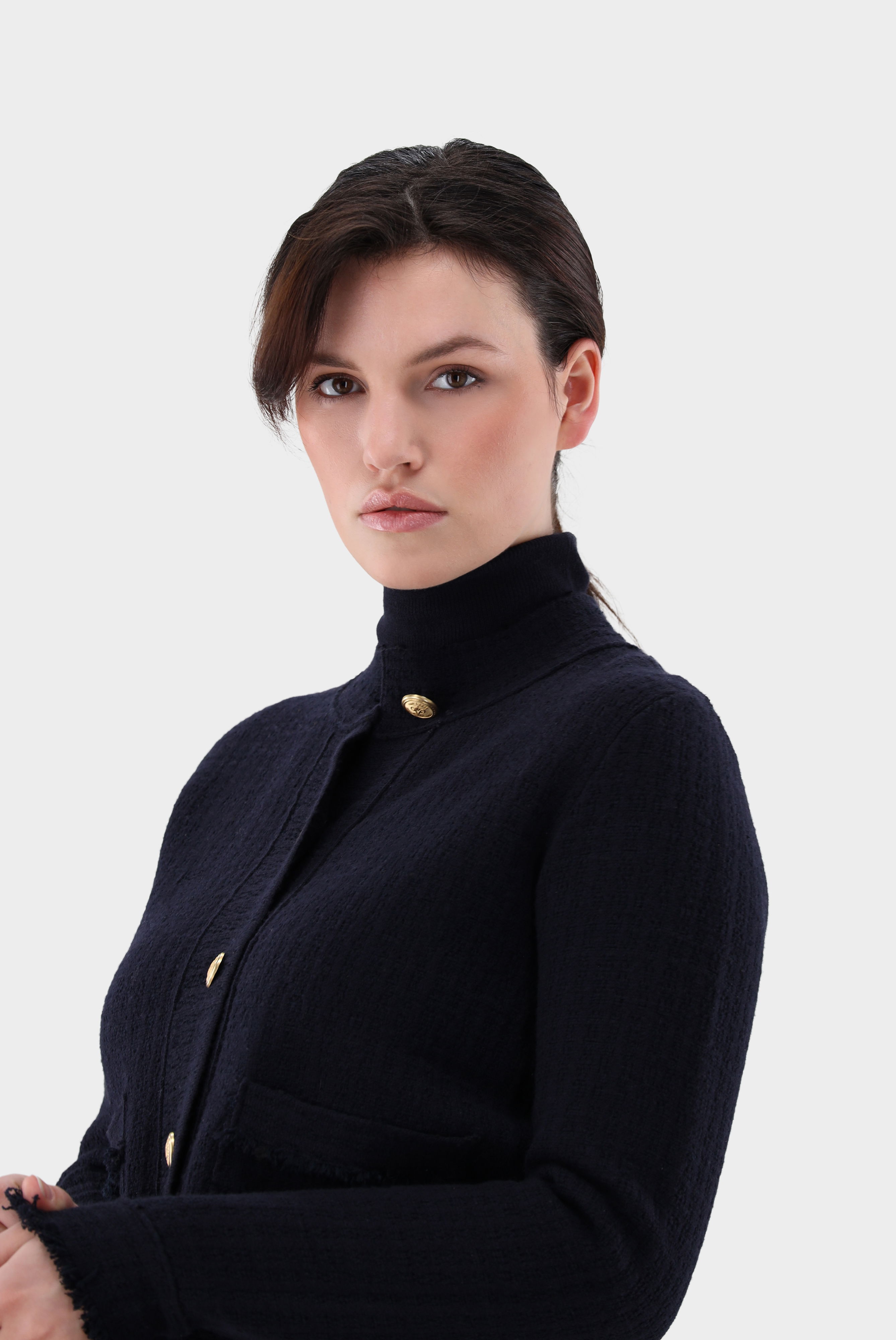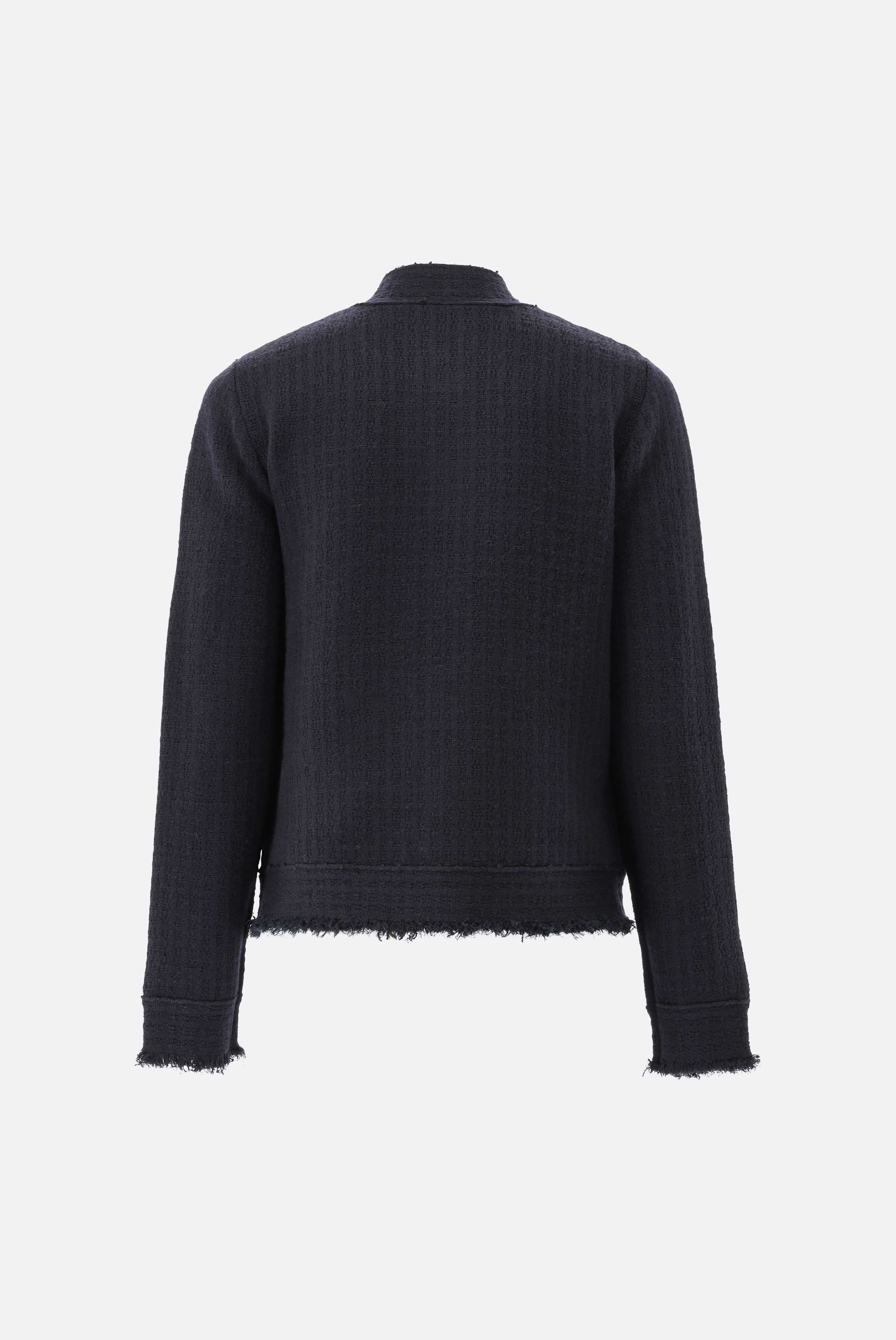 Die leicht taillierte Jacke mit kurzem Schnitt und gestricktem Tweed ist ein stilvolles und modernes Kleidungsstück. Hergestellt aus einer Baumwoll-Mischung bietet diese Jacke sowohl Komfort als auch Bewegungsfreiheit. Ideal für verschiedene Anlässe, lässt sich diese Jacke leicht mit verschiedenen Unterteilen kombinieren und verleiht jedem Outfit eine elegante Note.