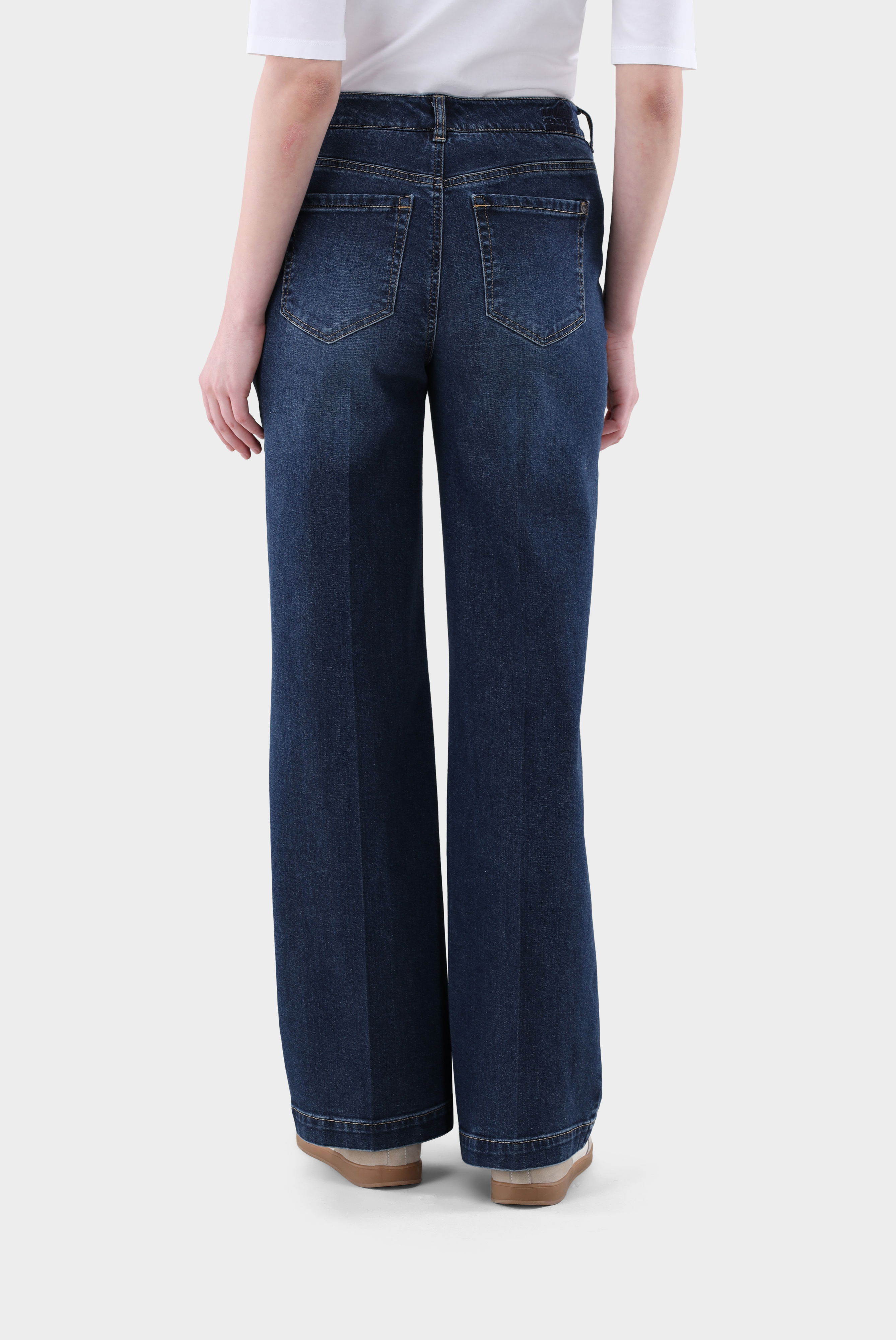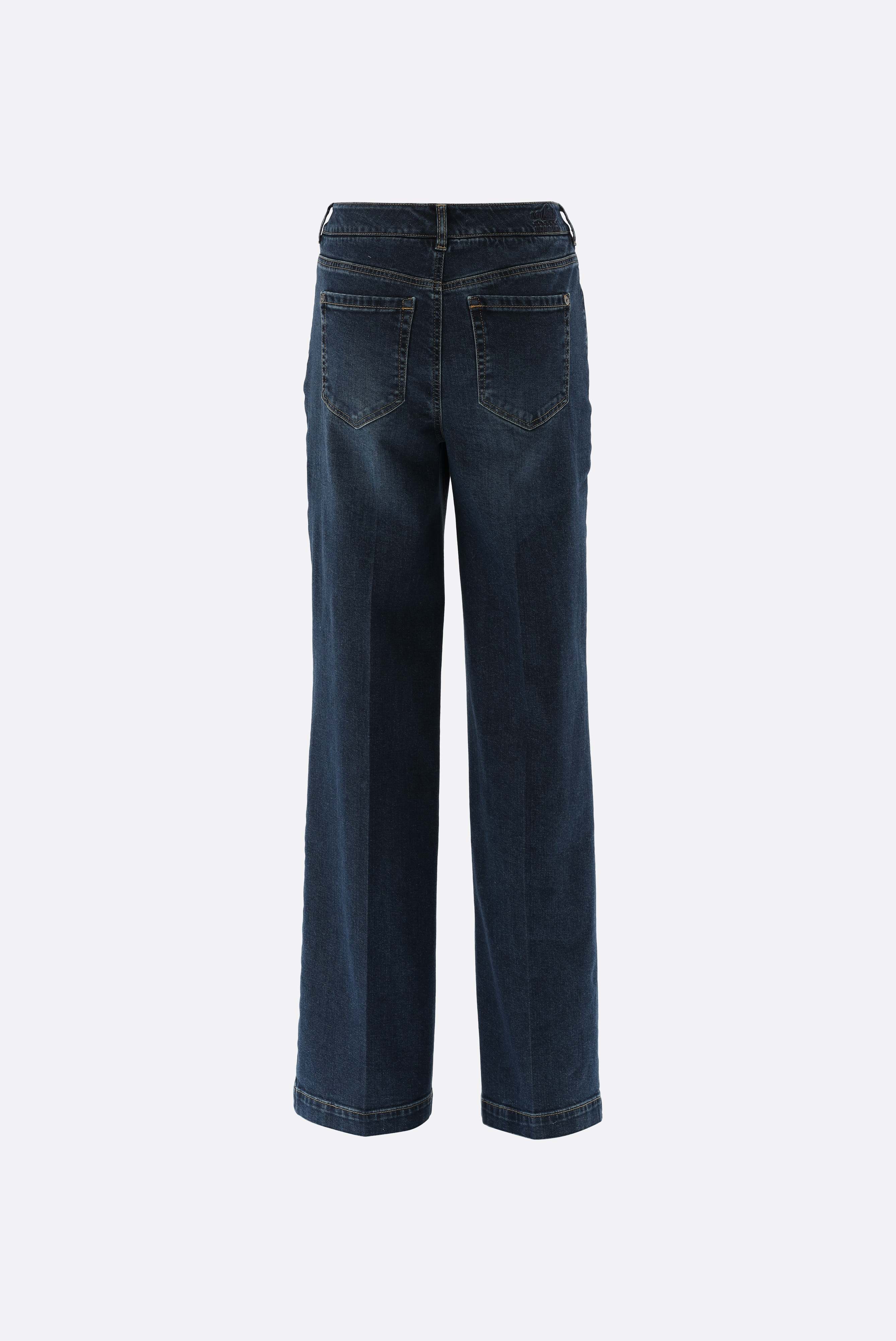 Die mittelhohe Five-Pocket-Jeans besticht durch ein weites Bein und eine klassische Passform mit Reißverschluss und Knopf vorne. Gürtelschlaufen und eine markante Bügelfalte verleihen der Jeans eine zeitlose Optik. Der einfarbige Stretch-Mix aus Bio-Baumwolle und Lyocell sorgt für hohen Tragekomfort und optimale Bewegungsfreiheit. Der verwaschene Denim mit dezenten Used-Effekten unterstreicht den lässigen Look. Diese Jeans ist die perfekte Wahl für vielseitige Alltags- und Freizeitoutfits.
