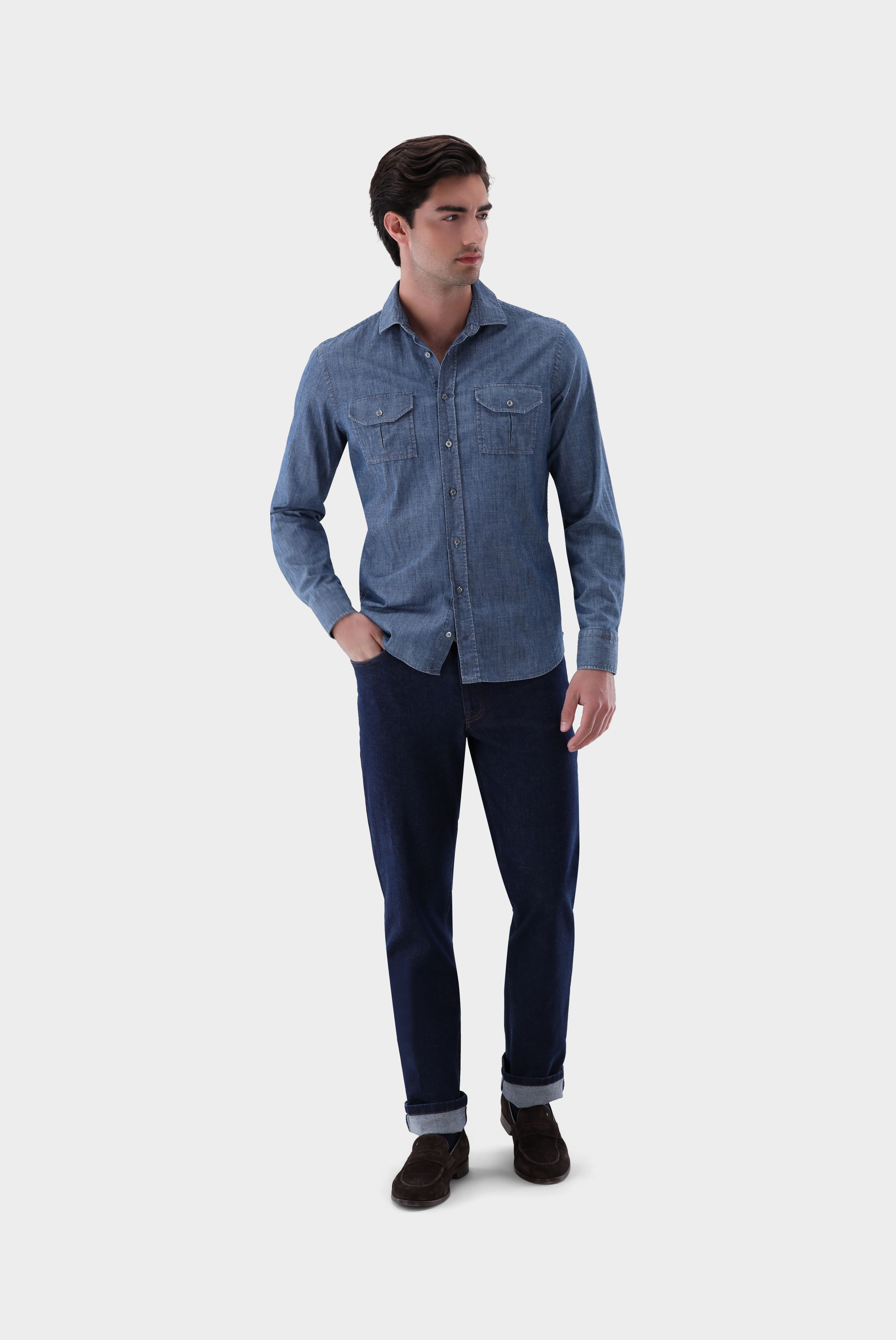 Look aus Jeanshemd mit Brusttaschen
